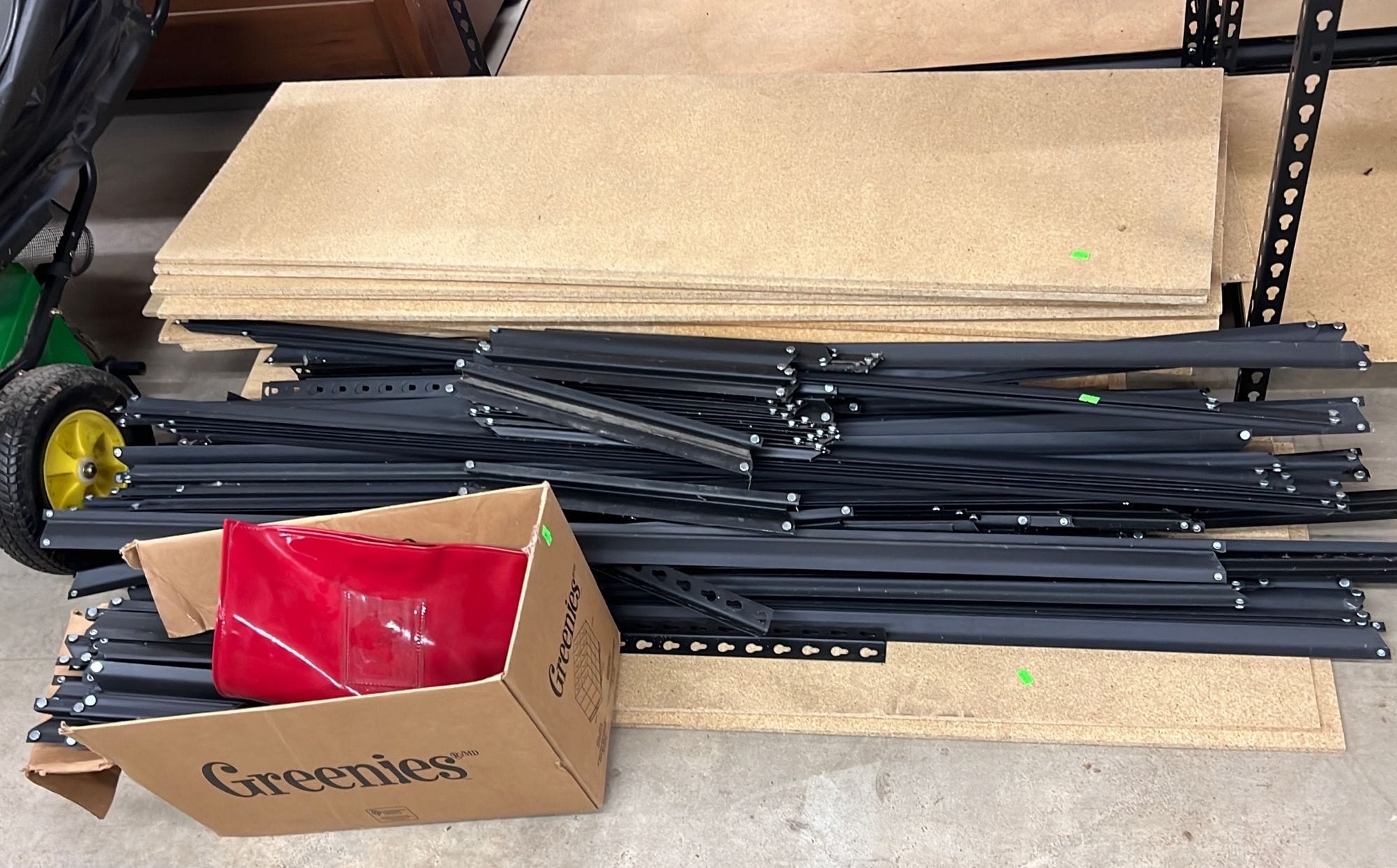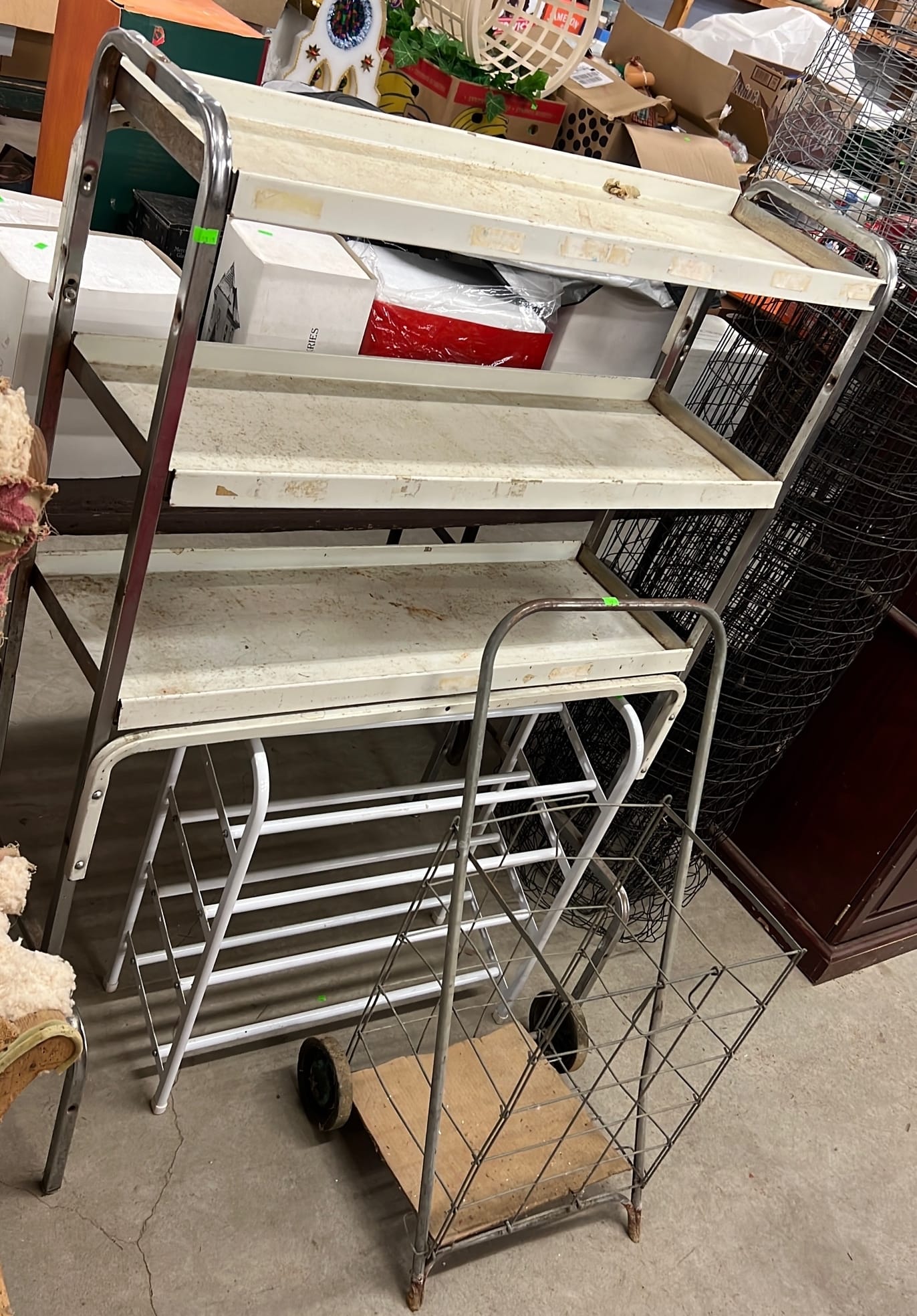 63 Metal shelving 36”x51.5”x12”, 24”x25”x9.5", Laundry basket on wheels