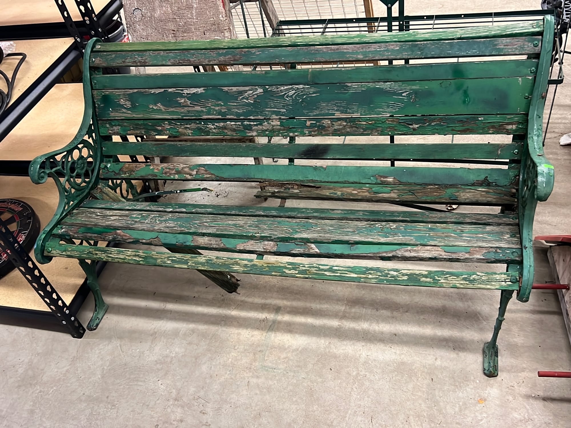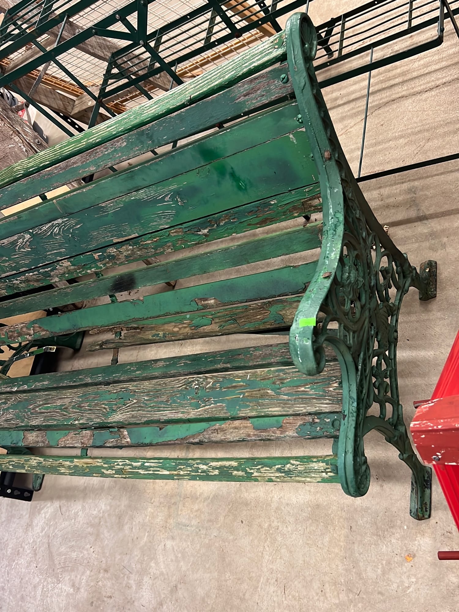 70 Cast Iron & Wood Bench 49.5” wide, needs repair