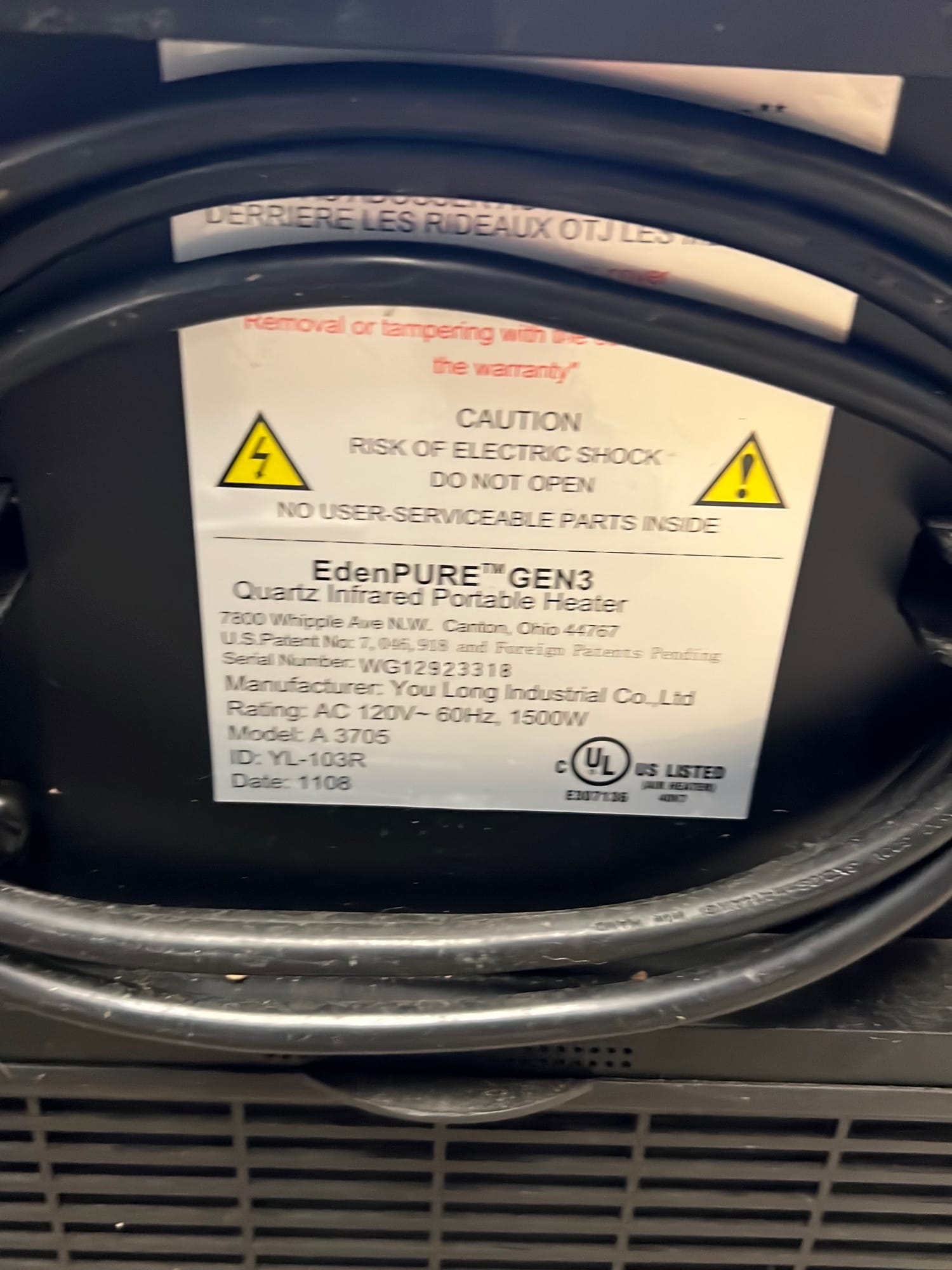 80 EdenPURE Gen 3 Quartz Infrared Portable Heater Model #A3705