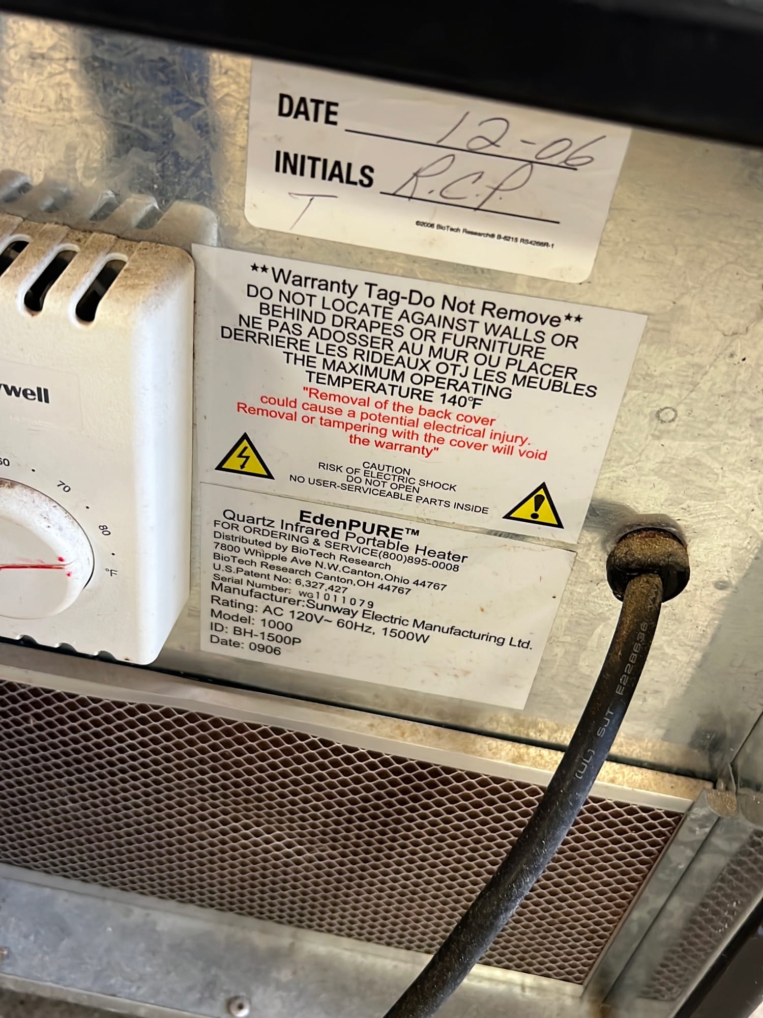 81 Eden Pure Quartz Infrared Portable Heater Model #1000