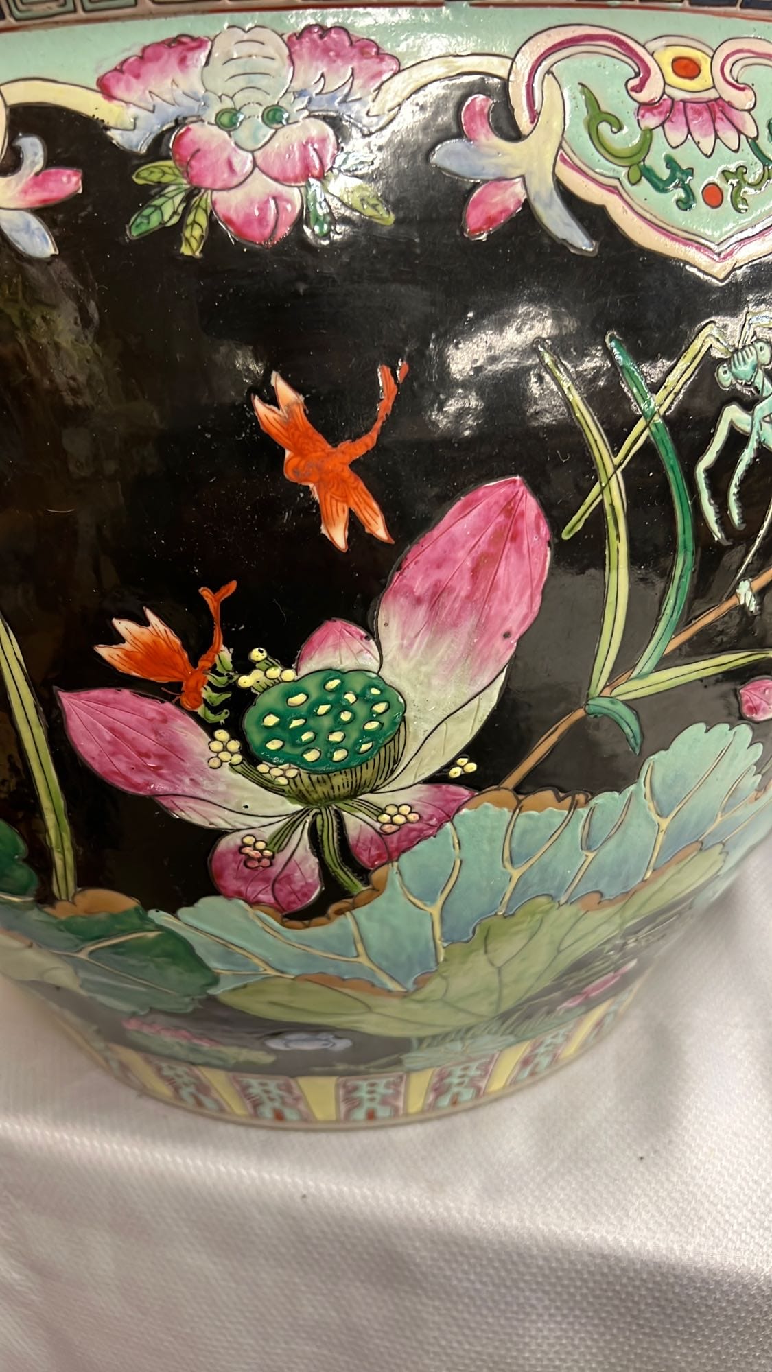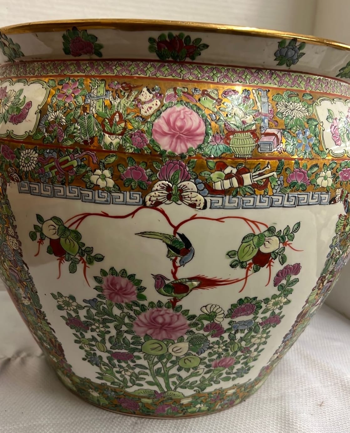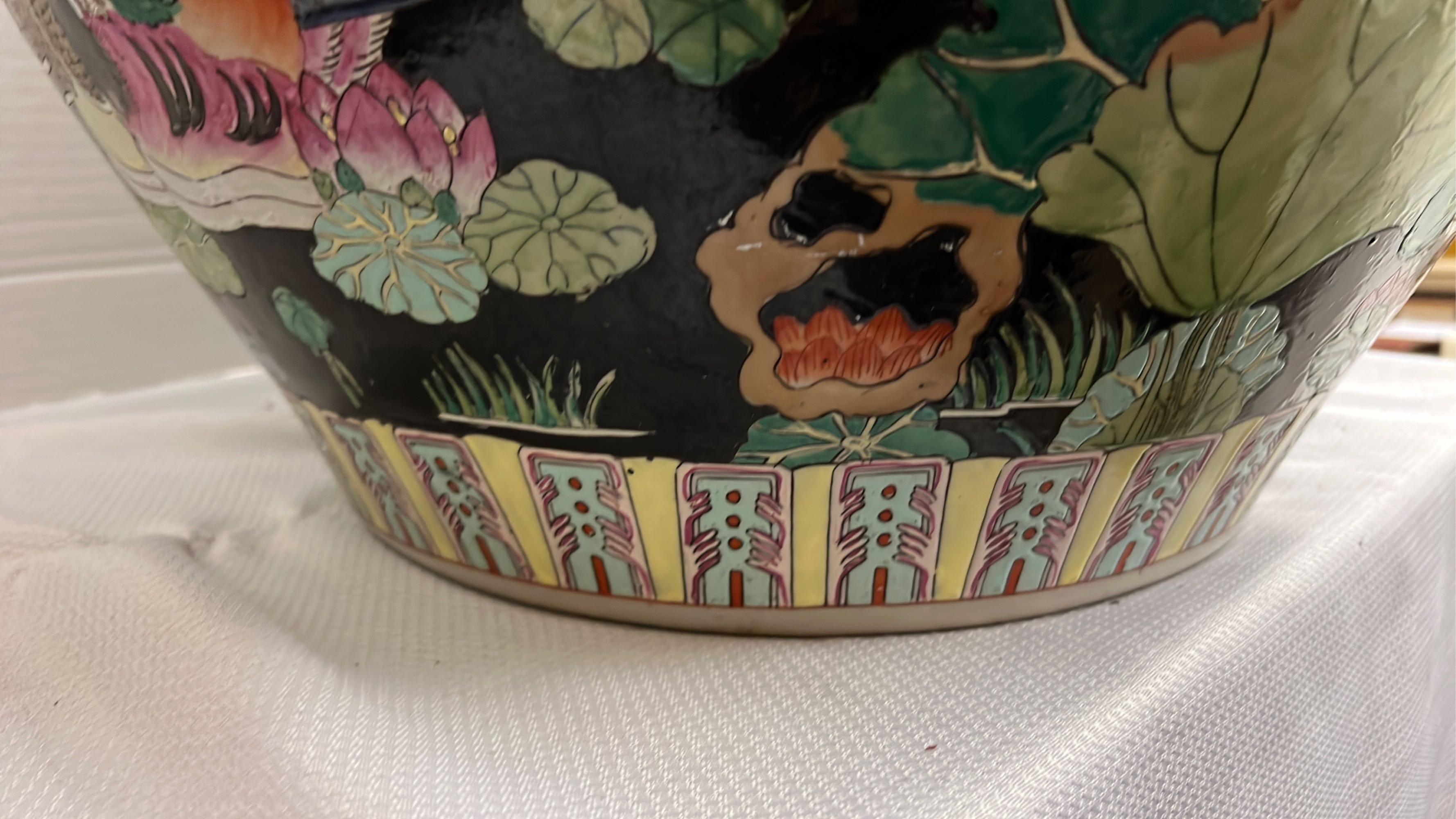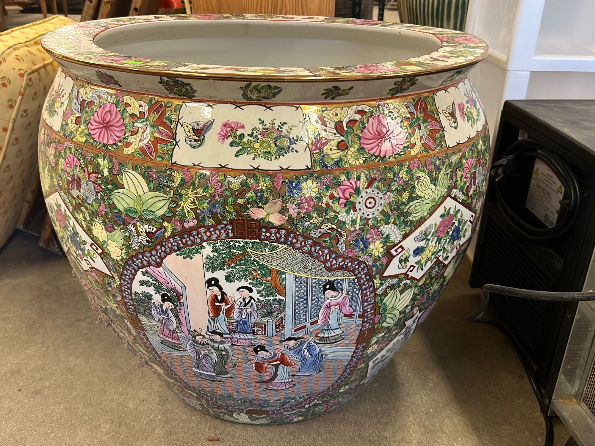 428 Large Chinese porcelain flower pot, 18 1/2 inch diametern by 16 inch tall