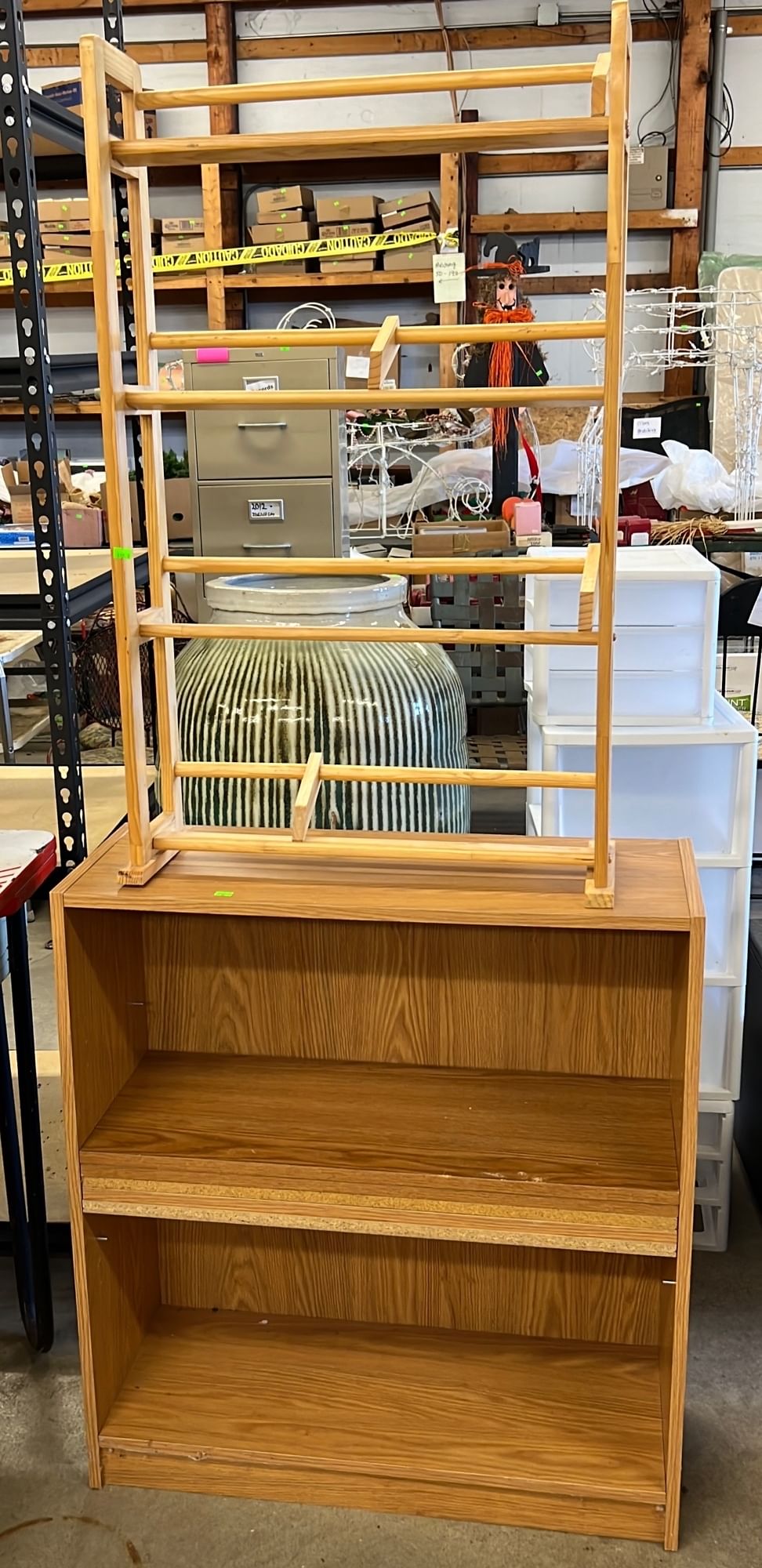 102 Wooden Shoe Rack 22.25”x26.5”x8.5”, Bookcase 29.5”x32.5”x11.5”