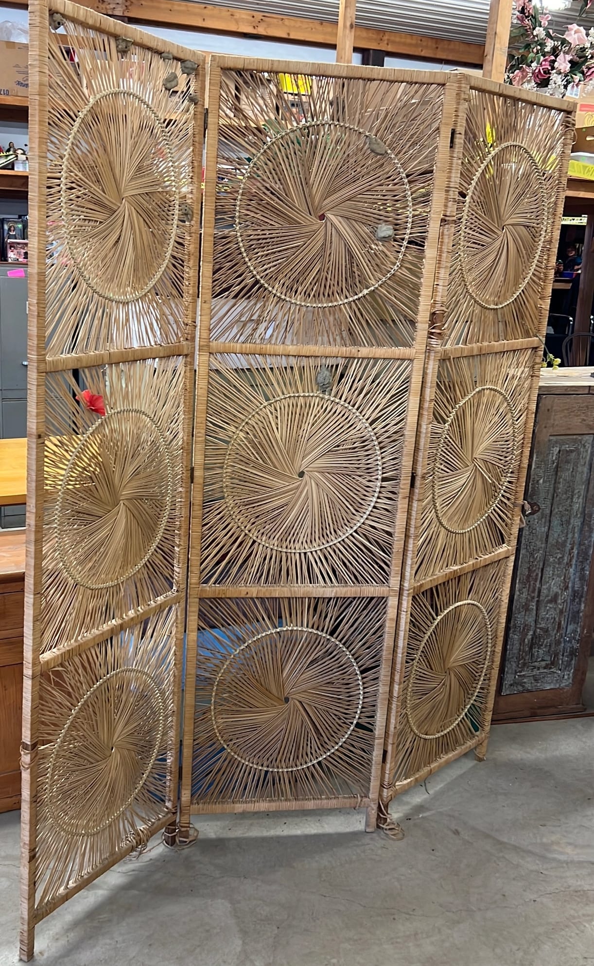106 Rattan 3 Partition Room Divider Wall Panel, Needs Some Repair- 60” wide, 72.5” tall