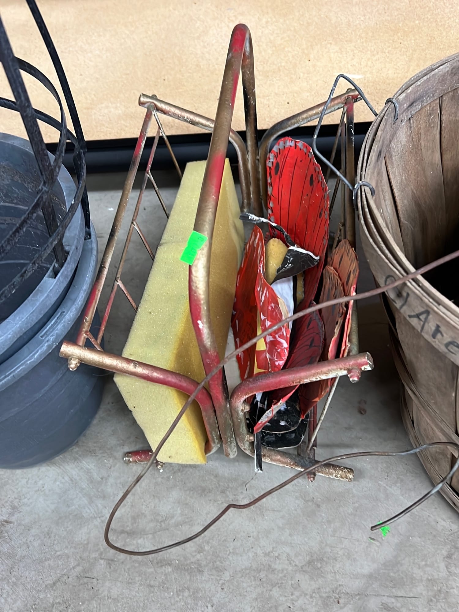 108 Fruit Baskets, Magazine rack 13”, Flower pots, misc