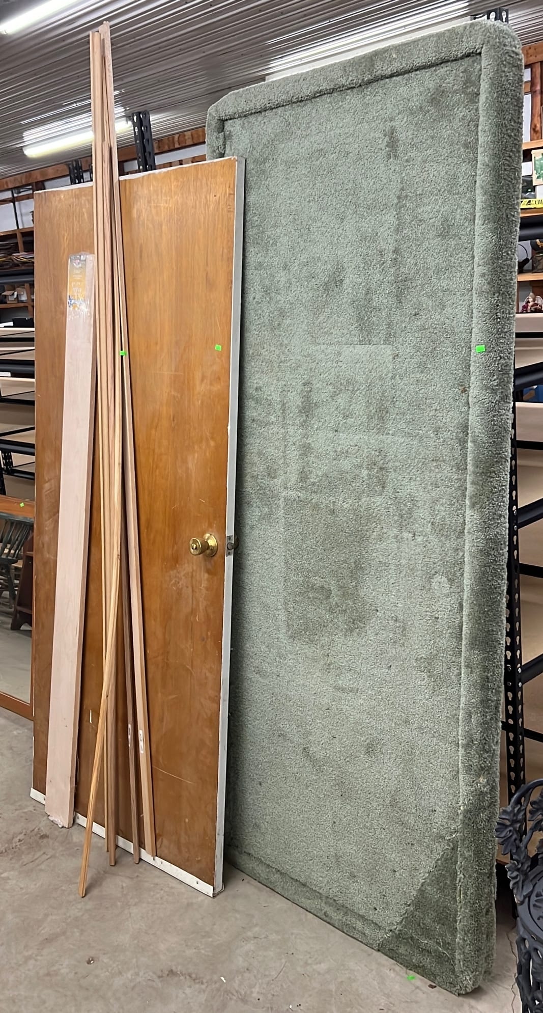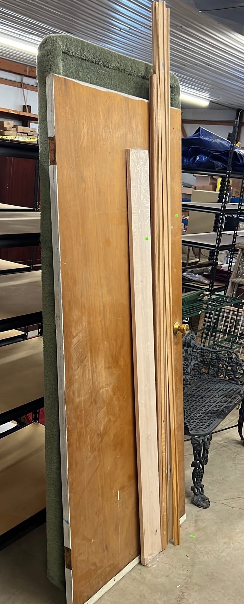 114 Wood trim assorted sizes, Hollow Door 36”x80”, Large Carpeted Dolly 37”x7’