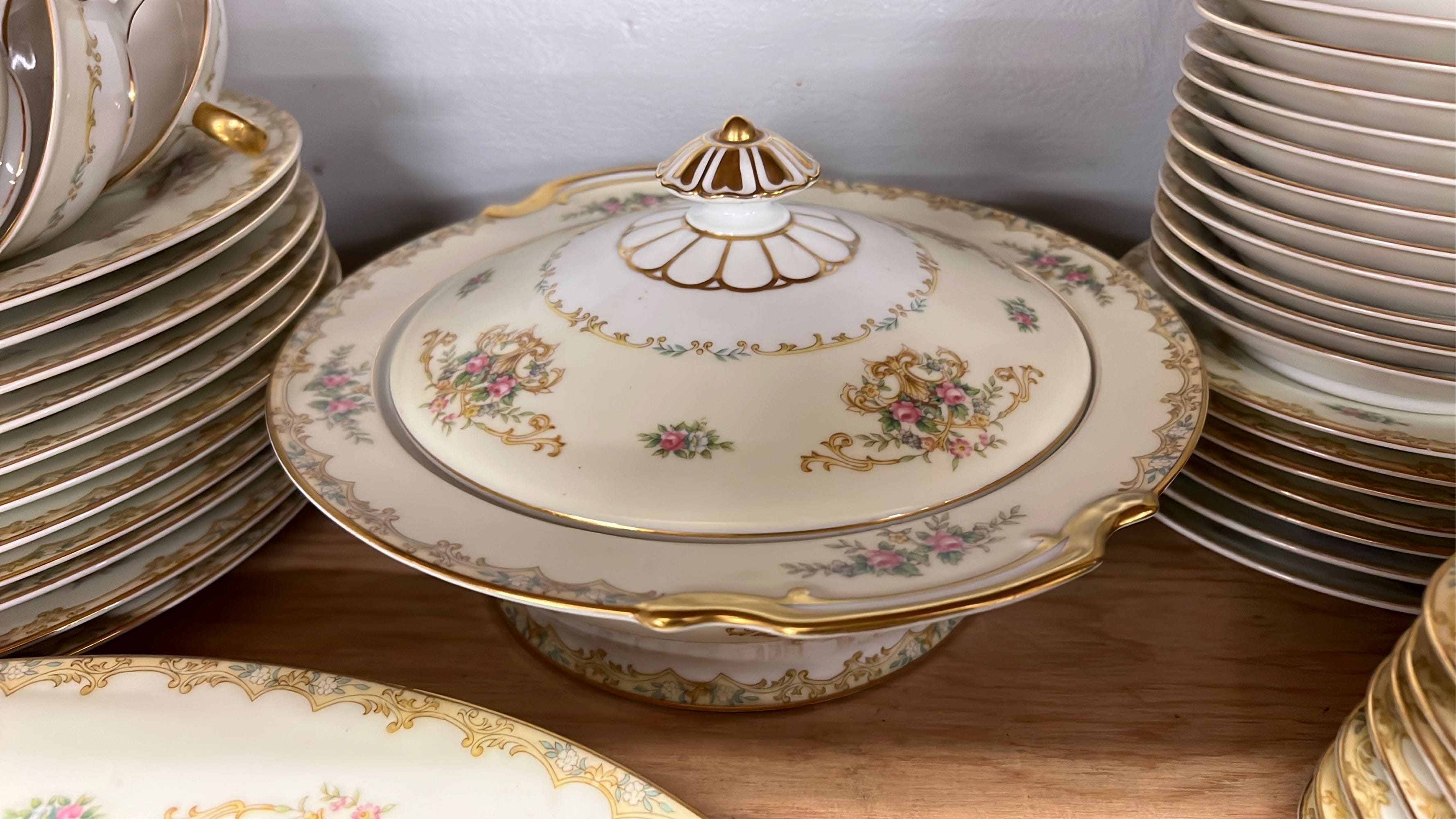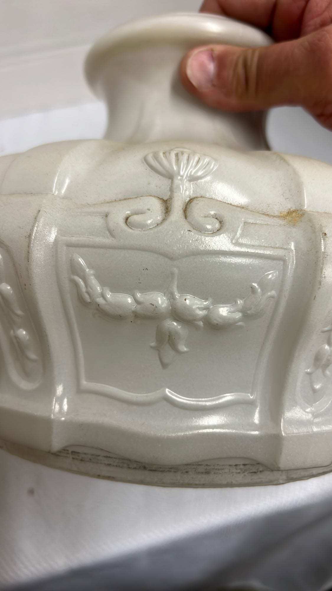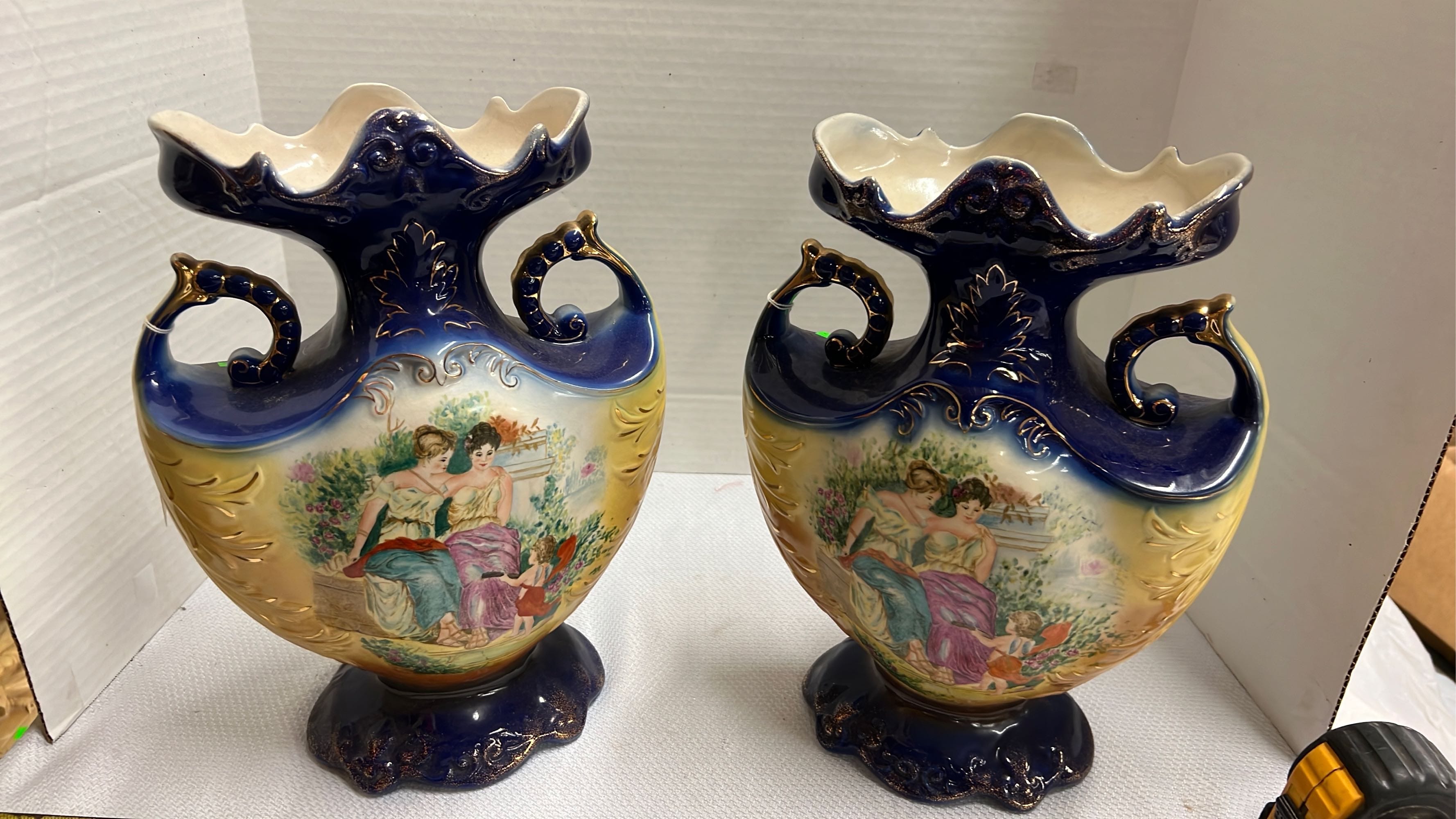 ORNATE GLASSWARE, URNS, POTTERY - ANTIQUES - STANGL POTTERY - RED WING POTTERY - CAST IRON FURNITURE - NEON SIGN - SHELVING & MORE! NORTH MANCHESTER, IN