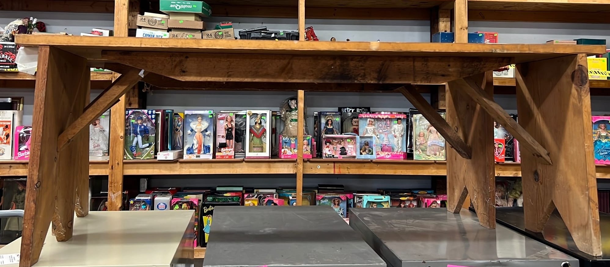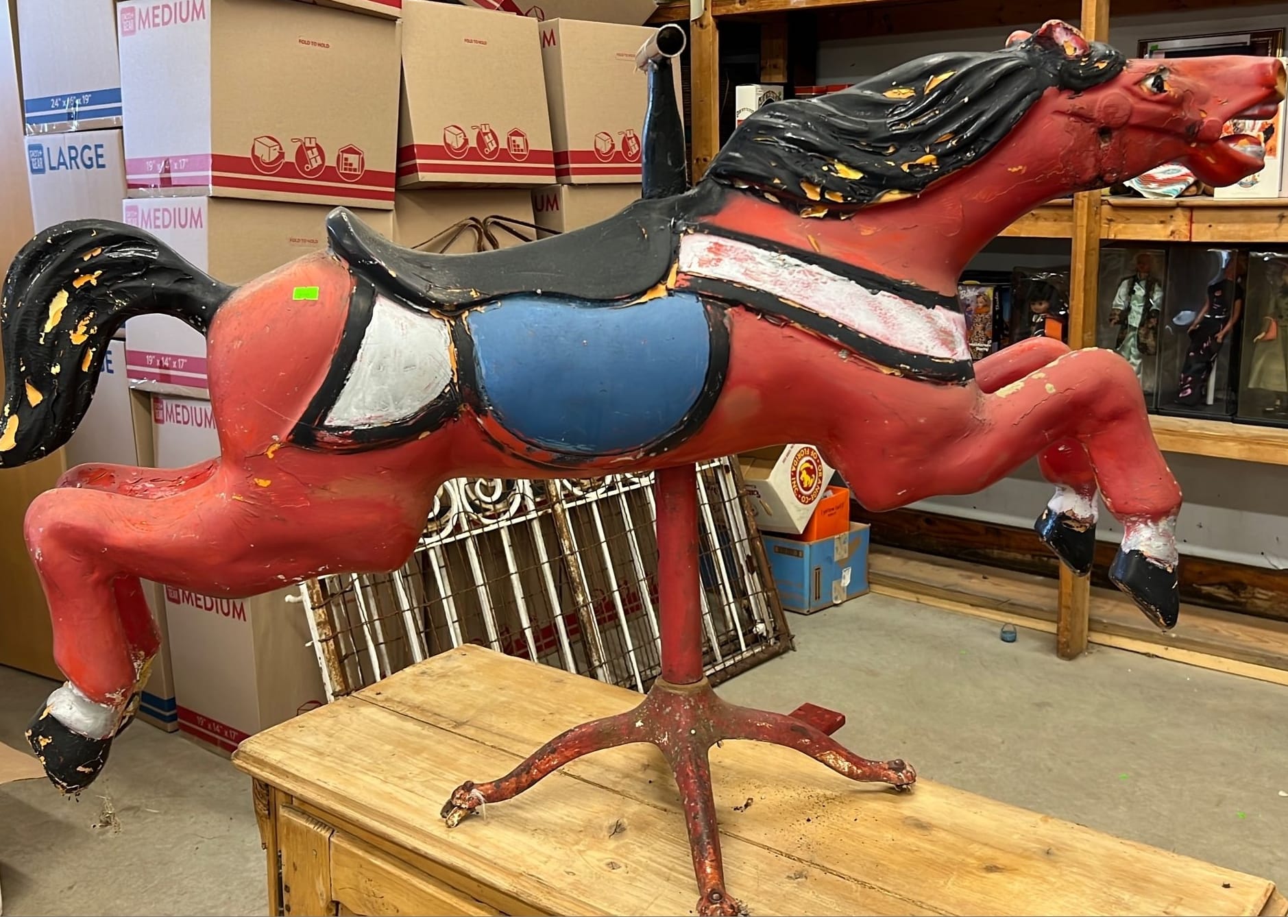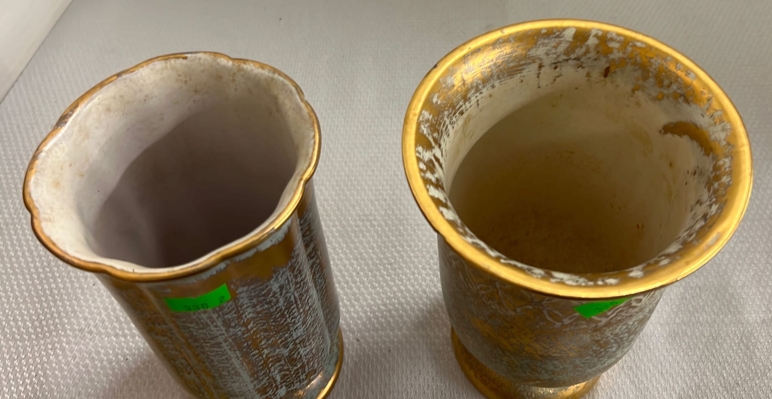 ORNATE GLASSWARE, URNS, POTTERY - ANTIQUES - STANGL POTTERY - RED WING POTTERY - CAST IRON FURNITURE - NEON SIGN - SHELVING & MORE! NORTH MANCHESTER, IN