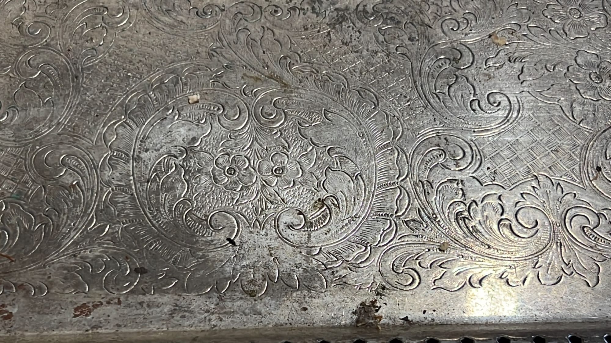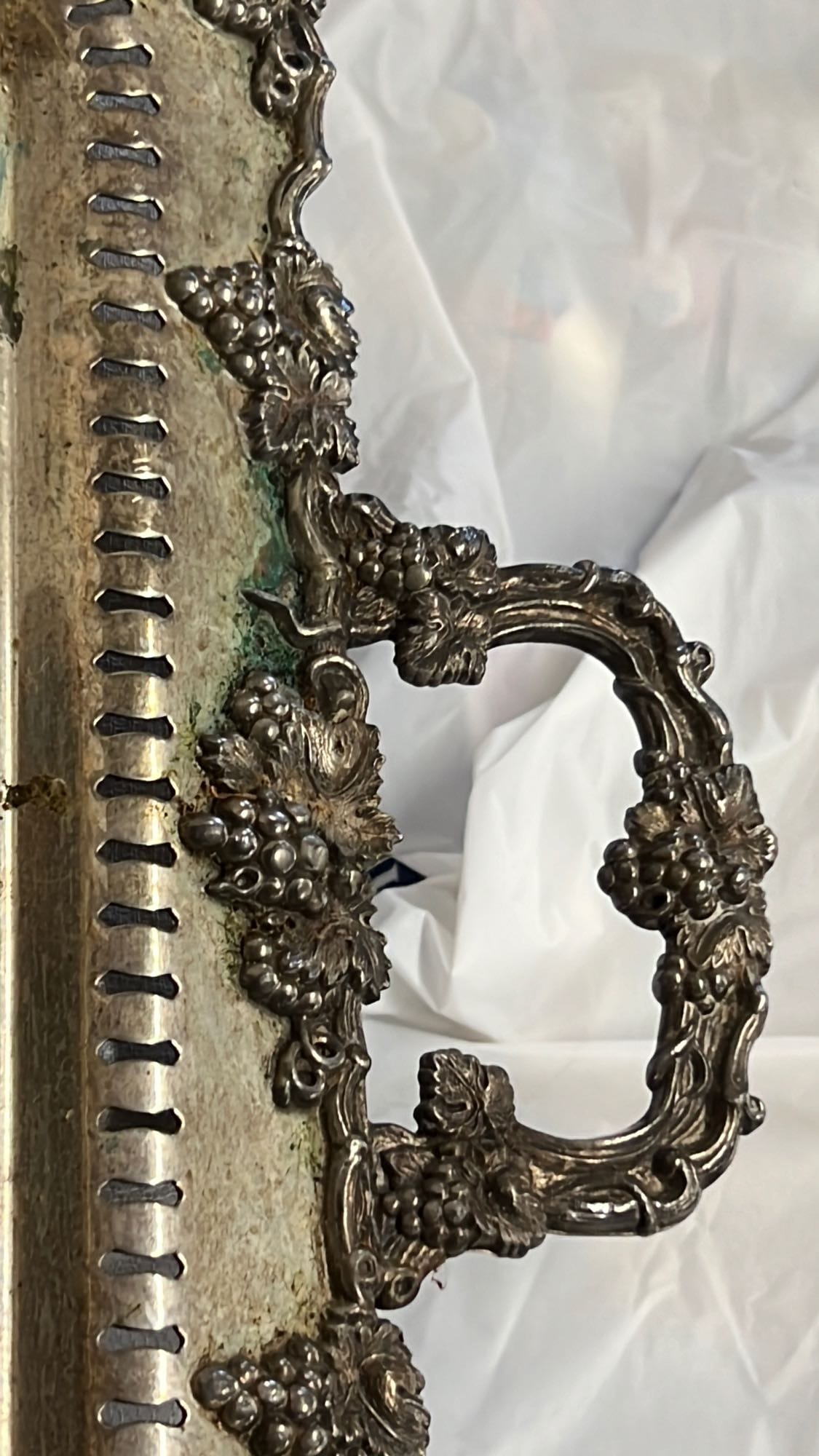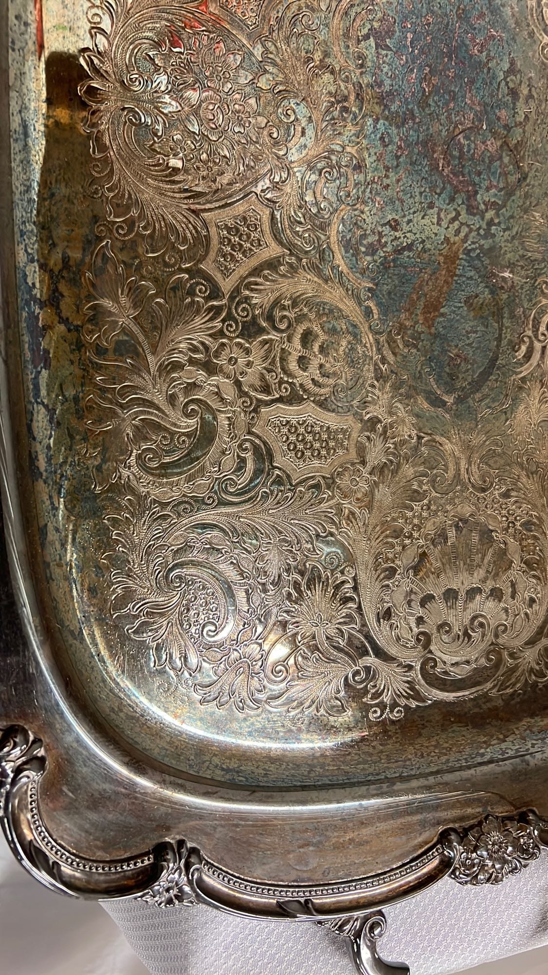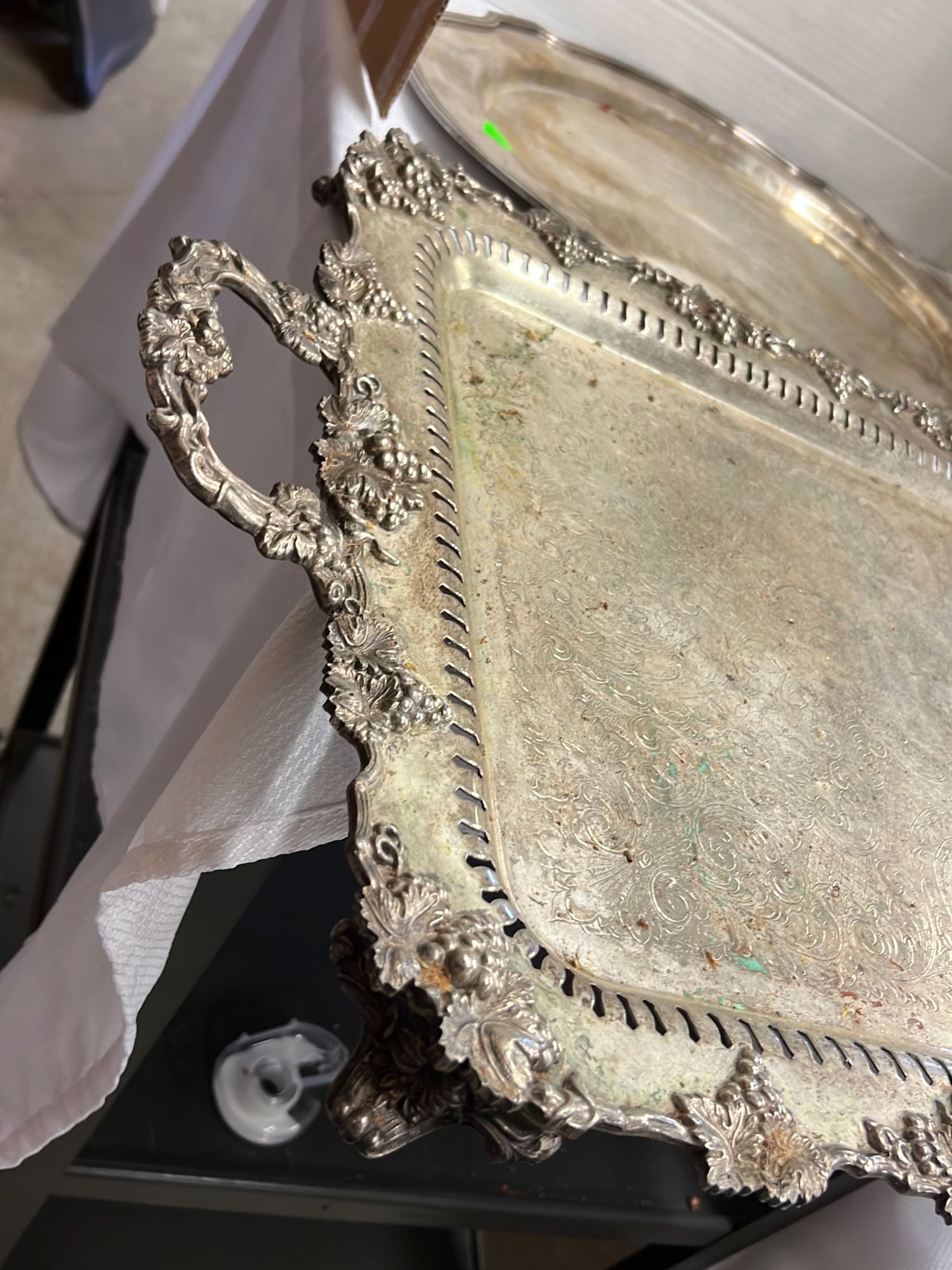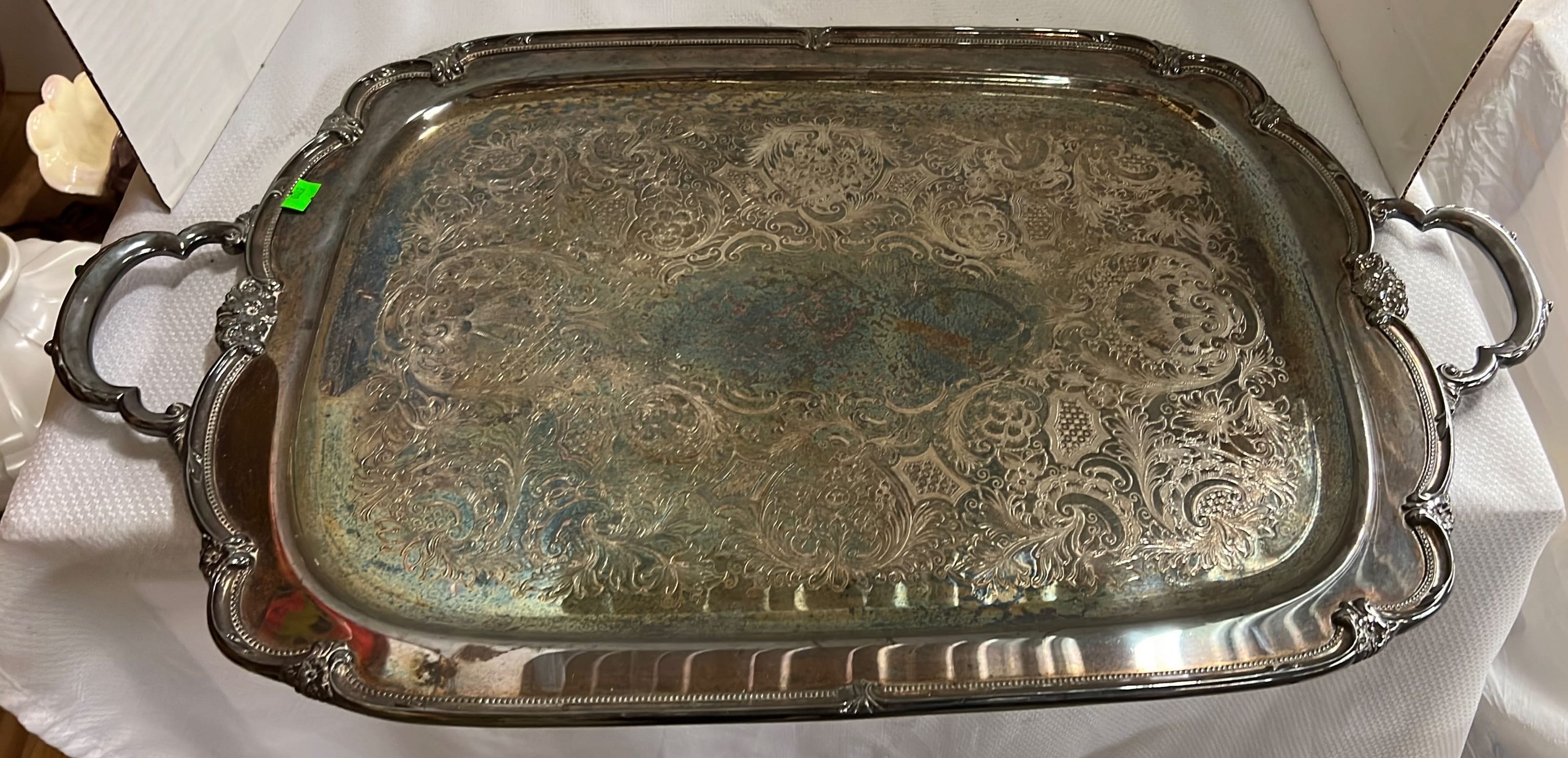 500 Large ornate metal serving tray, 17” x 28 1/2”