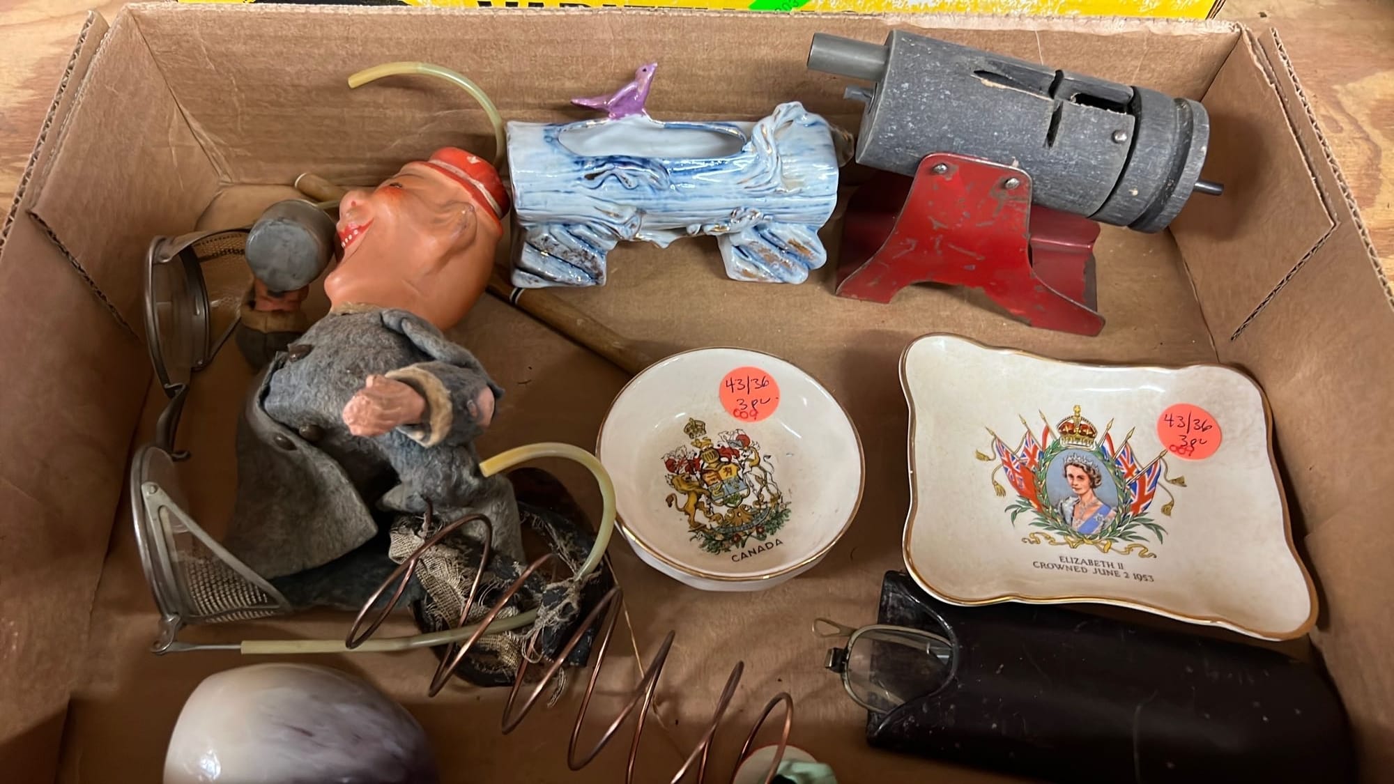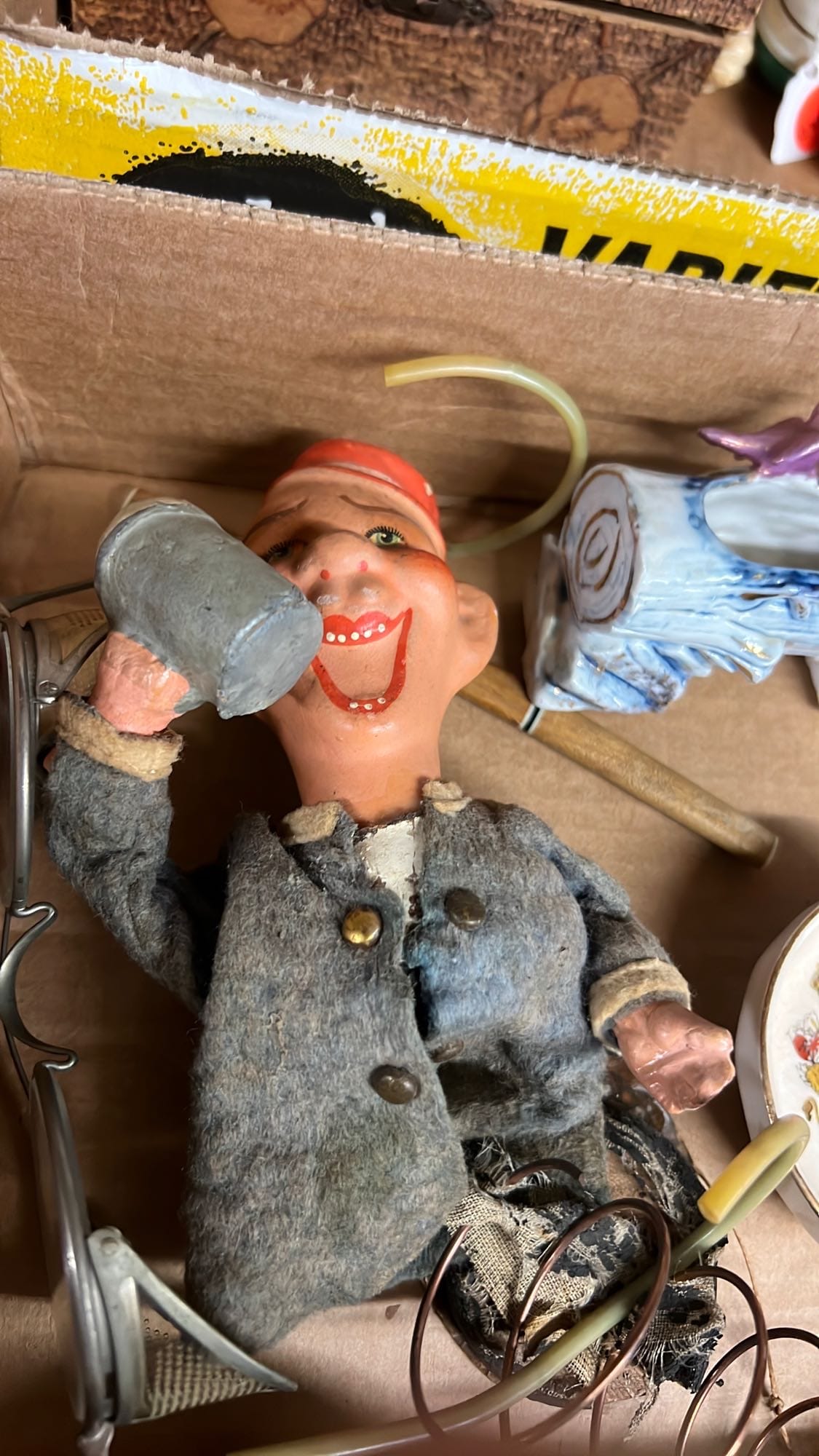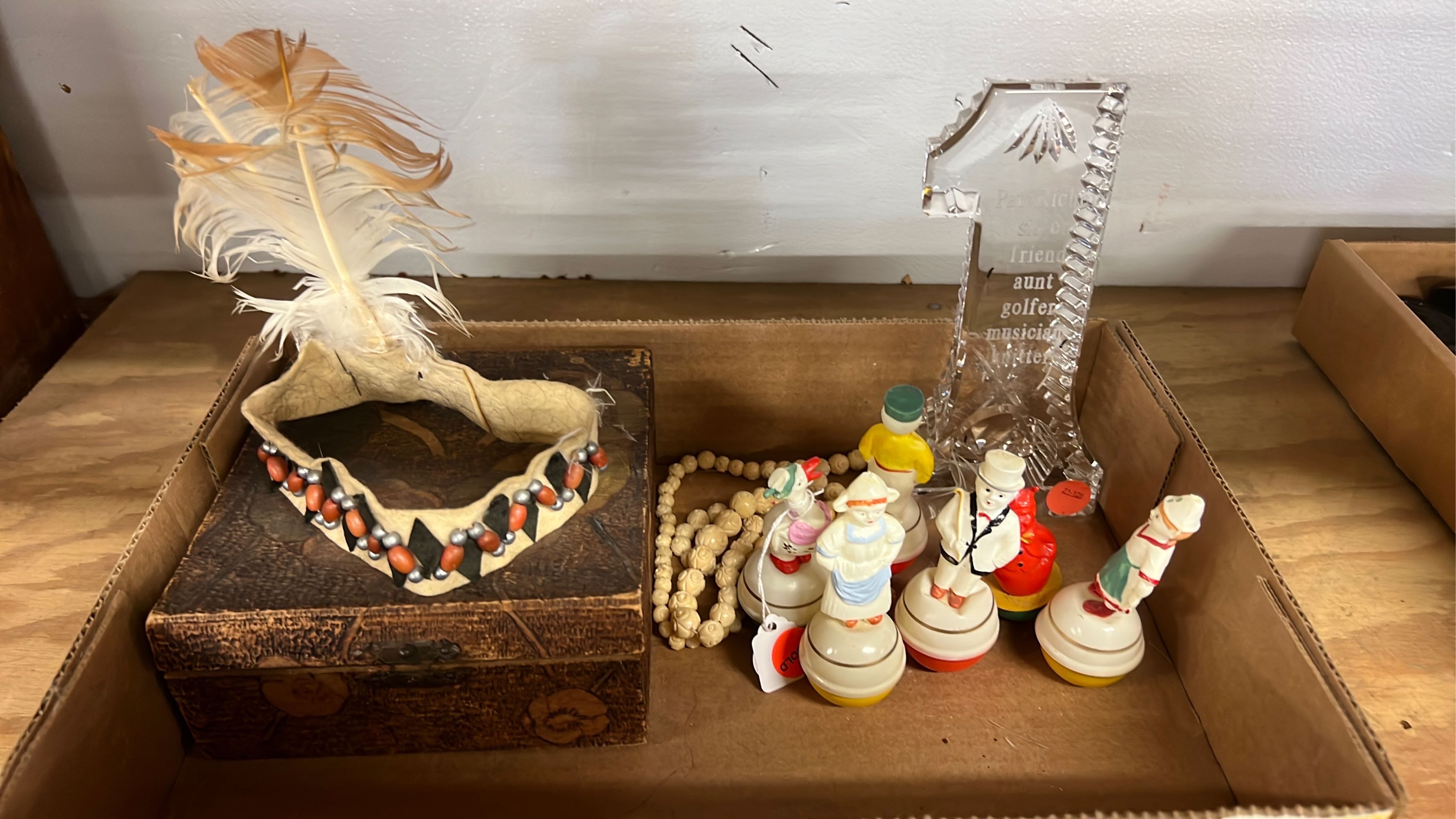 303 (6) Roly Poly Toys, Indian Head Band, Vintage Safety Glasses, Candle Holder, Glasses, Misc.