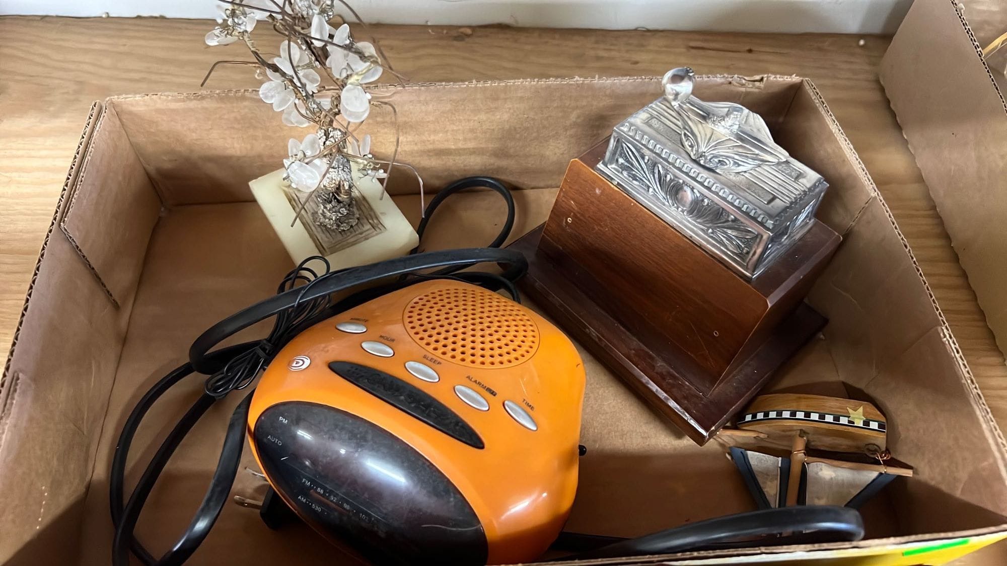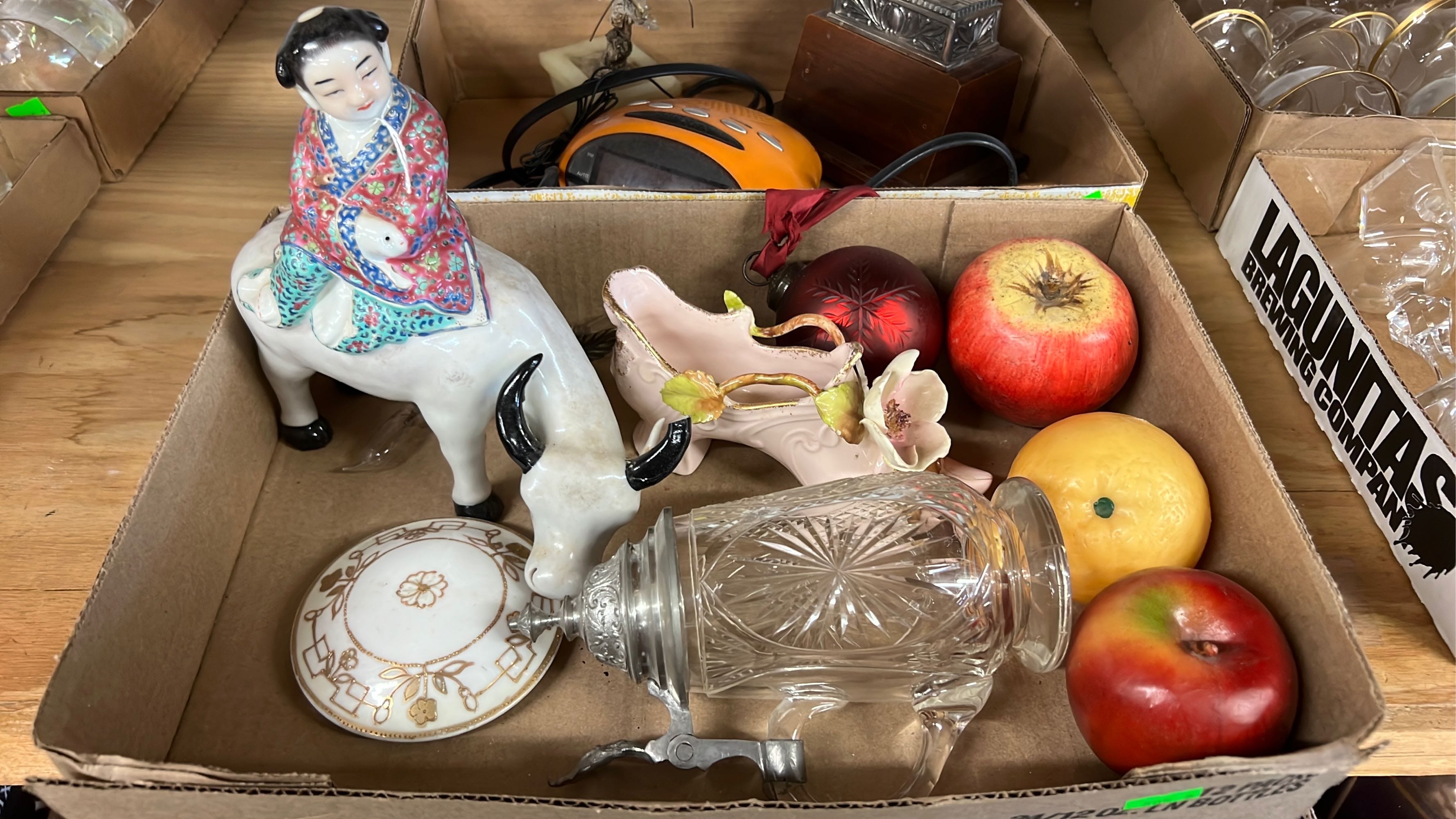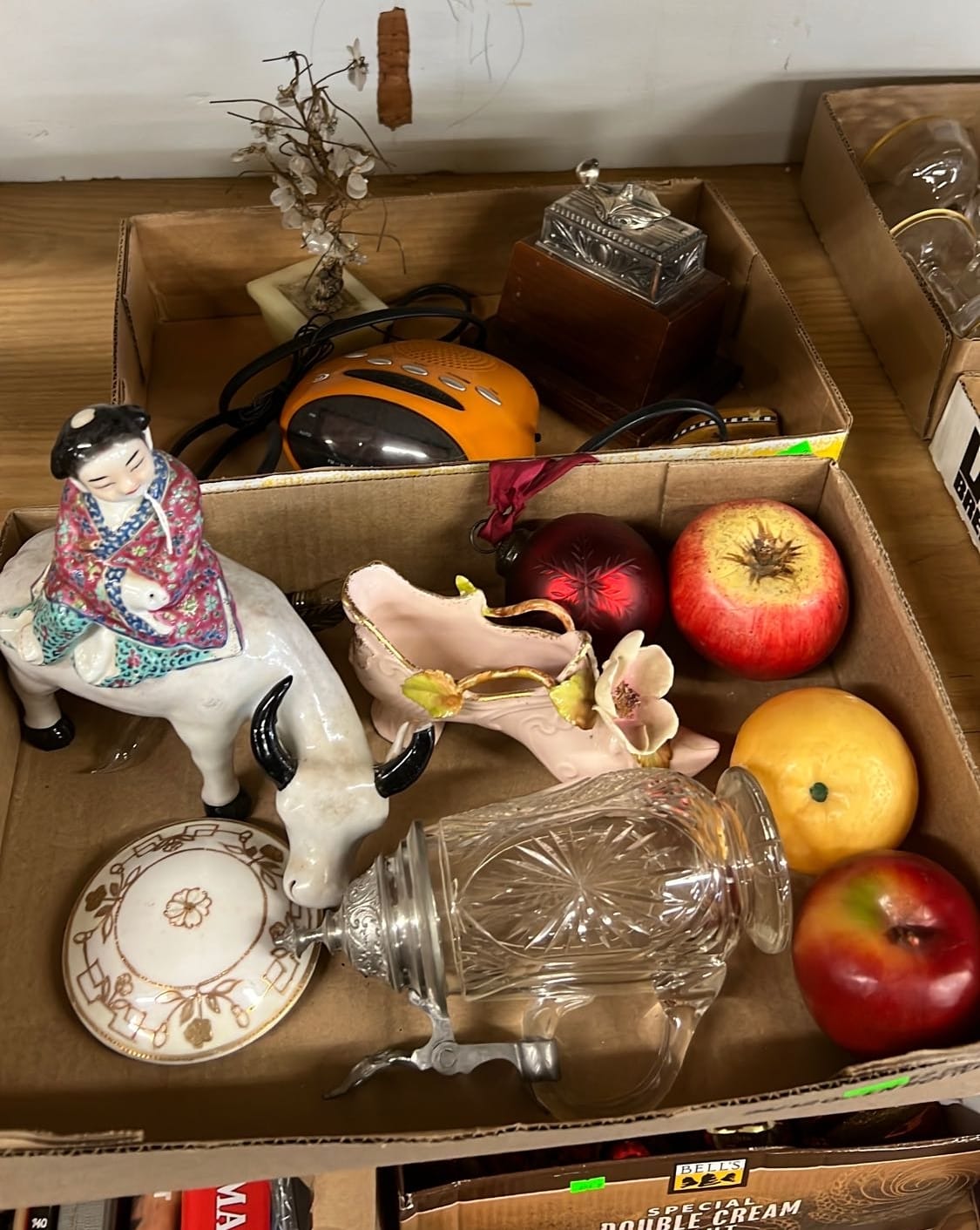 305 Glass Stein, Japanese Figurine, Wax fruit, Clock Radio, misc