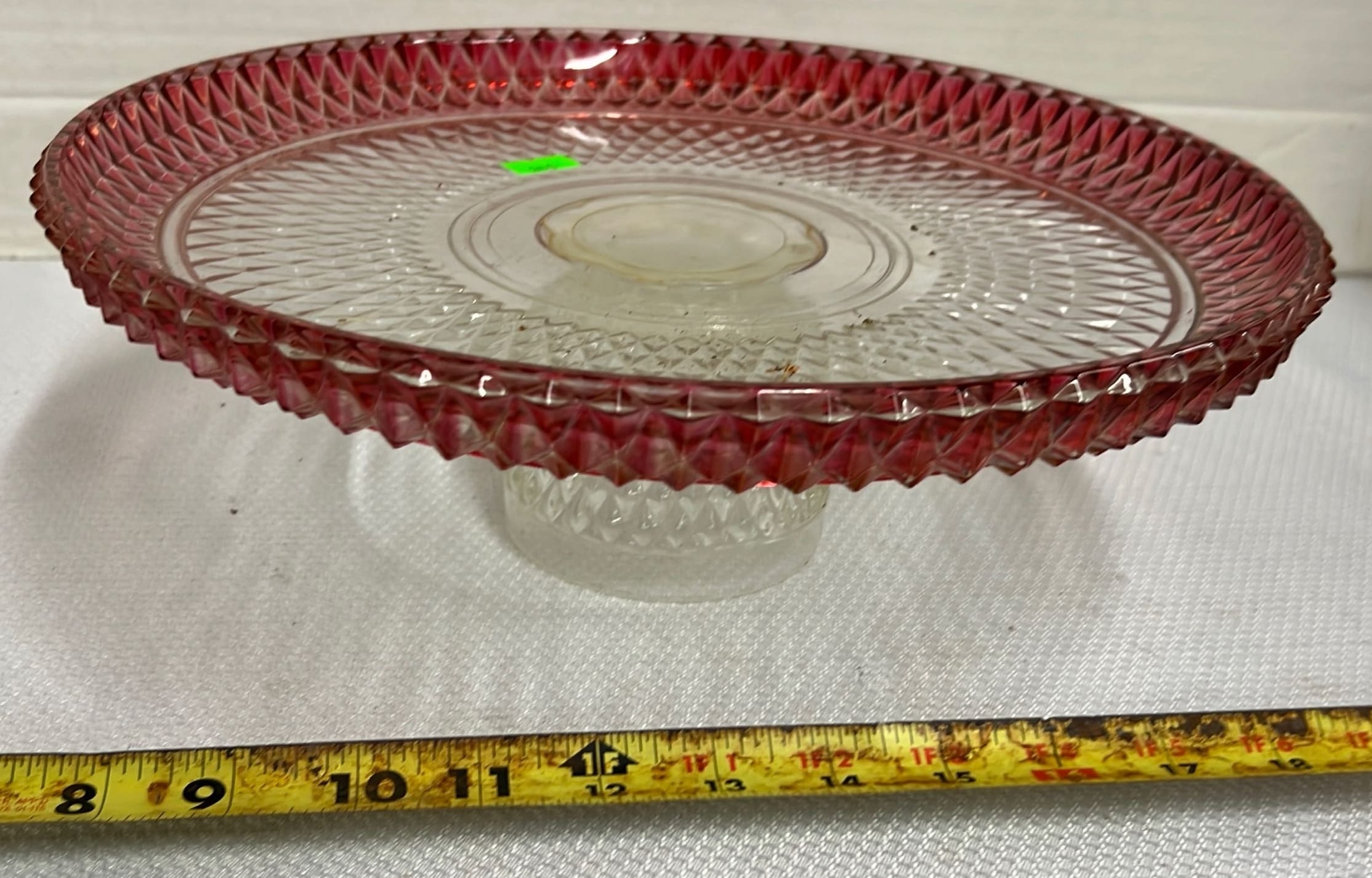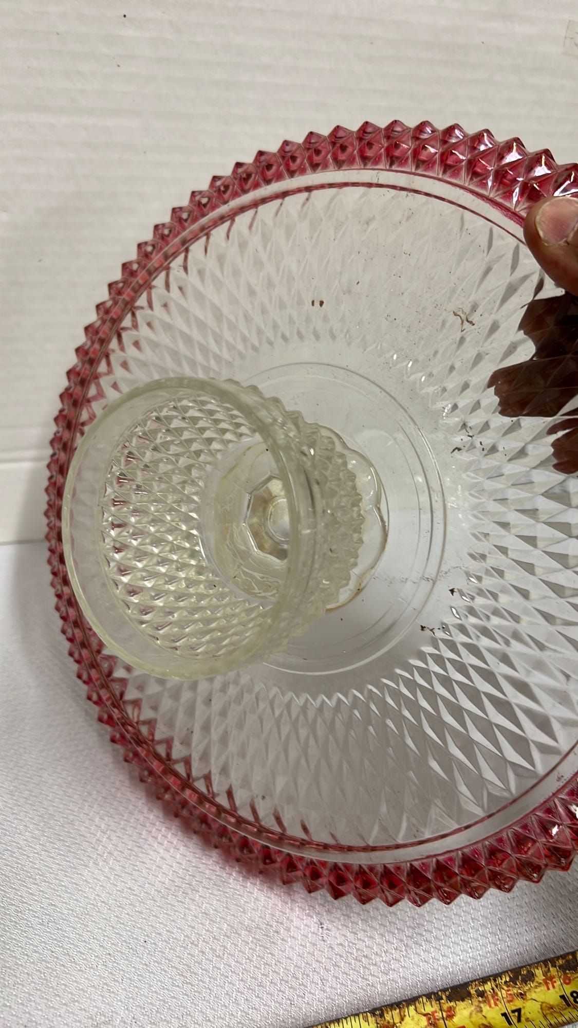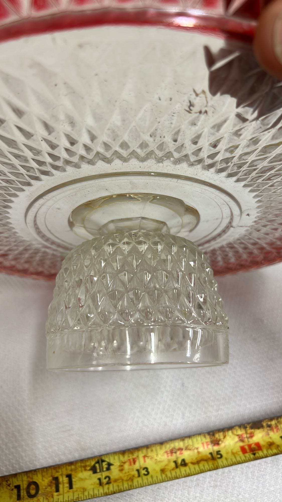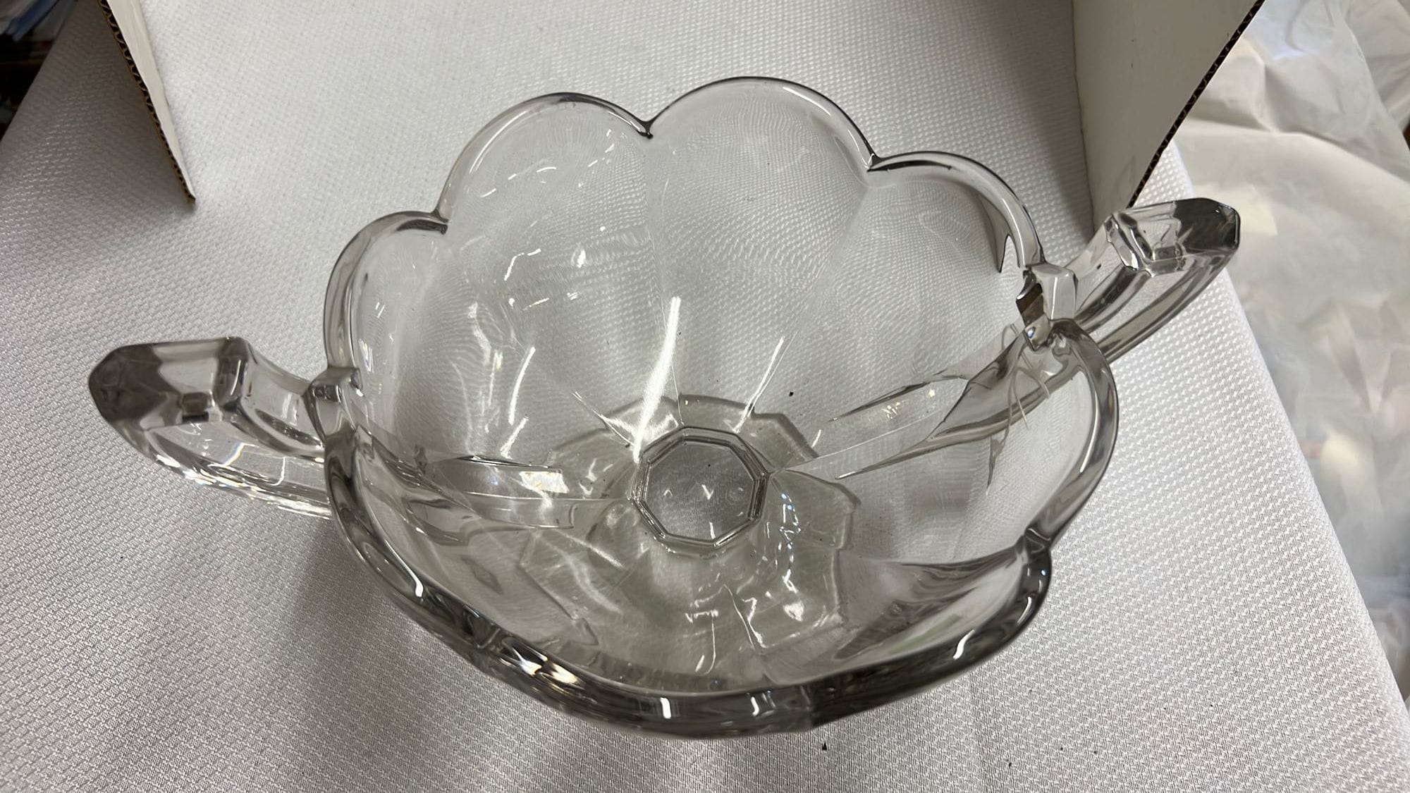 308 Glass Pedestal Dish w/ Handle , 12” x 8 1/2” x 6 1/2” tall