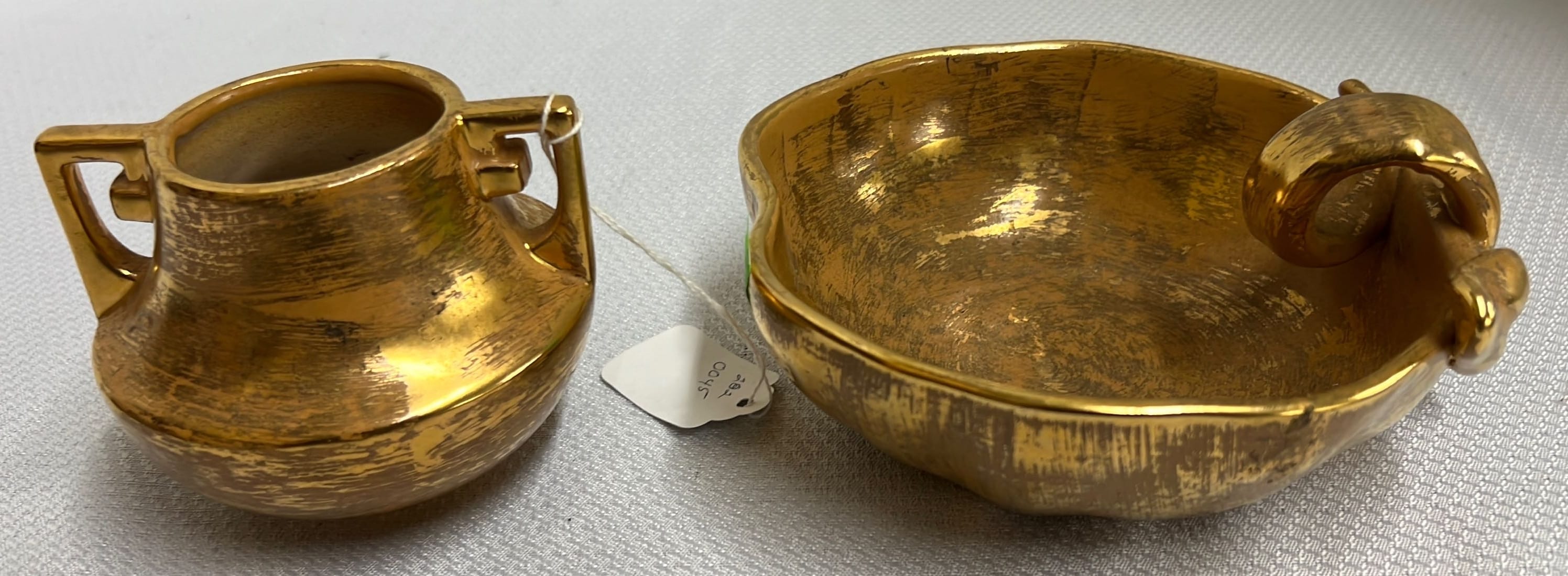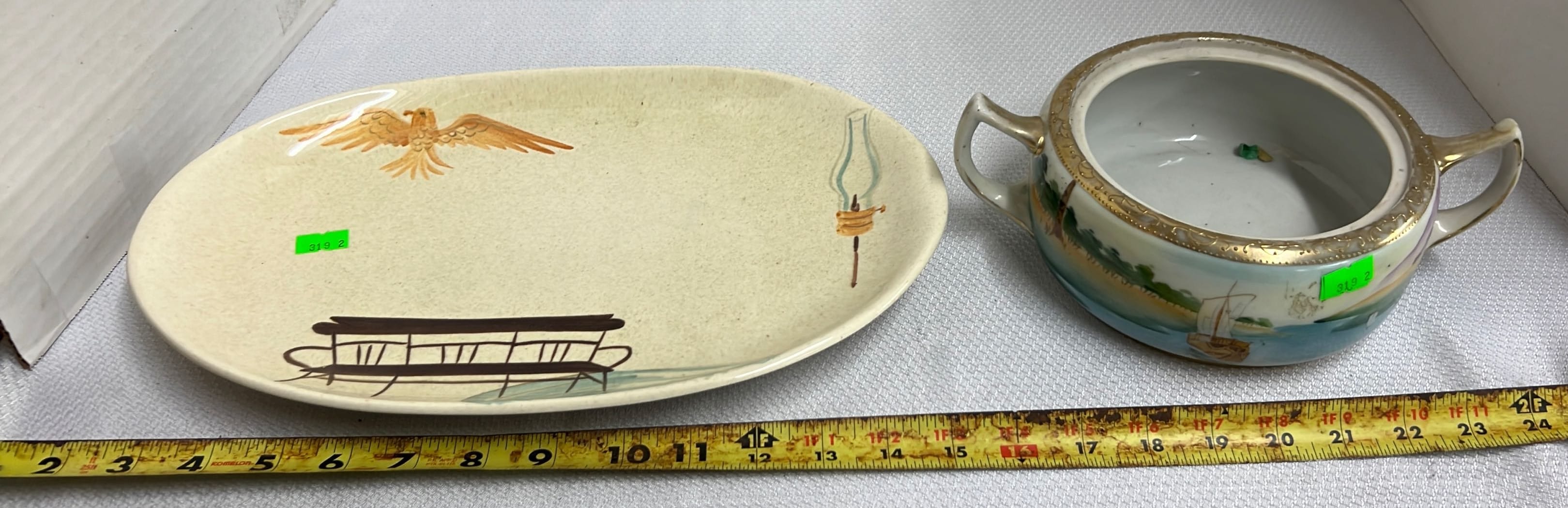 319 Nippon Two Handle Hand Painted Bowl 6.5”, Red Wing Hand Painted Platter No. 231
