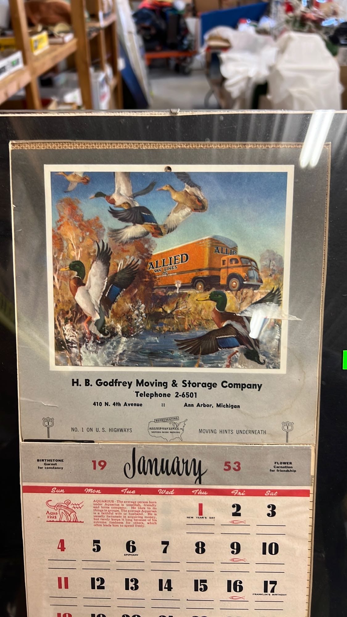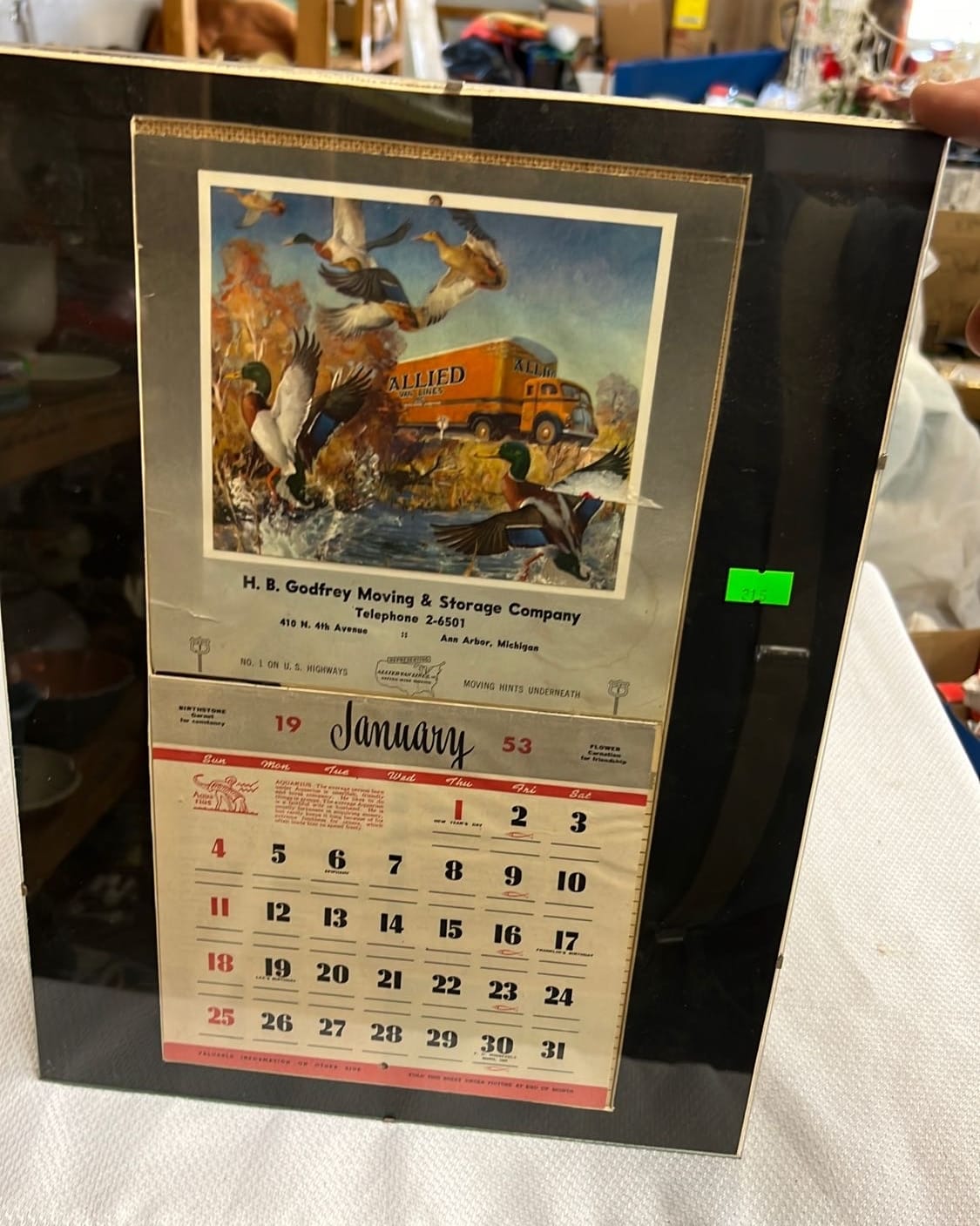 315 H.B. Godfrey Moving & Storage Company Framed 1953 Advertisement Calendar, 12” x 16”