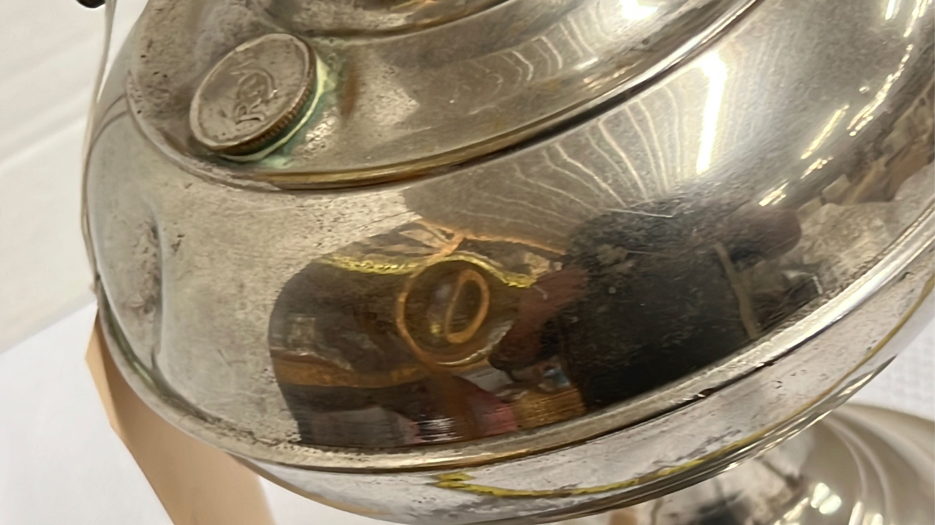 324 Rayo Oil Lamp with Chimney 23”, has a few dents