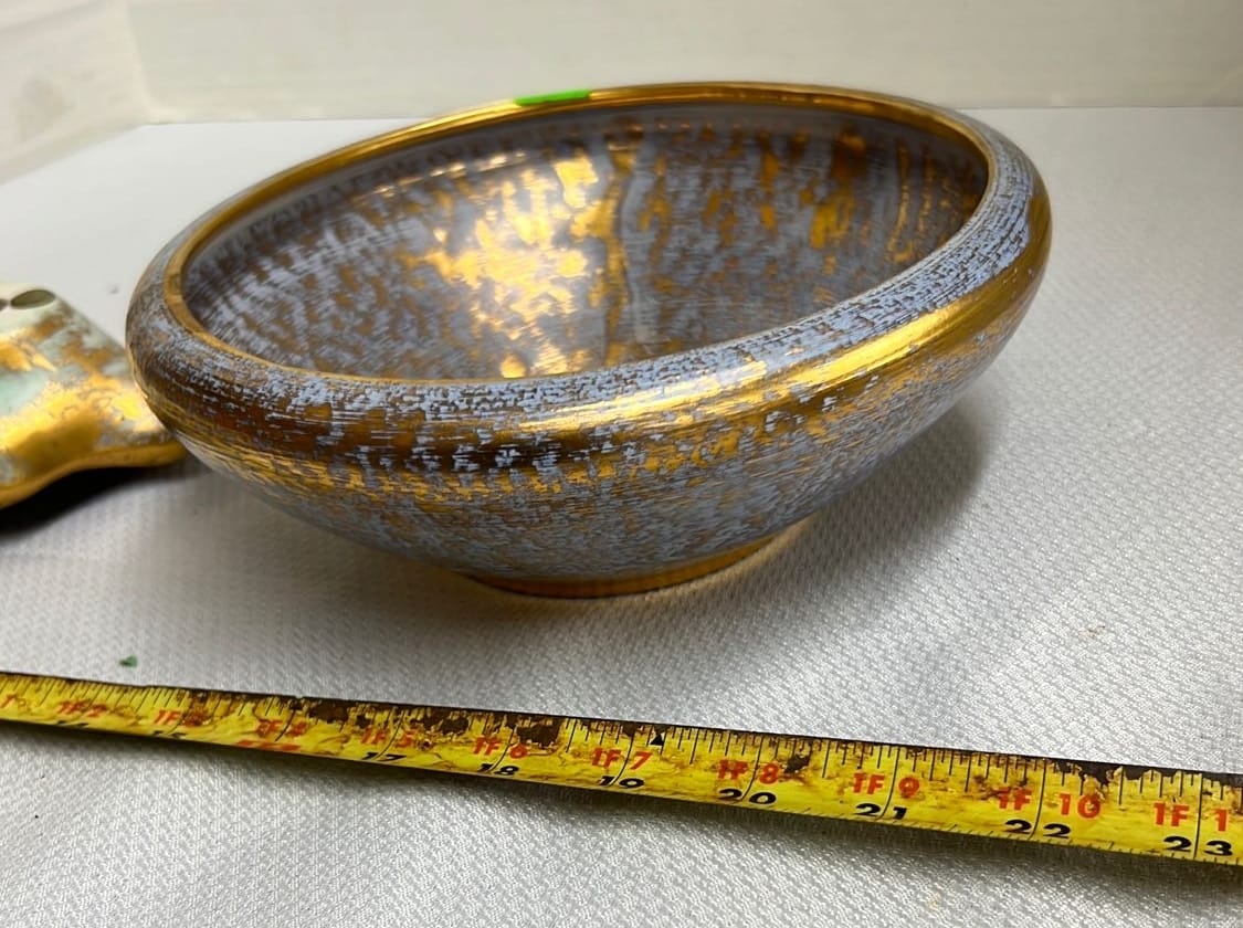 310a Falcon Ware Shallow Bowl-has crack, Stangl Bowl, Double handle vase