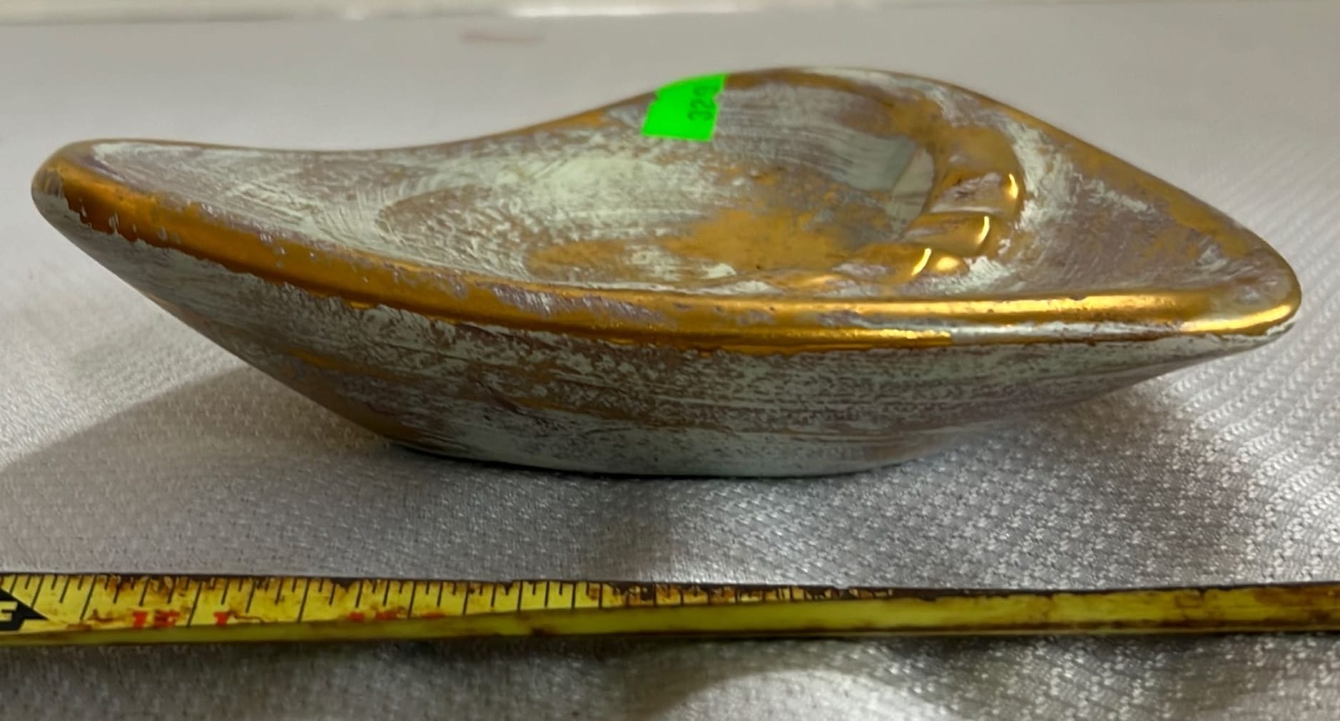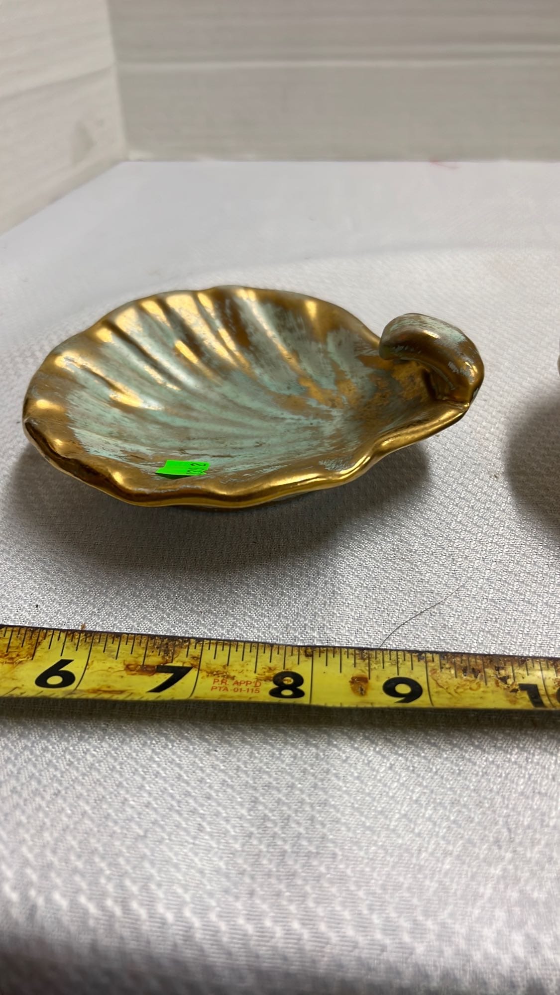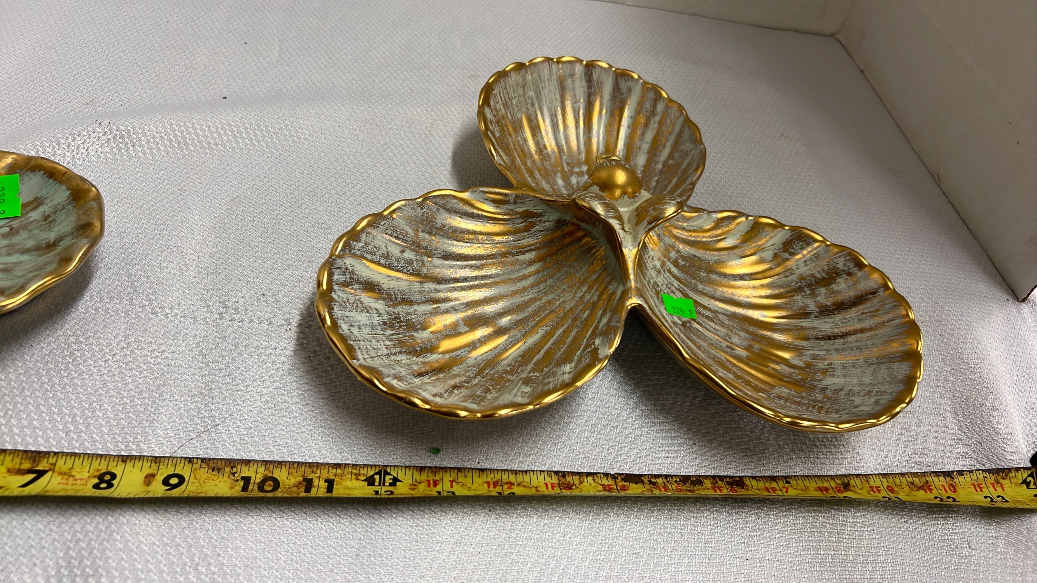 339 Stangl 22KT Gold Shell Relish Dish 11” No. 3781 & Small Shell Dish 5” No. 4037
