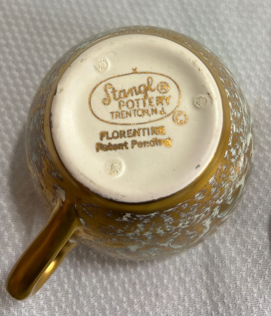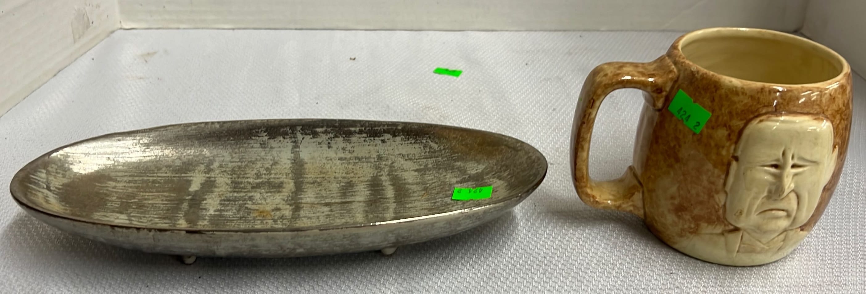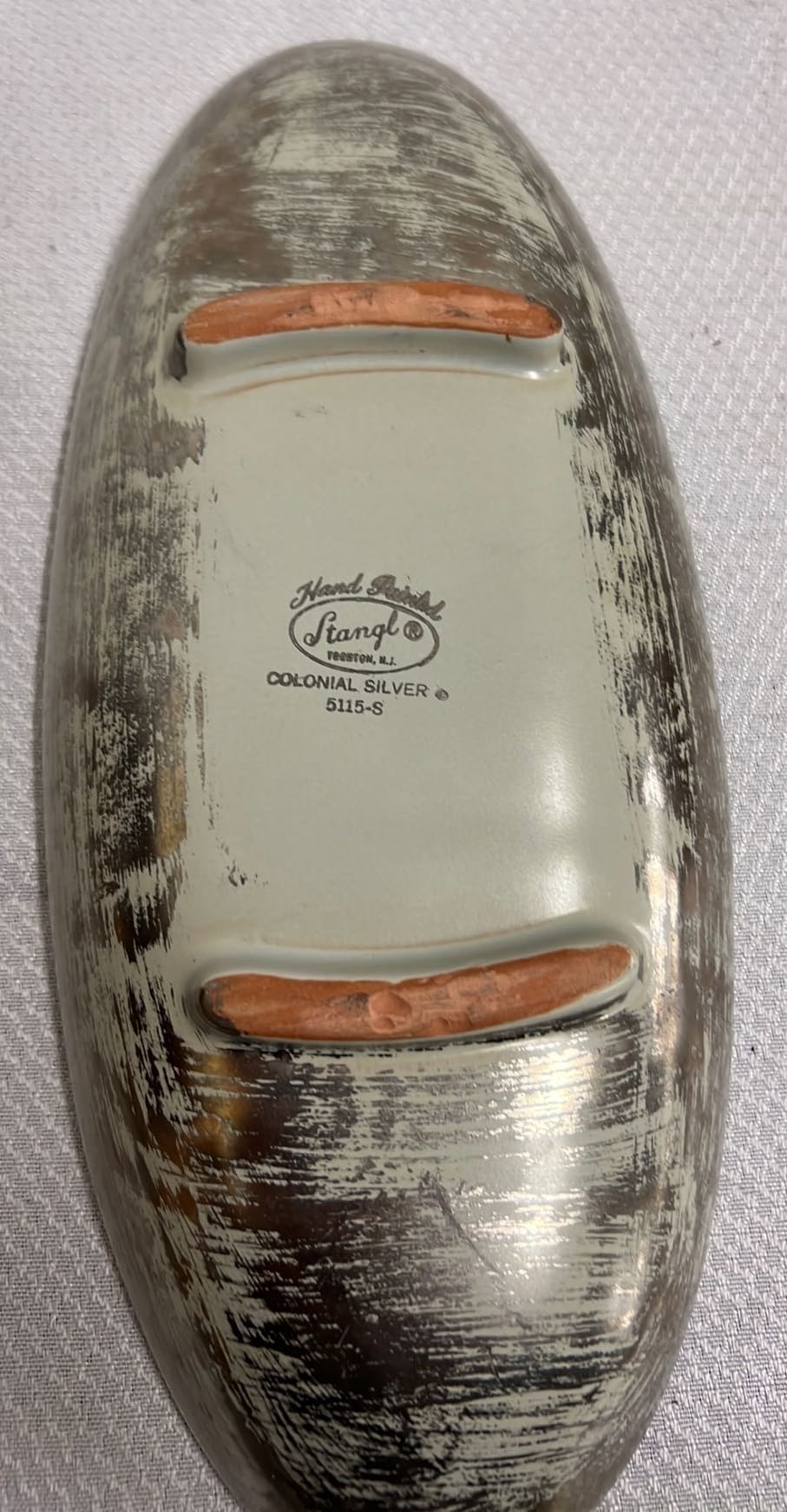 424 Stangl colonial silver wash oval dish, 4 1/2” x 11”,Stangl mug #1647-7,4” tall