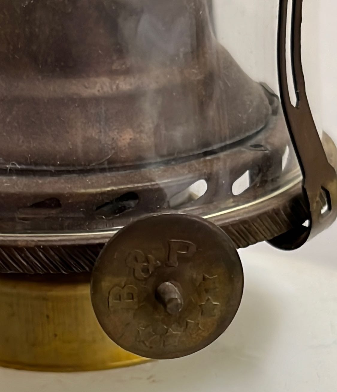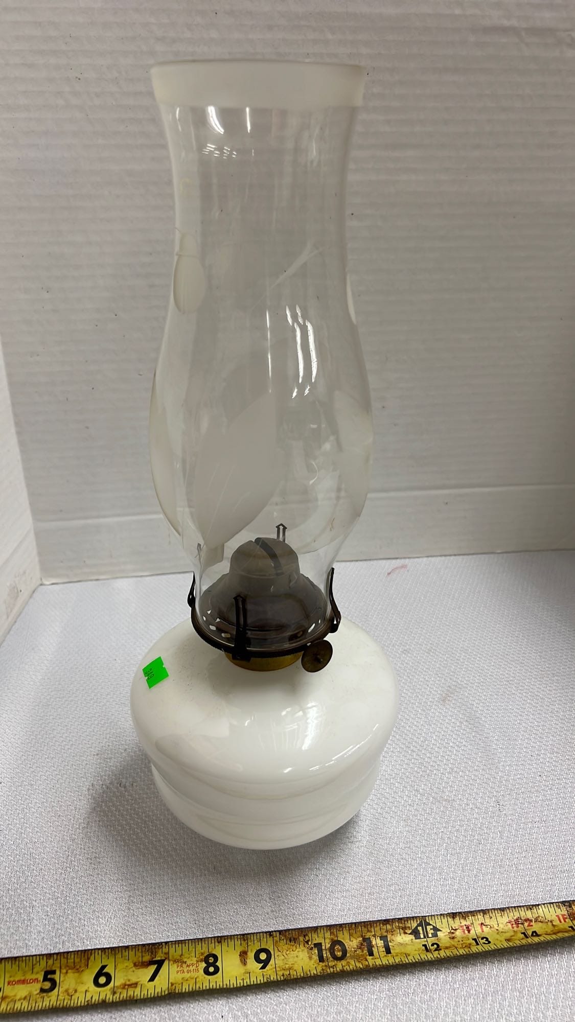 349 Vintage B&P Oil Lamp with Etched Frosted Chimney 15”