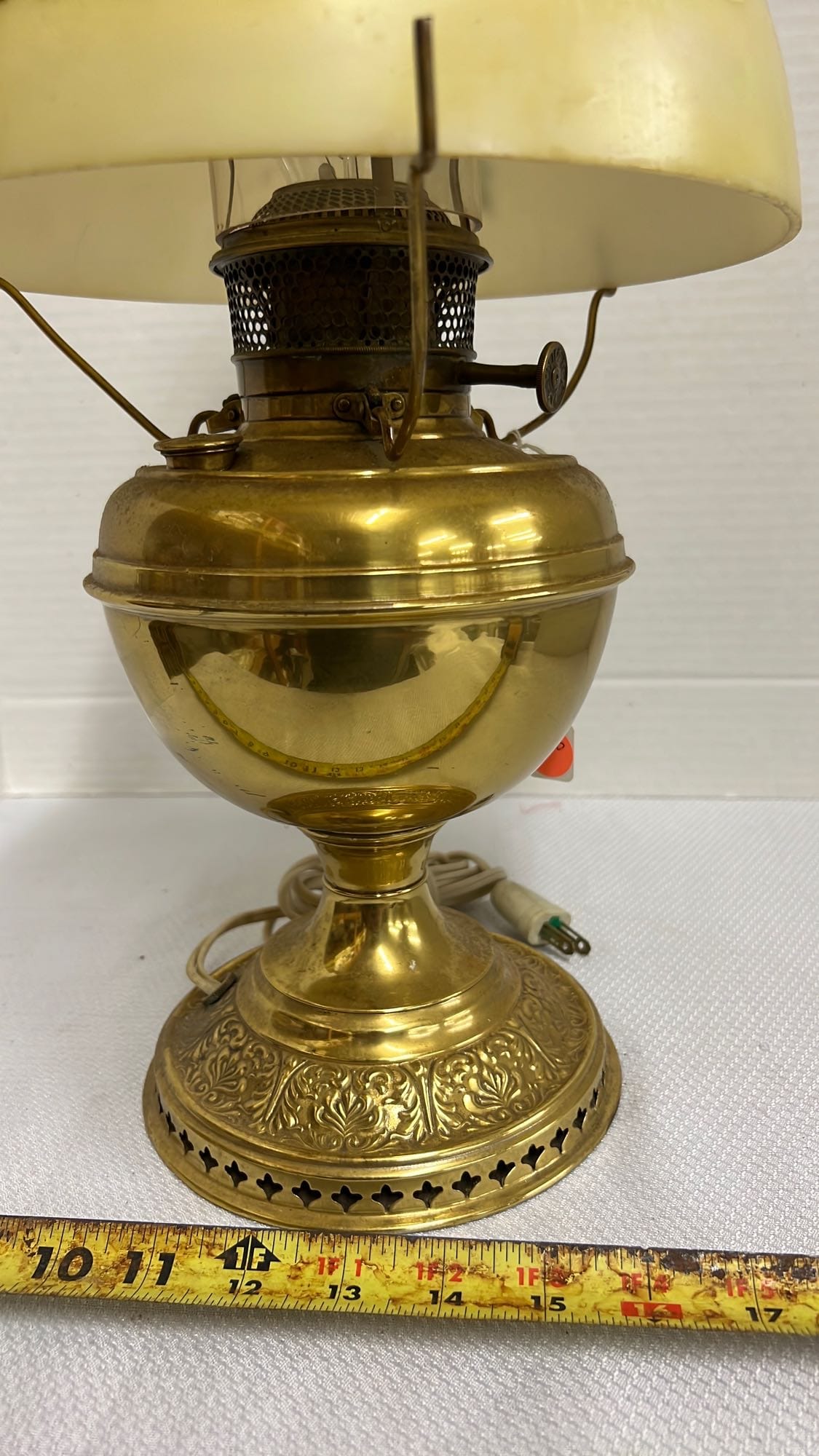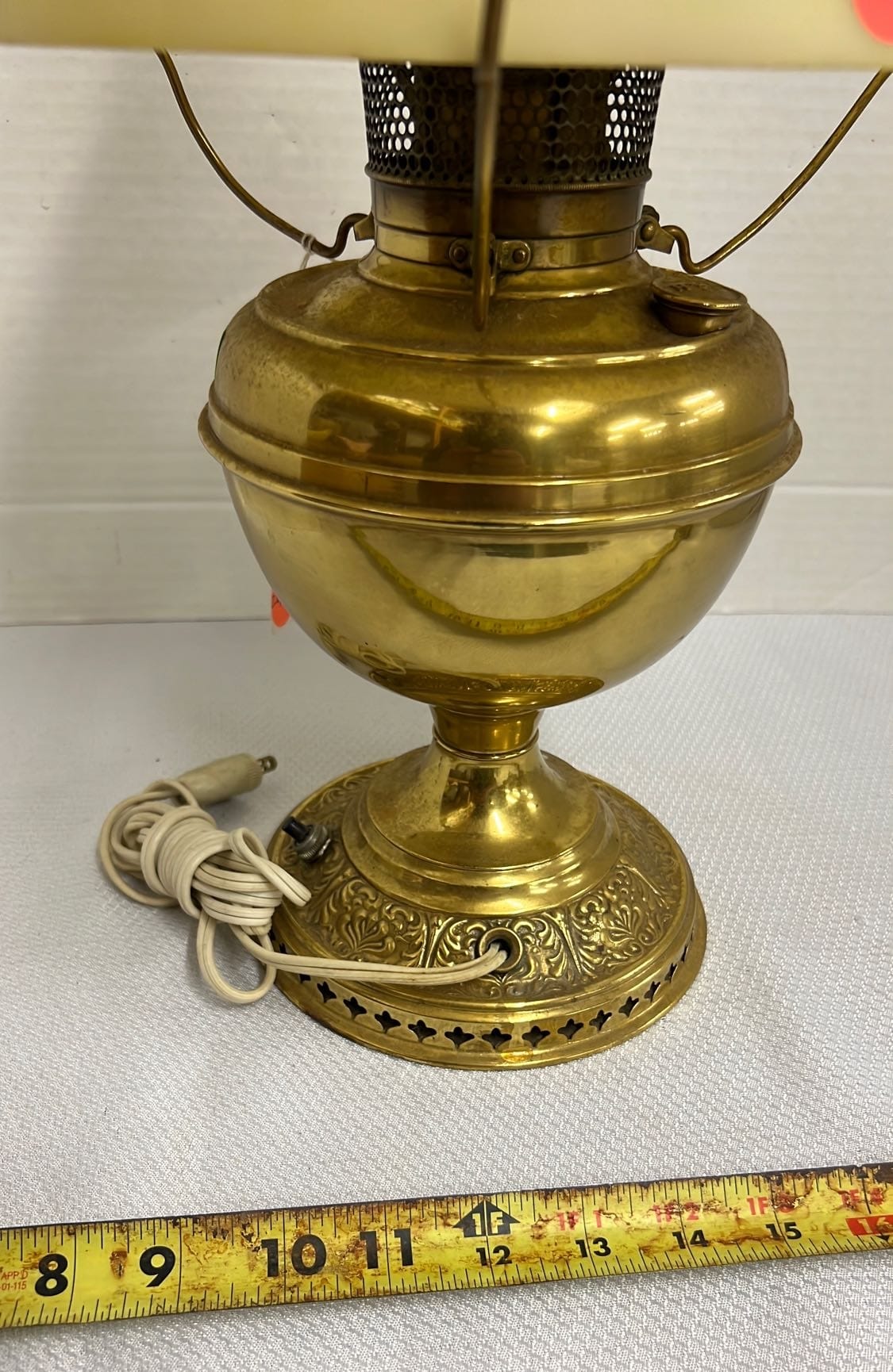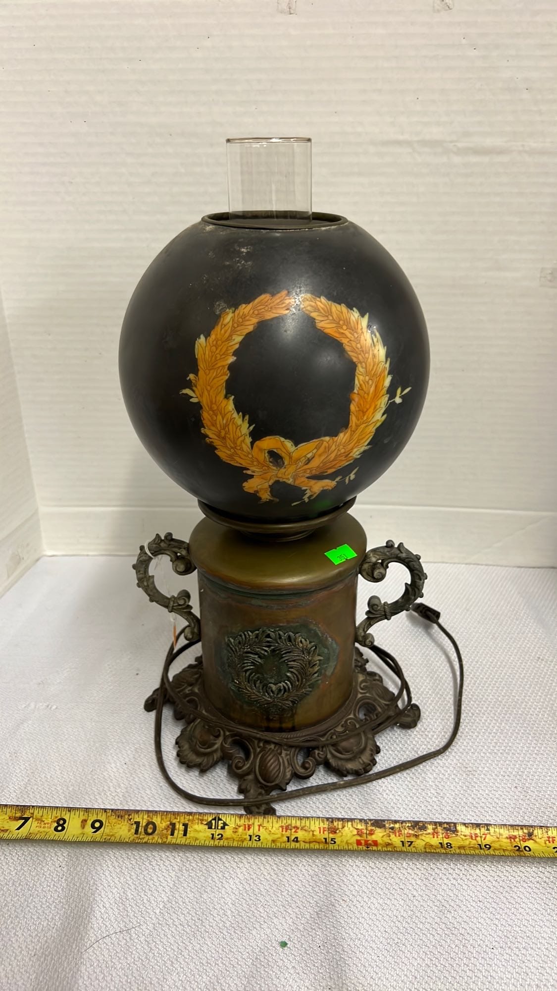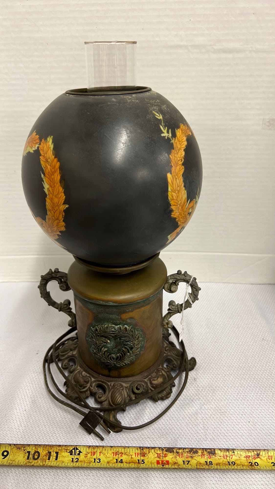 351 Electric Ornate Metal Base Lamp with Glass Globe & Chimney 16.5”