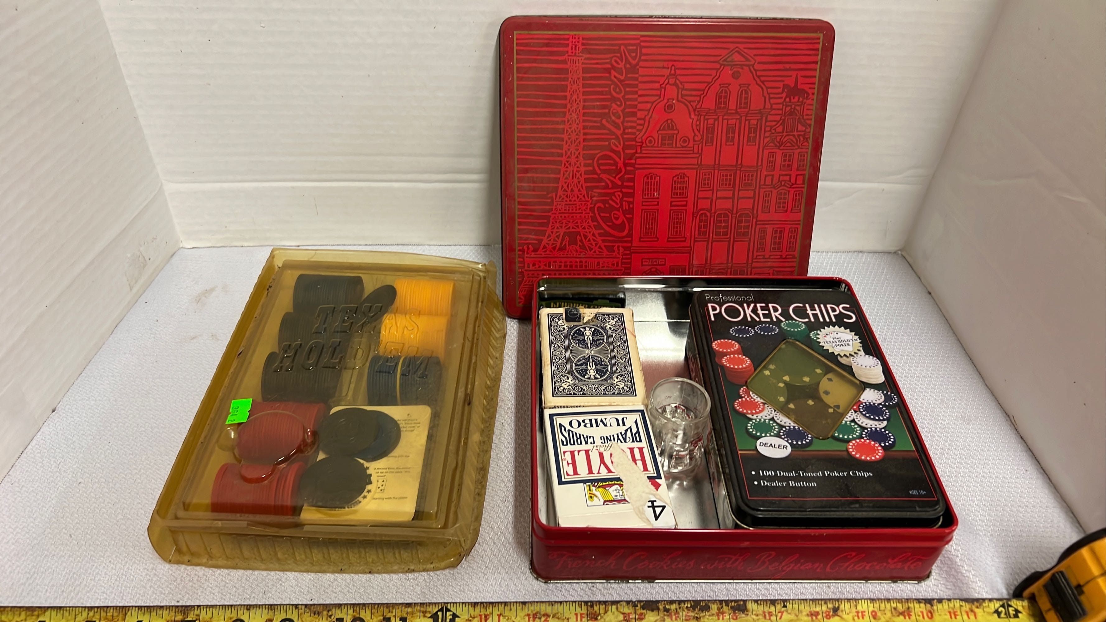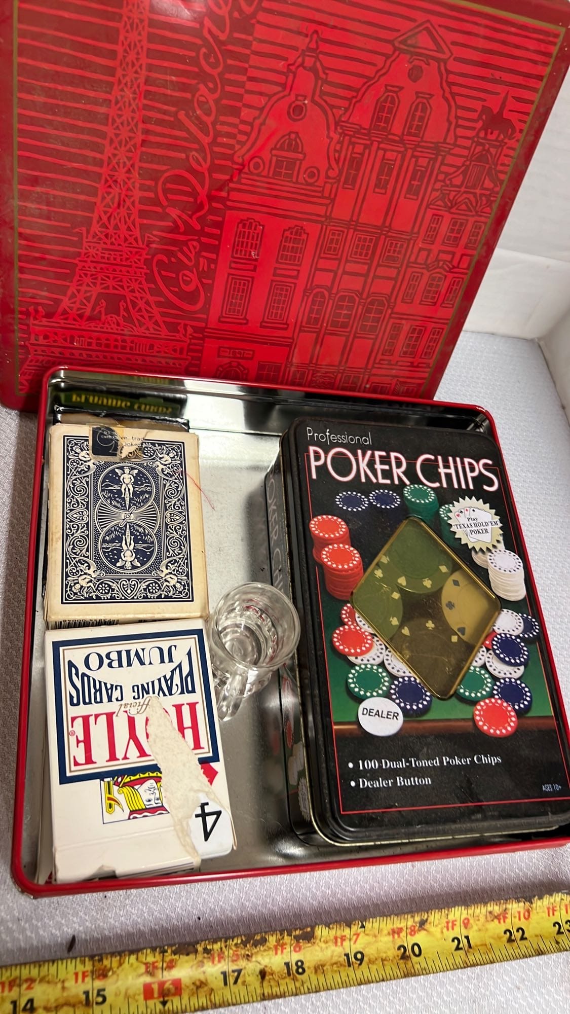 364 Texas Holdem Game, Poker Chips, Playing Cards, Minature Mug, Tin