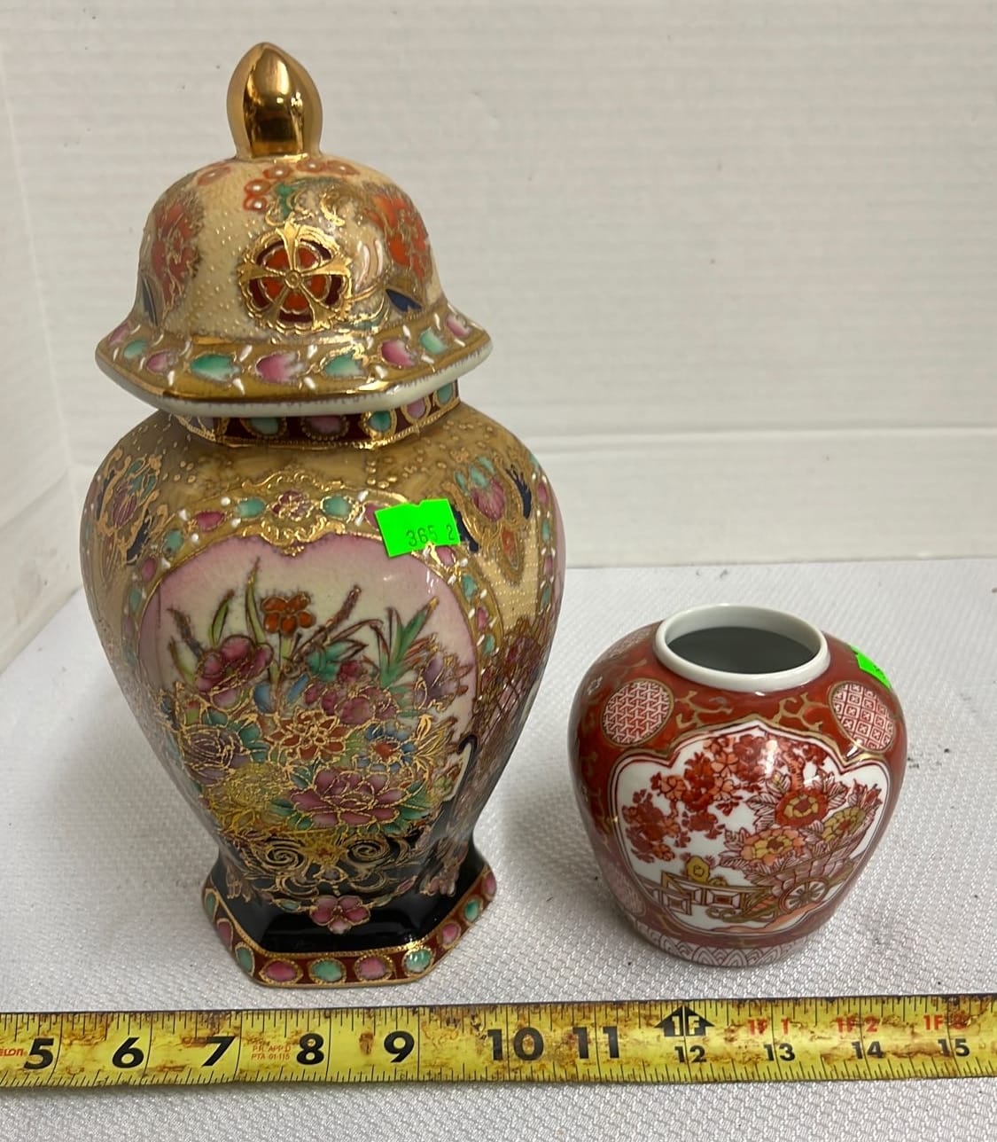 365 Chinese Urn 10”, Gold Imari Hand Painted Ginger Jar