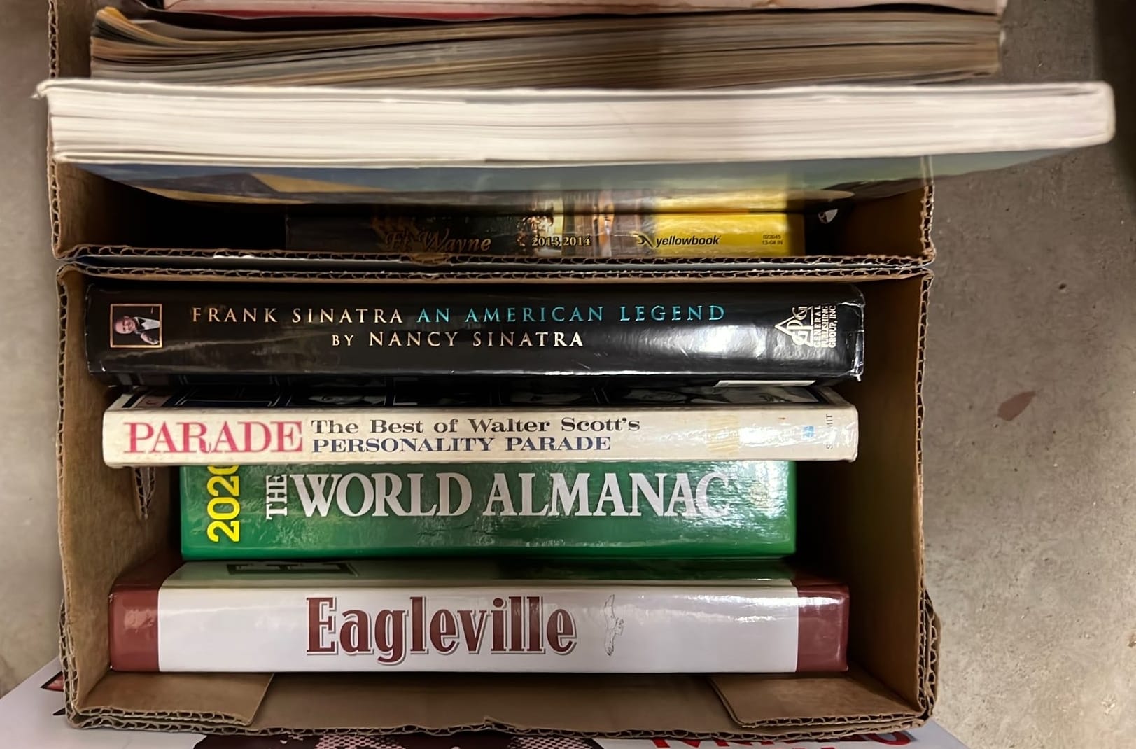 401 Book assortment including, The Big Black Book, Jimmy Stewart, The Encyclopedia of Furniture, Eagleville, Frank Sinatra, Gary Cooper, Diana Ross, Rough Diamonds and more
