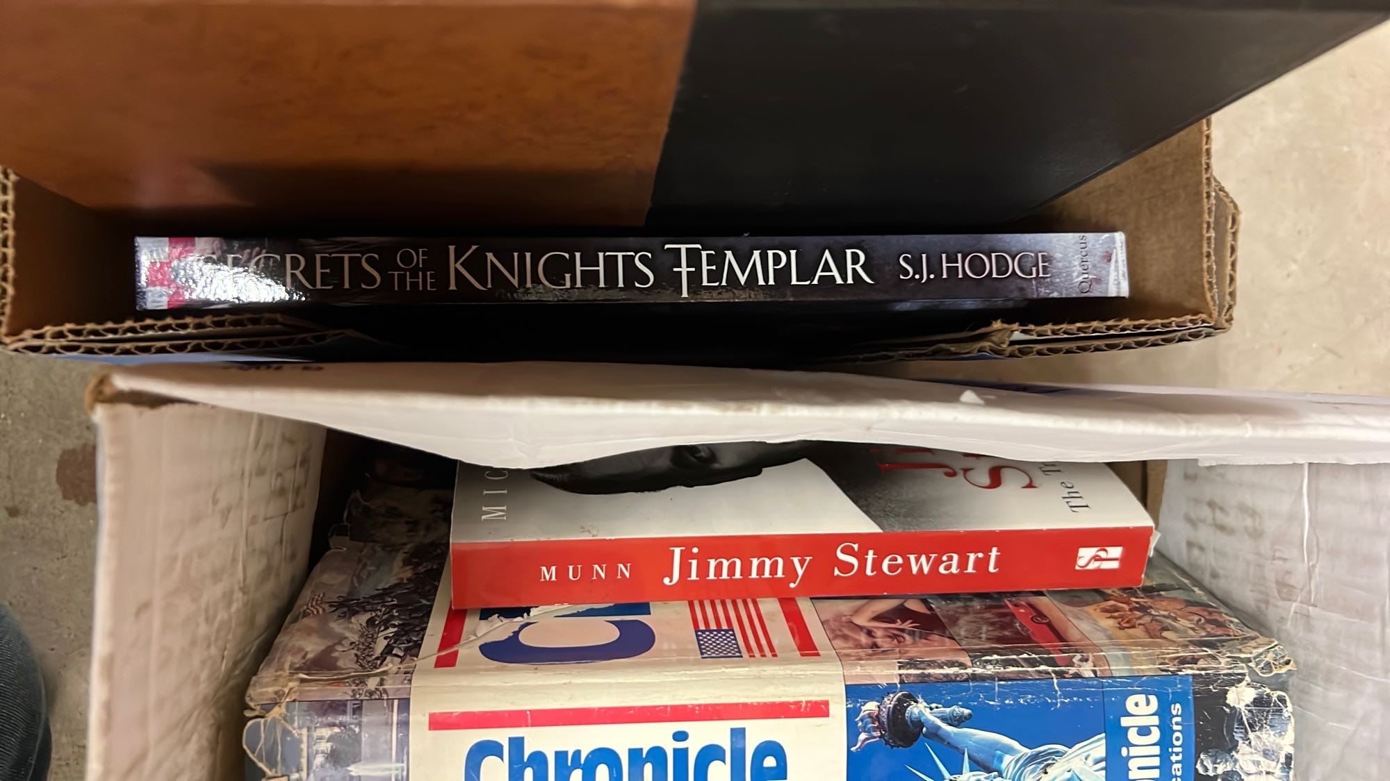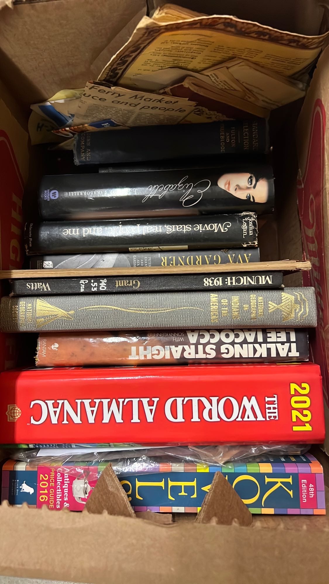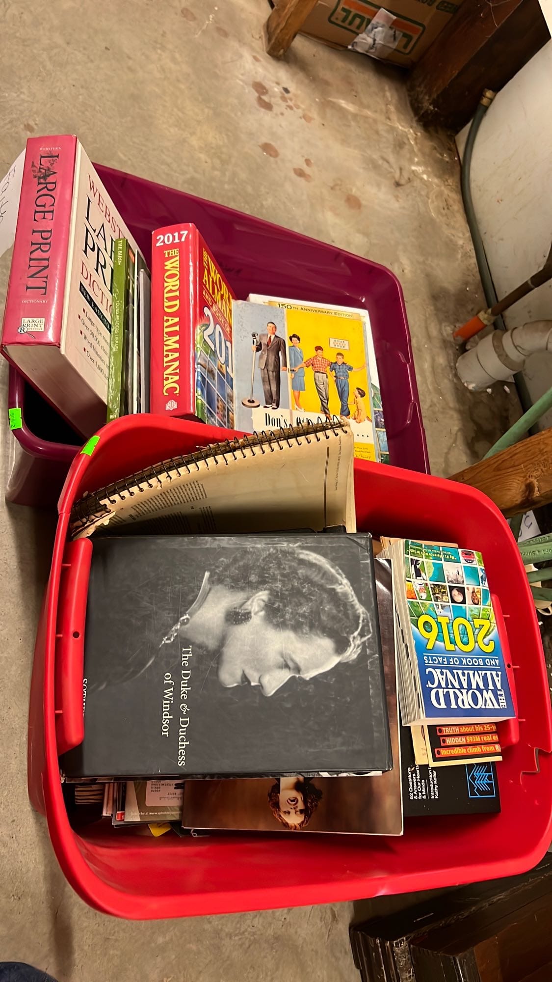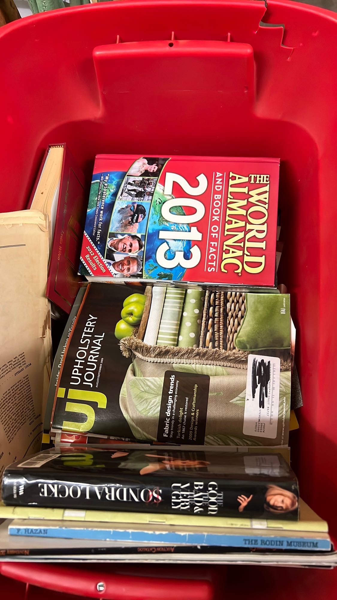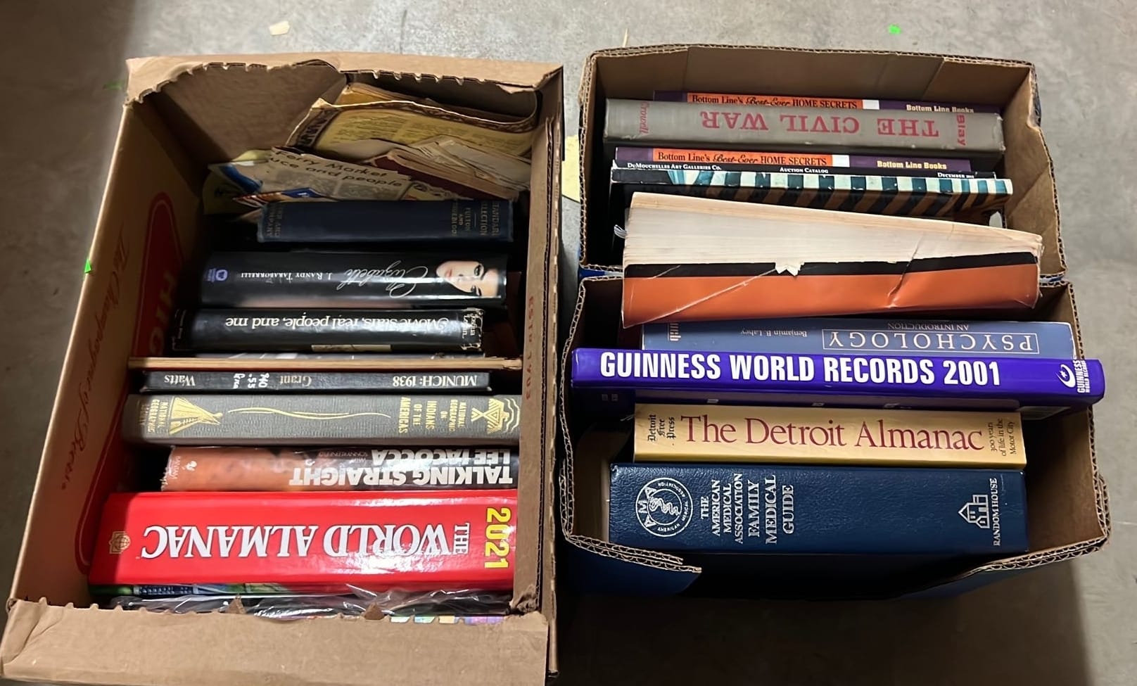 506 Book assortment in two totes, including world, almanac and book of facts, Don’s other life, assorted magazines, the Duke and Duchess of Windsor, Russia, many others