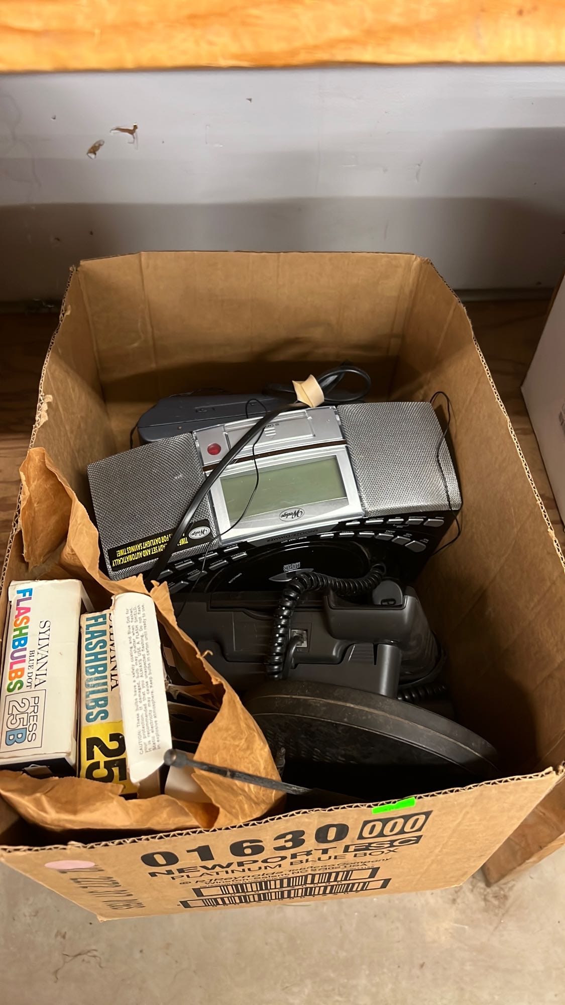 402 Sylvania Blue Dot Flashbulbs, Philco Antena, Uniden Phone, Wedge Disc Player