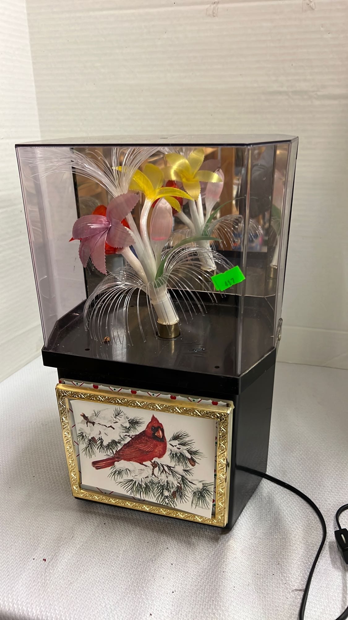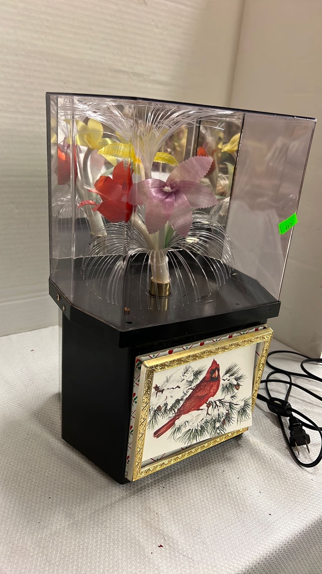 417 Hayes vintage fiber optic rotating lighted flower display , front panel is loose , 9 1/2” x 8” x 15”