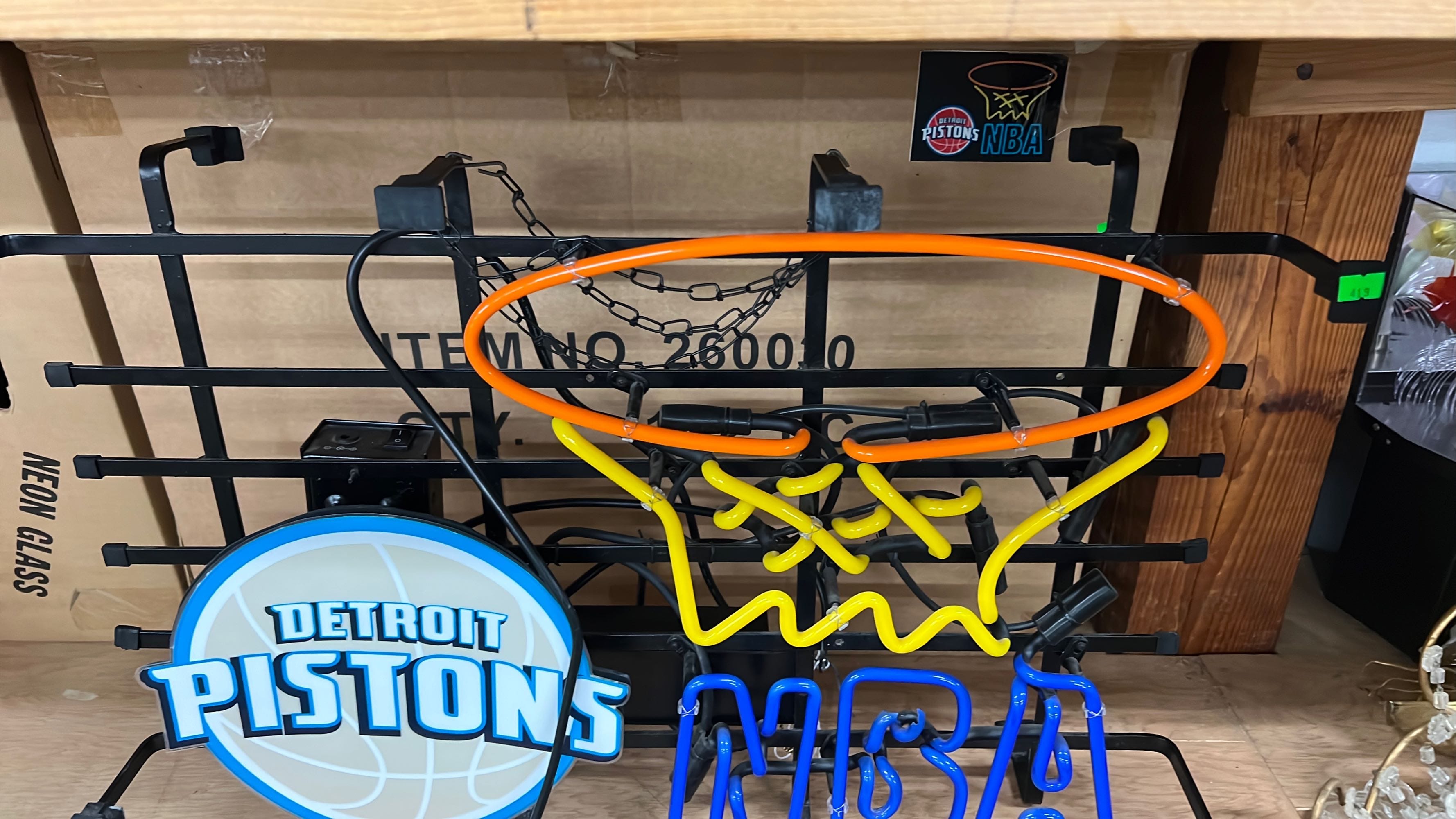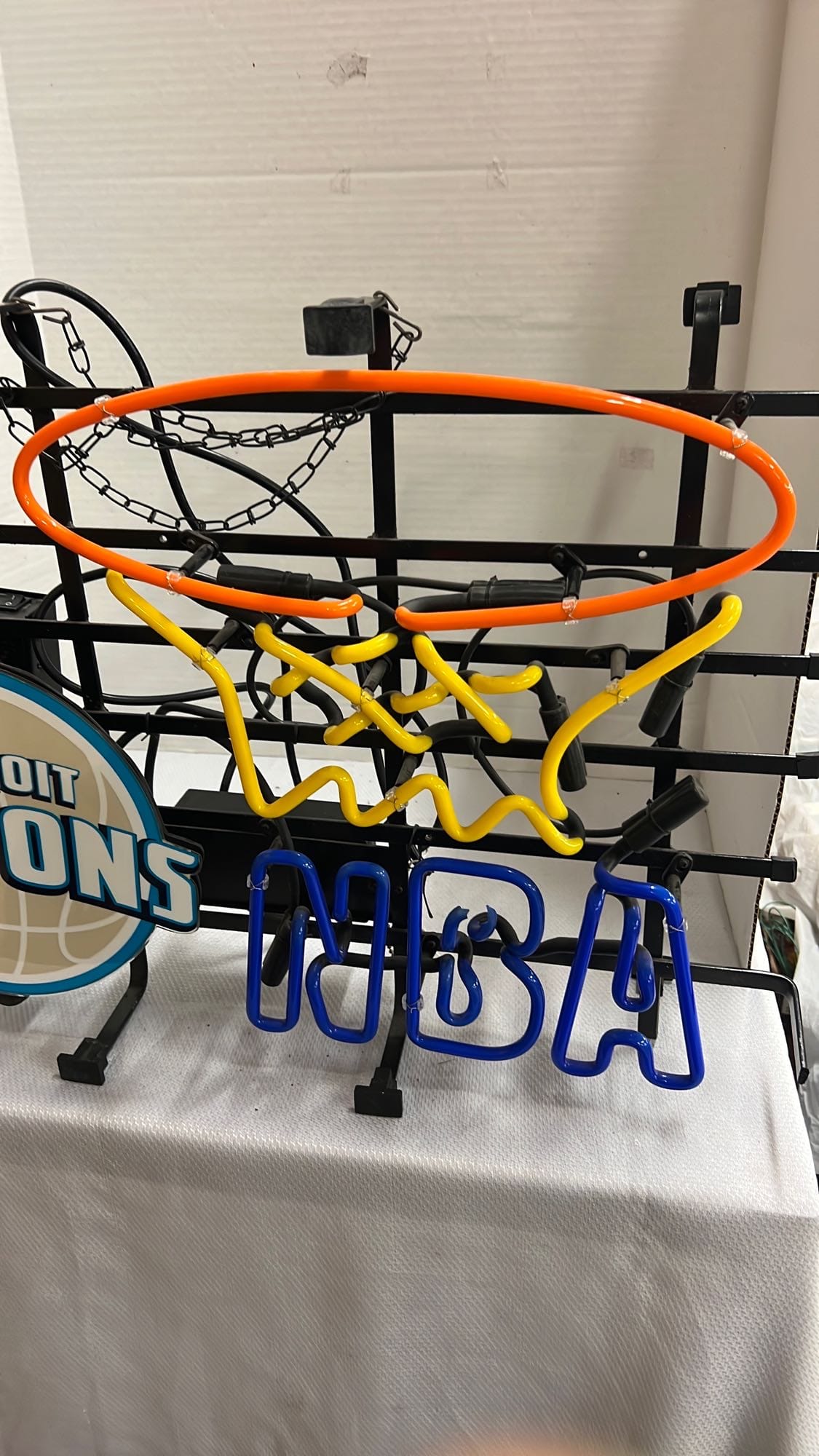 419 Detroit pistons NBA basketball neon light, 28” x 18 1/2”, untested, missing plug on the end of cord, with box