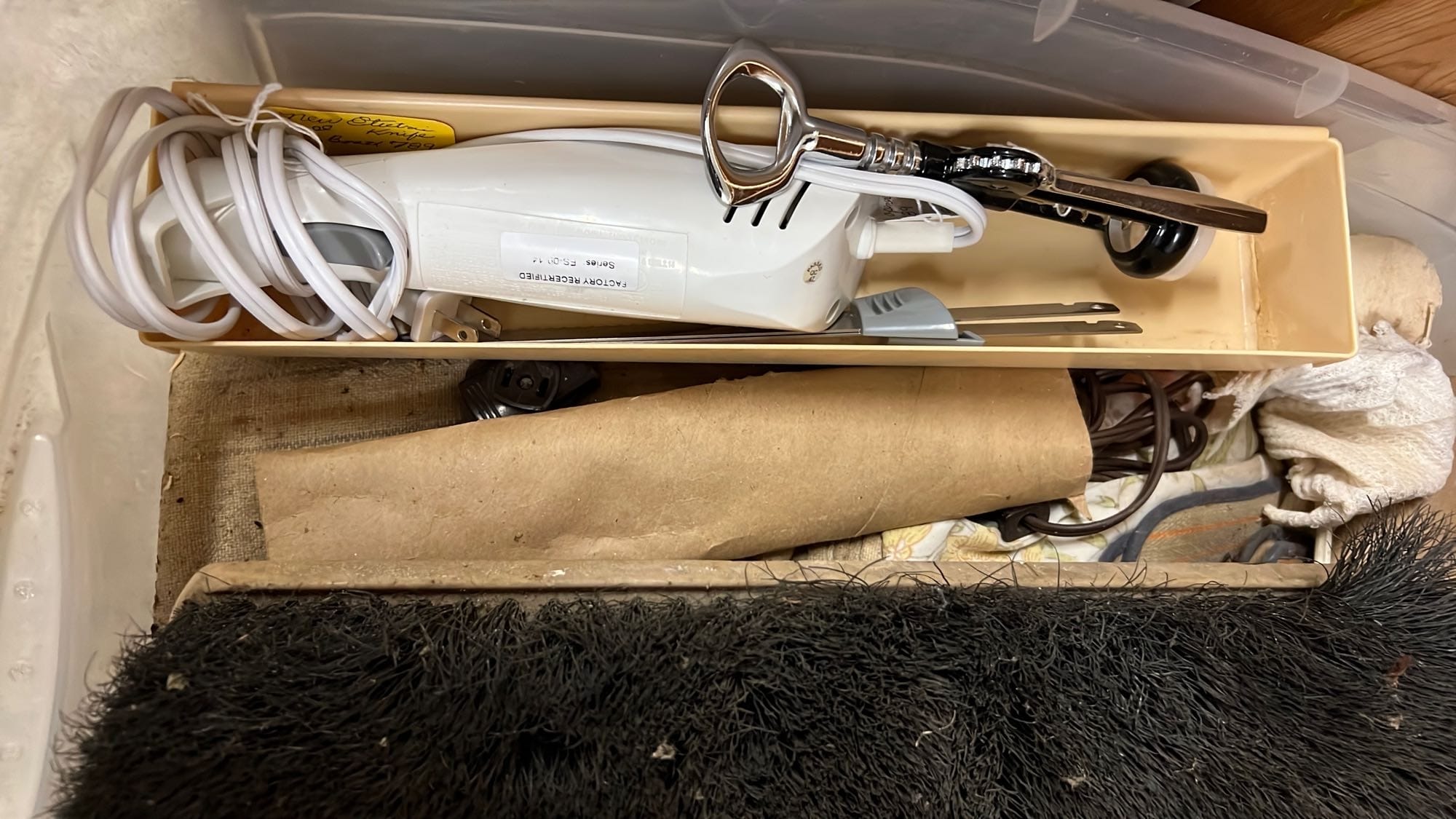 501 Electric kitchen knife, plastic file holder, Broomhead, extension, cords, material, photo, albums, home trend plates , pedestal dish, miscellaneous