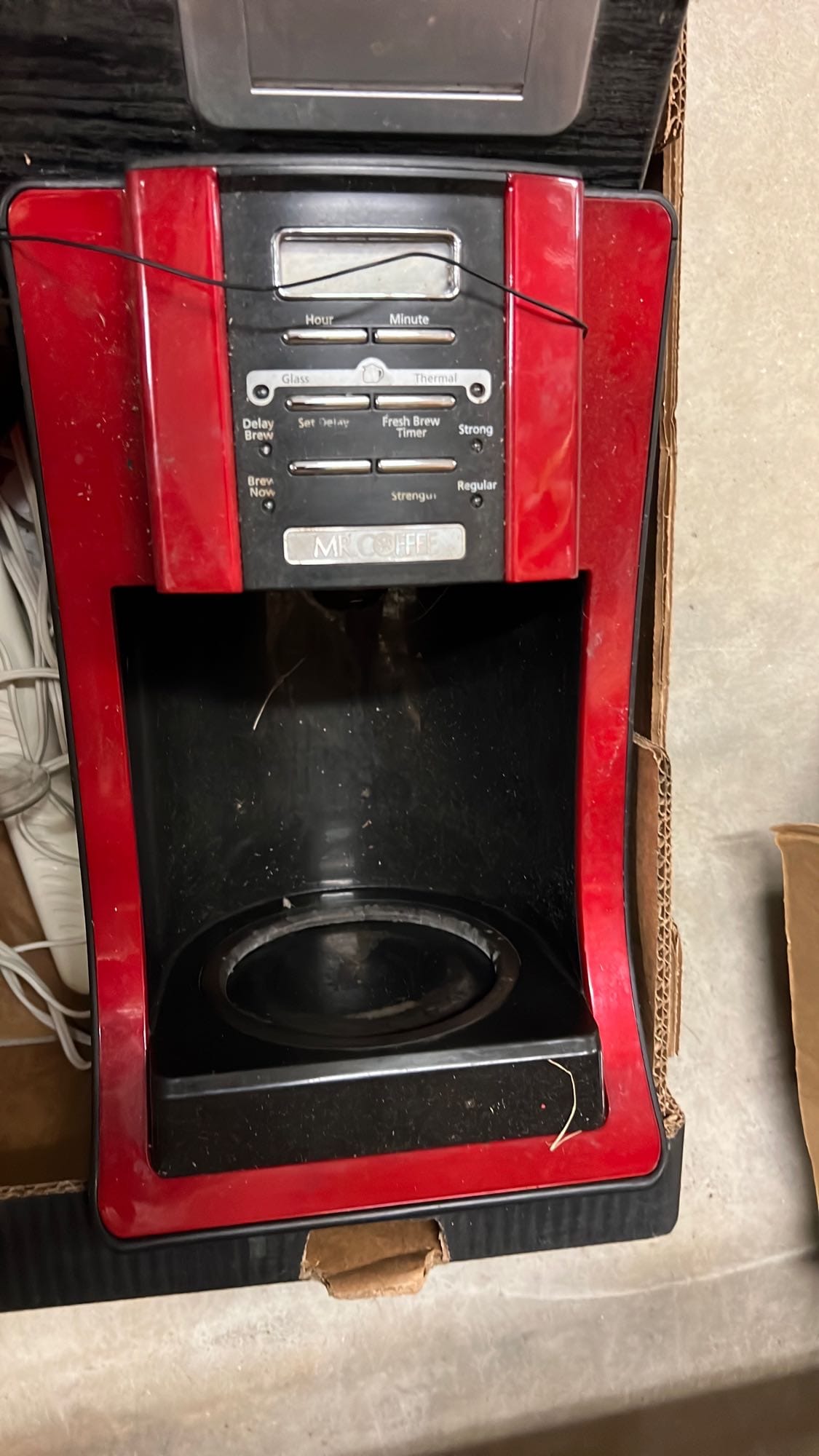 502 hanging wire basket Golf balls, the color compass picture, glass dome, power strip, three tier hanging wire basket , radio, Mr Coffee ,coffee maker, desk, lamp, miscellaneous
