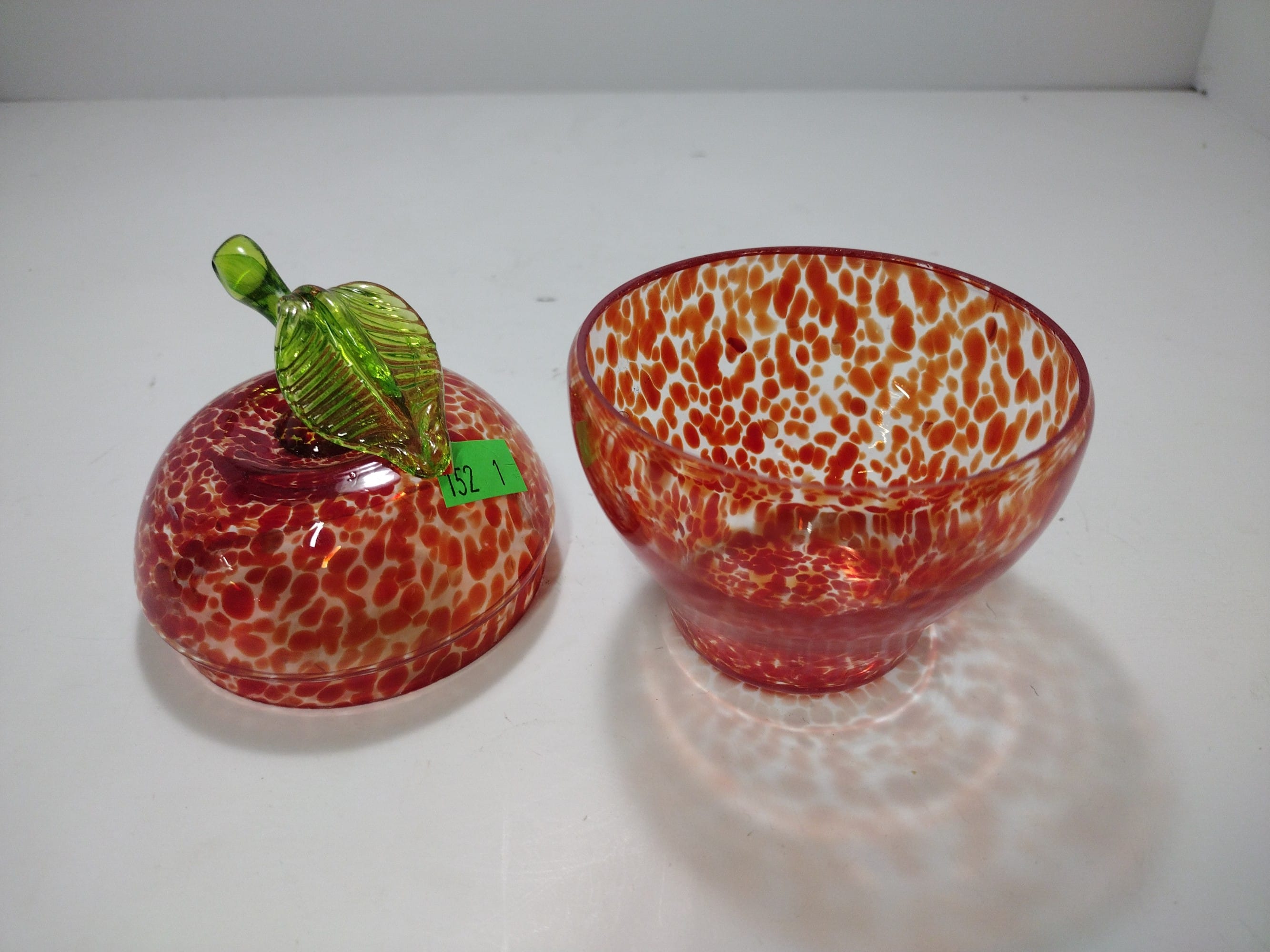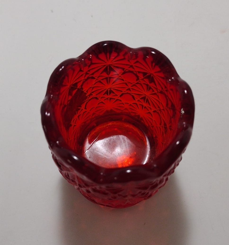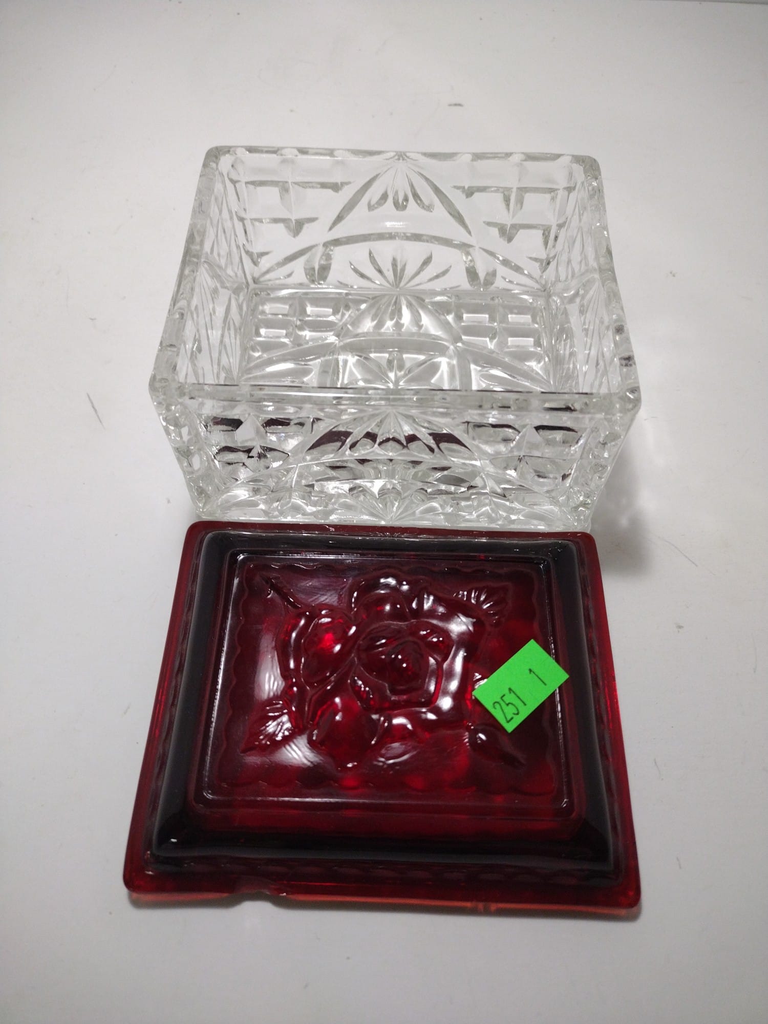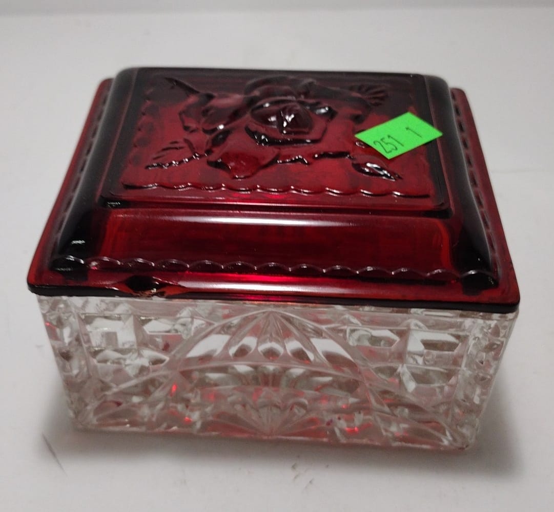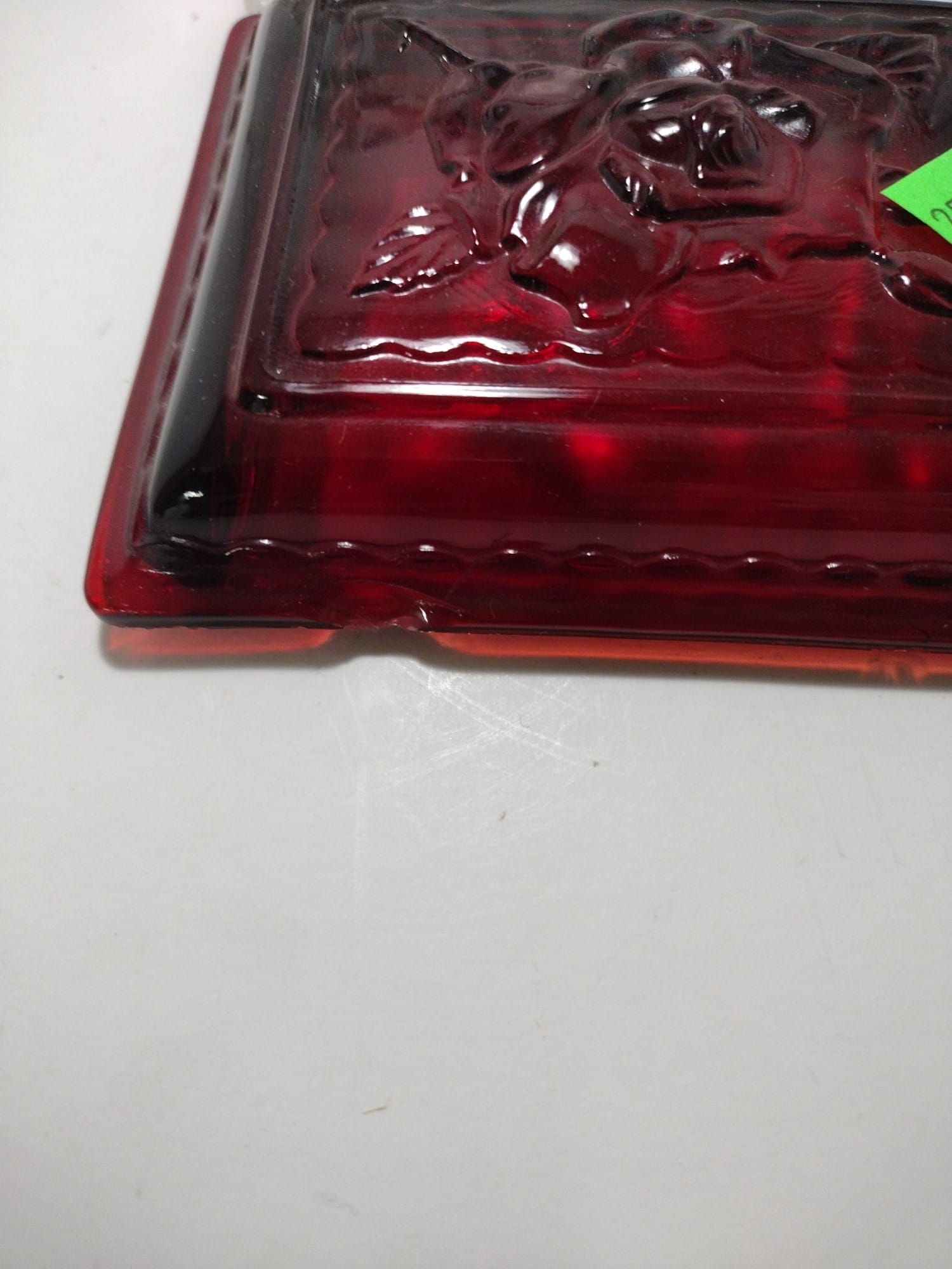 132 Ruby glass assortment-ash trays, trinket box, etc