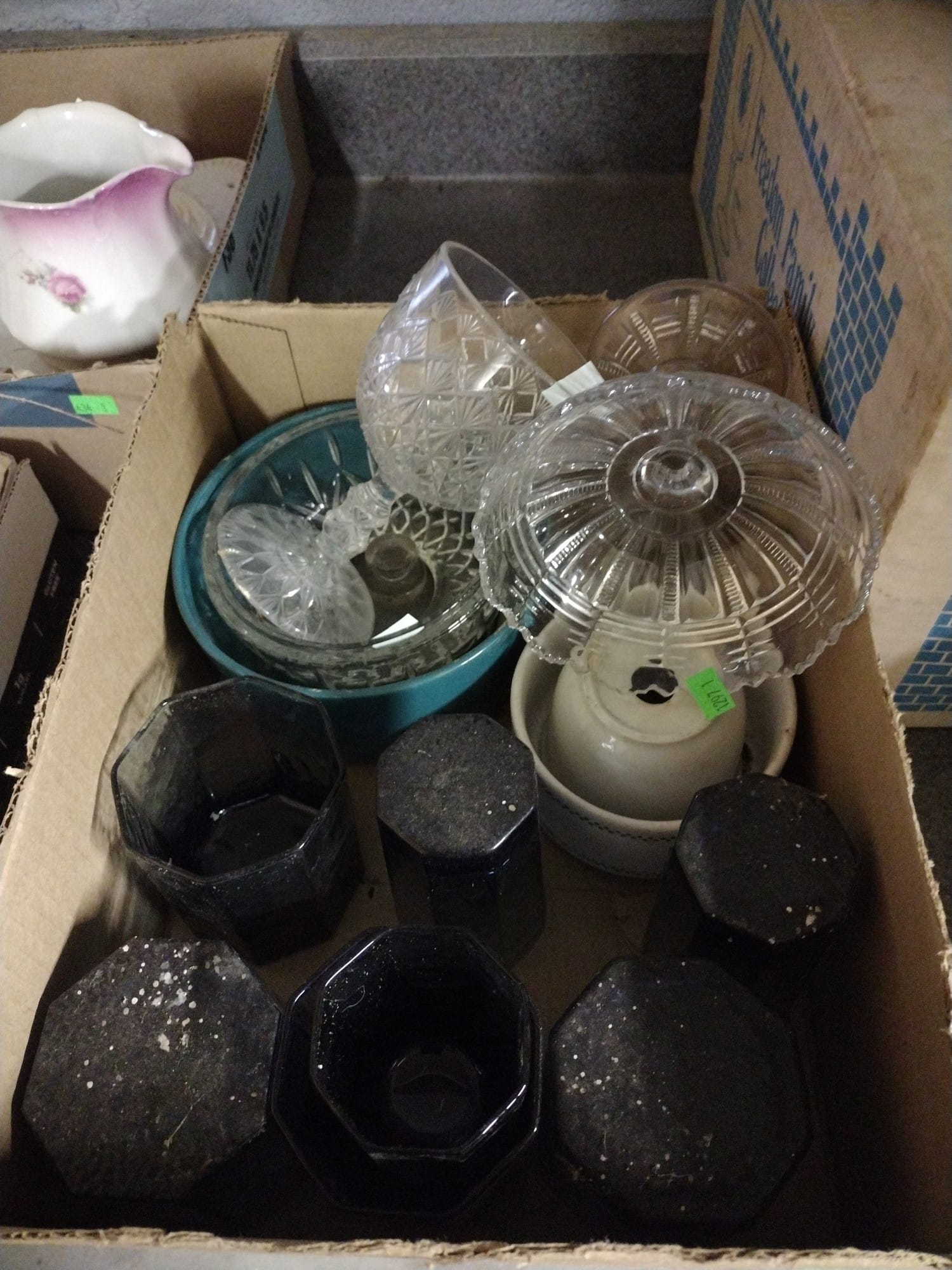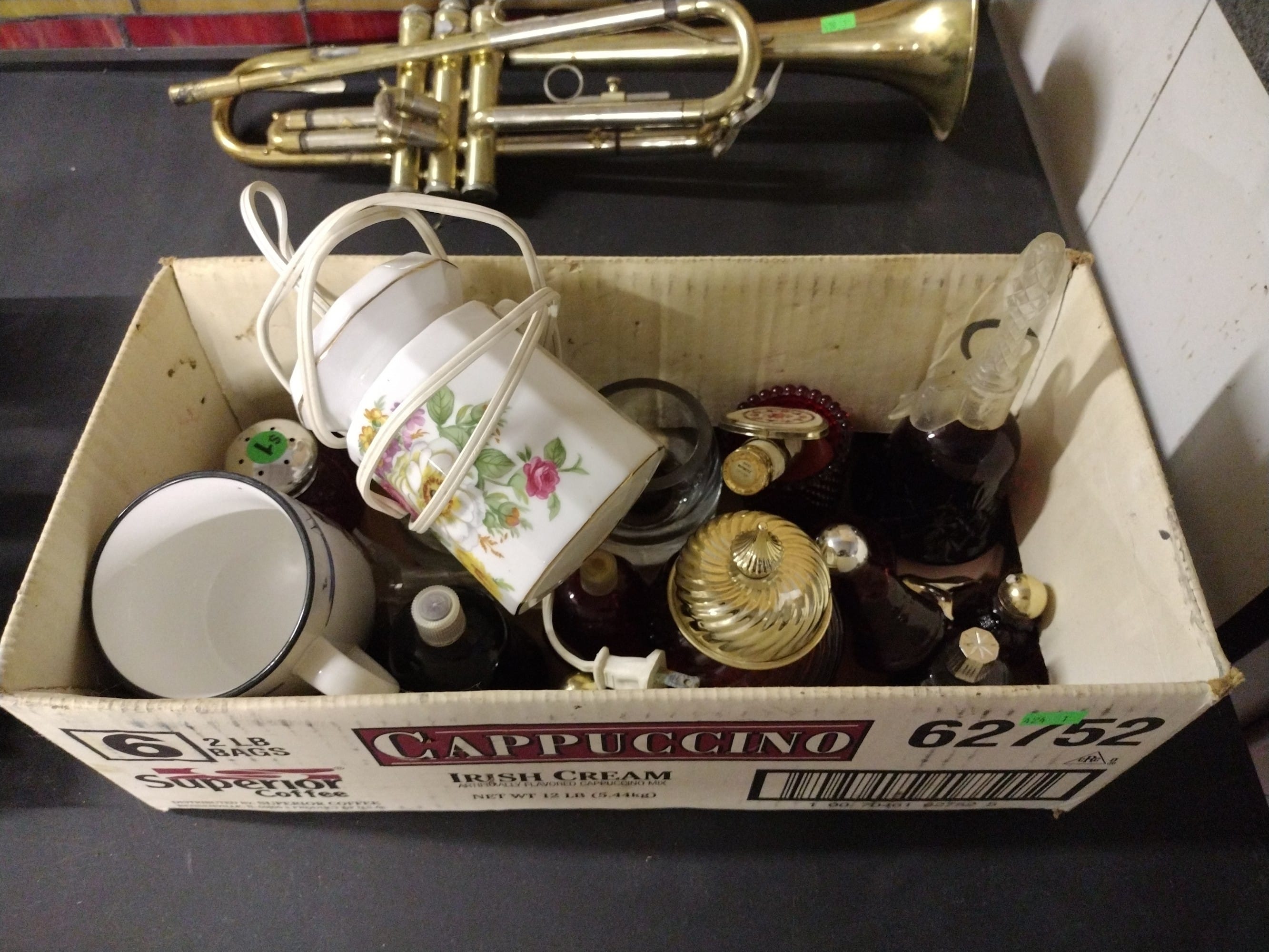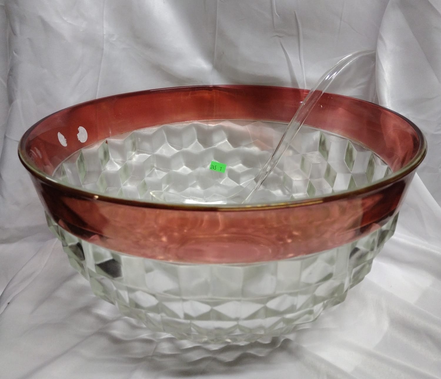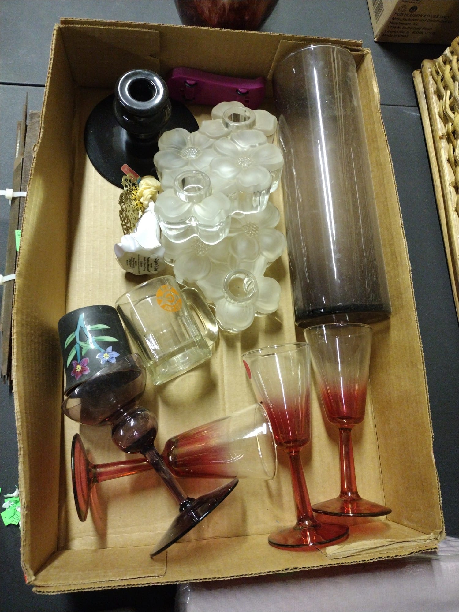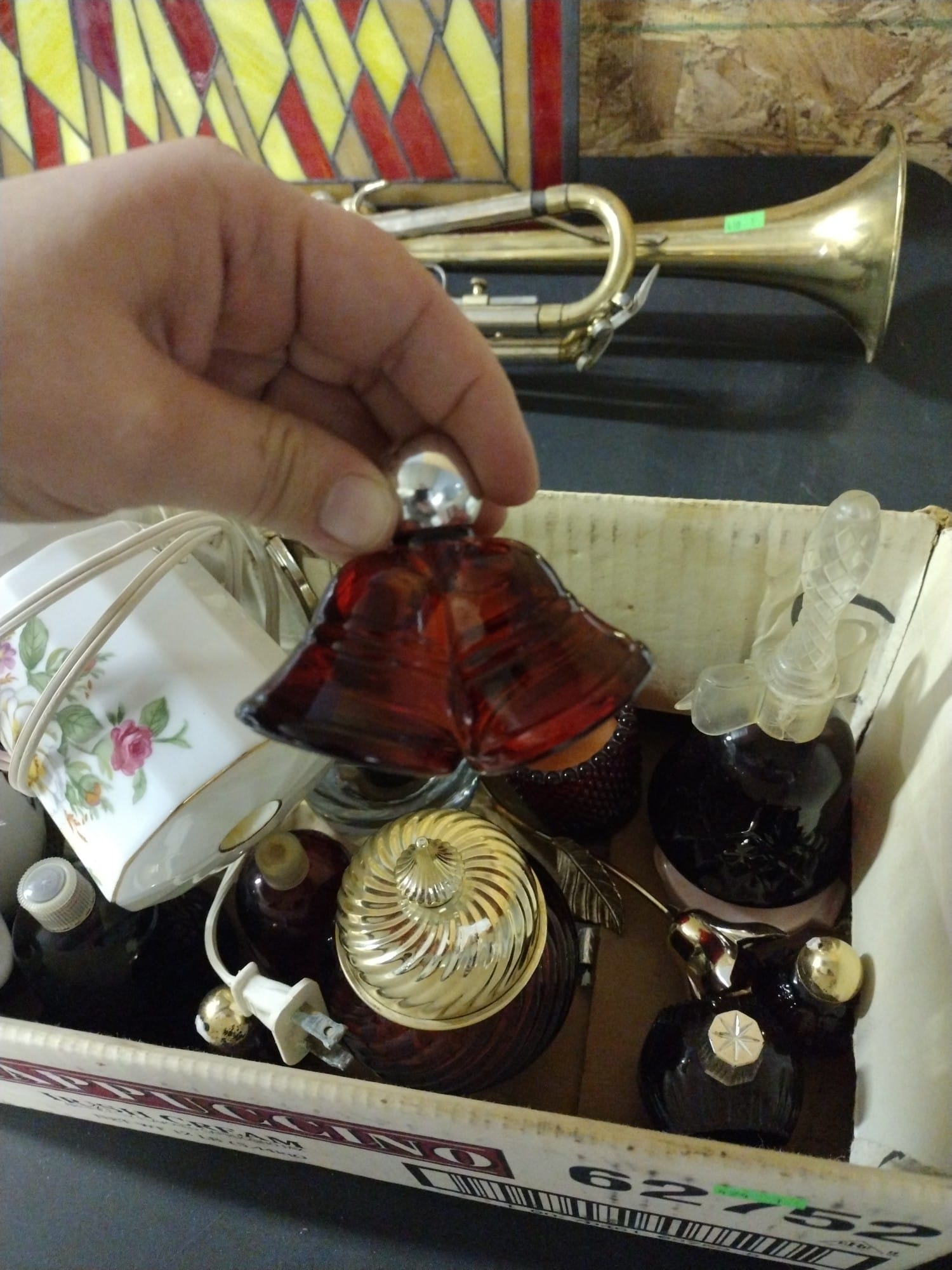 132 Ruby glass assortment-ash trays, trinket box, etc