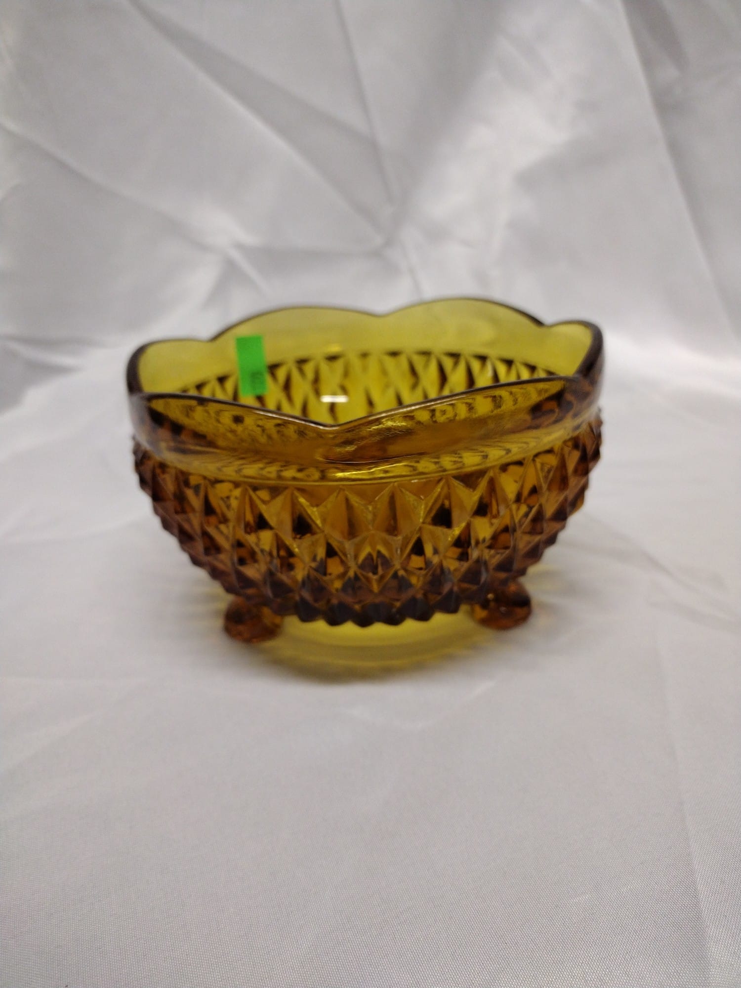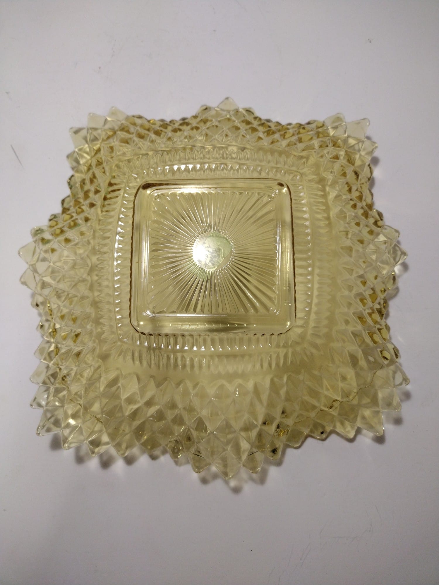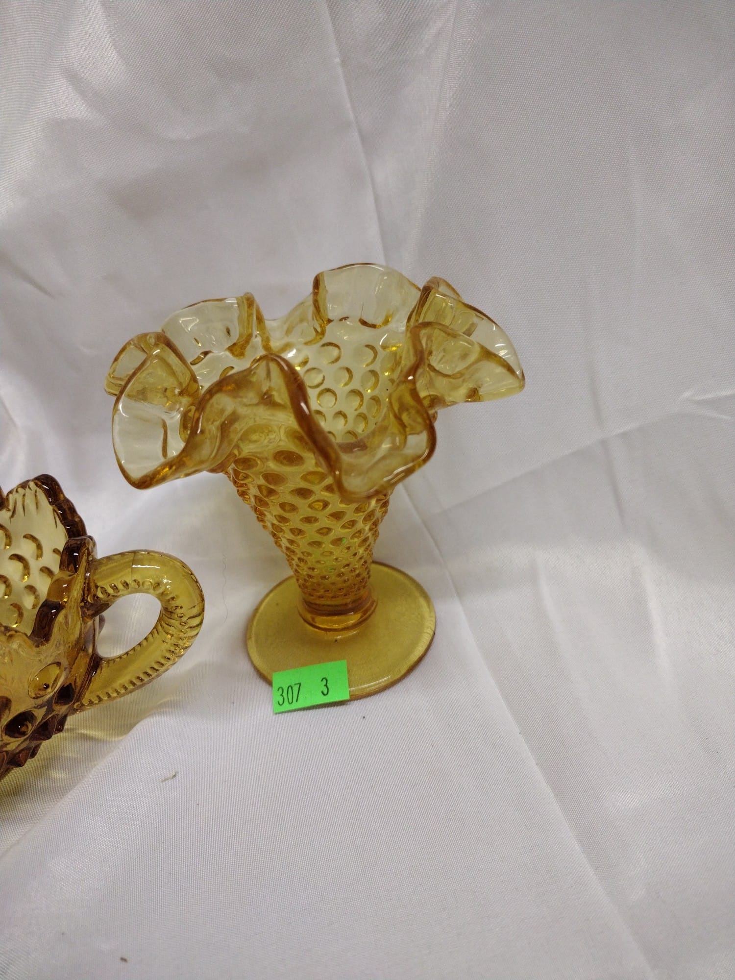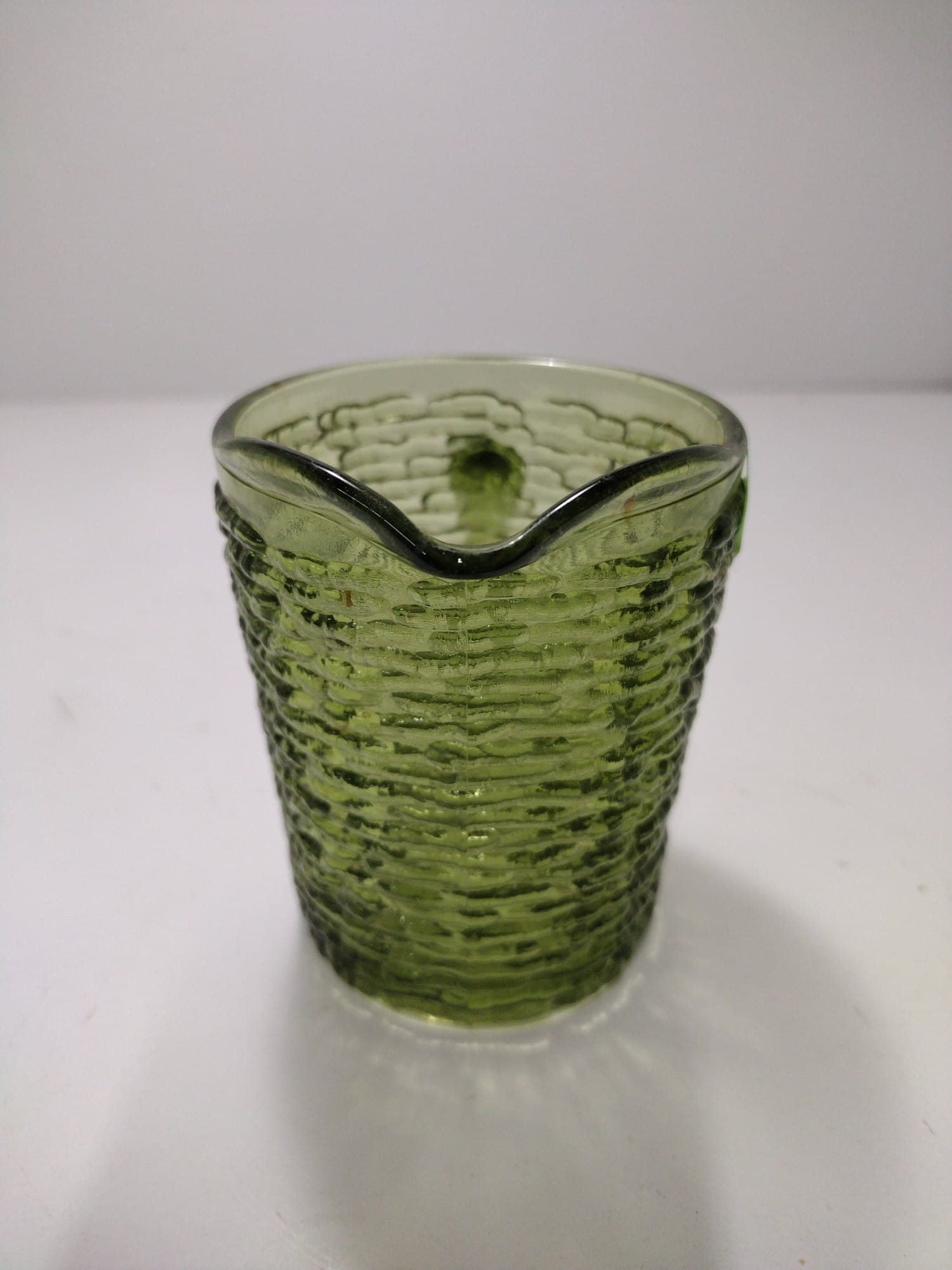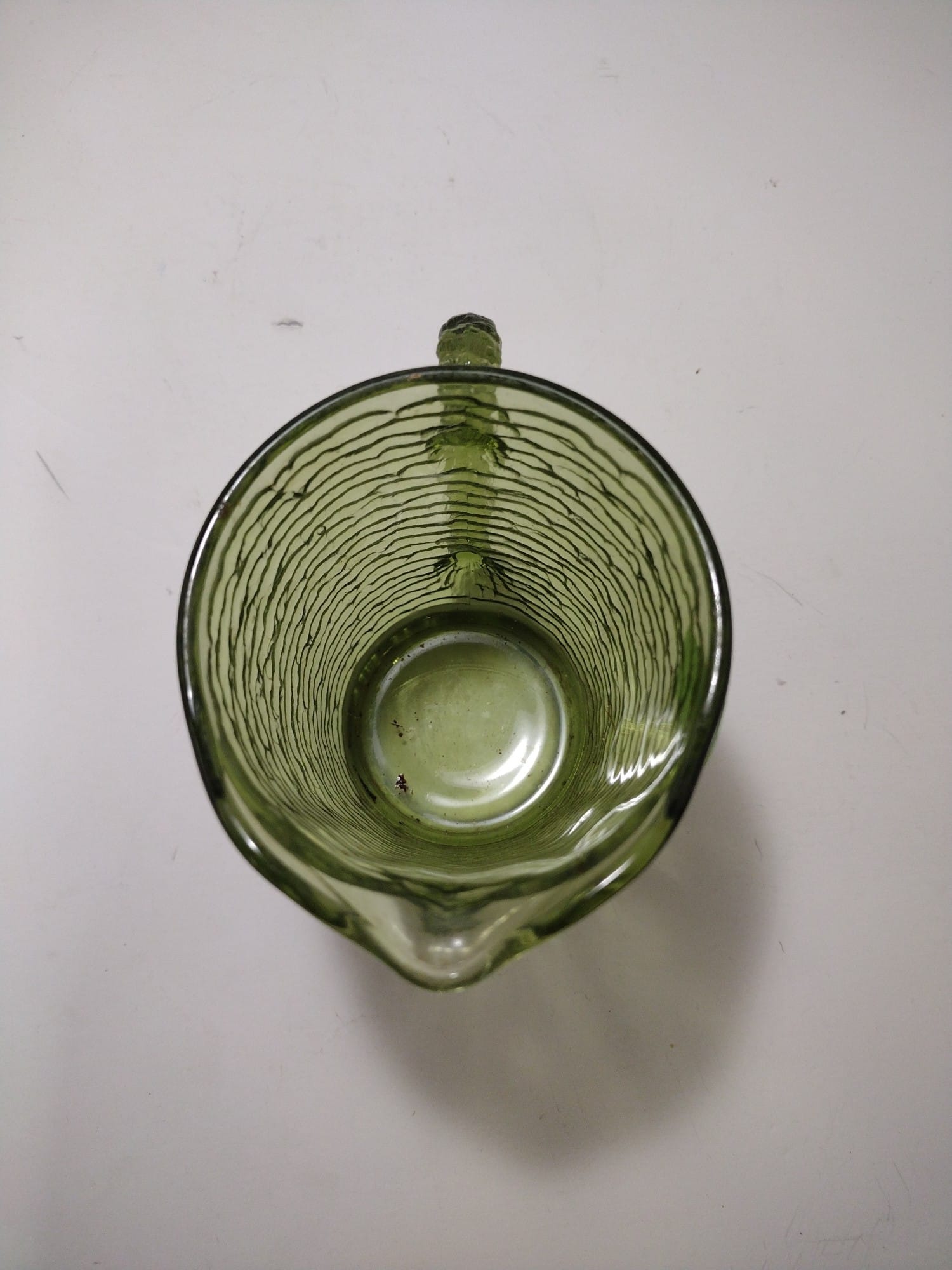 130 Small glass pitcher 4", diamond pattern dish 7"