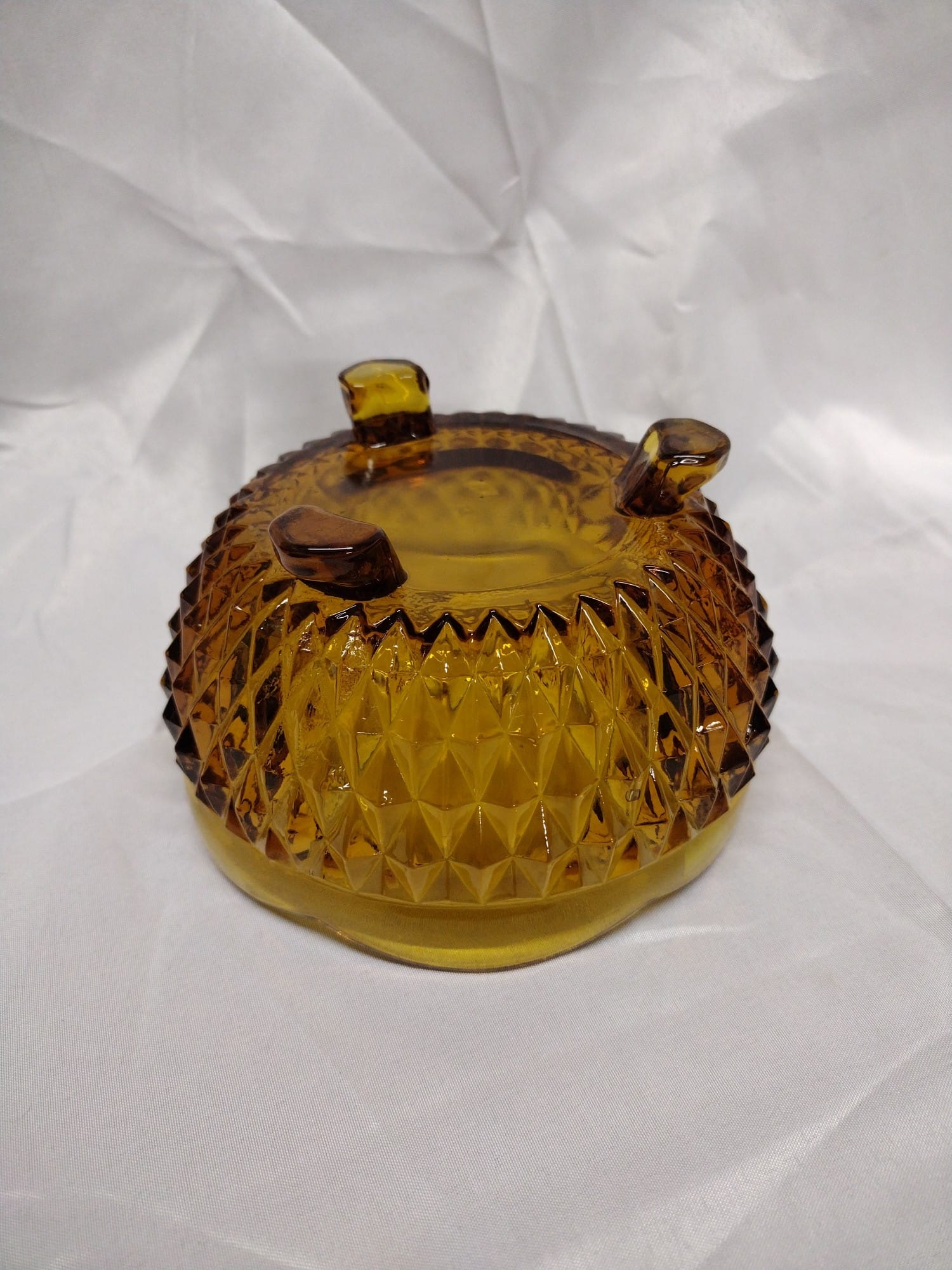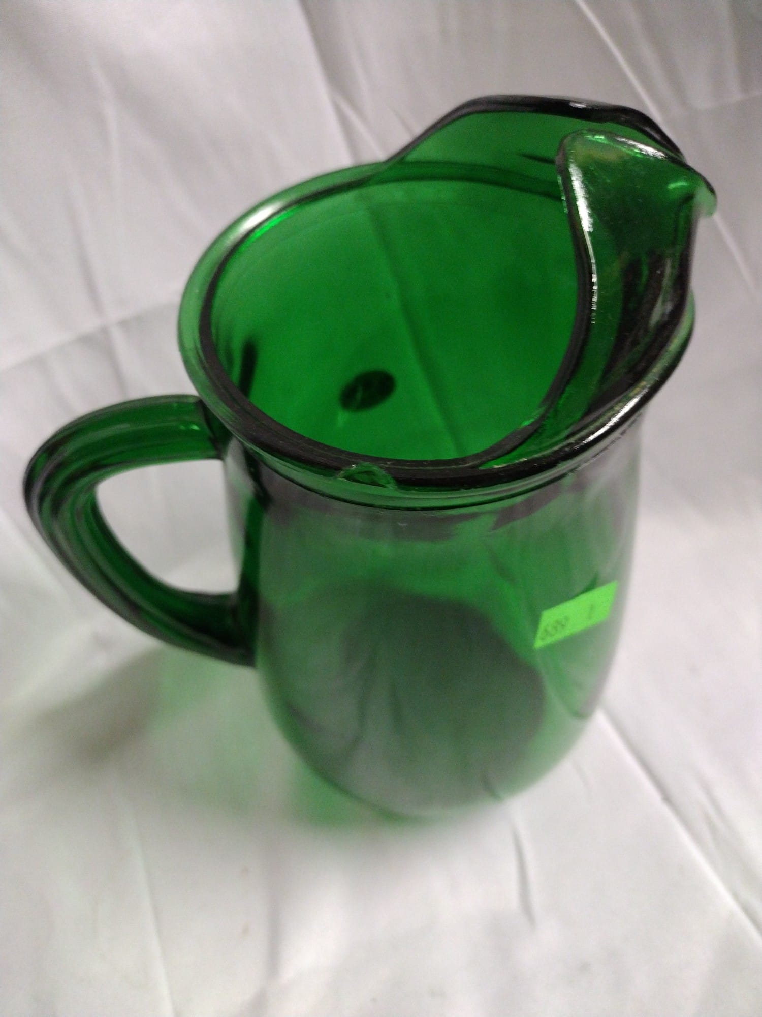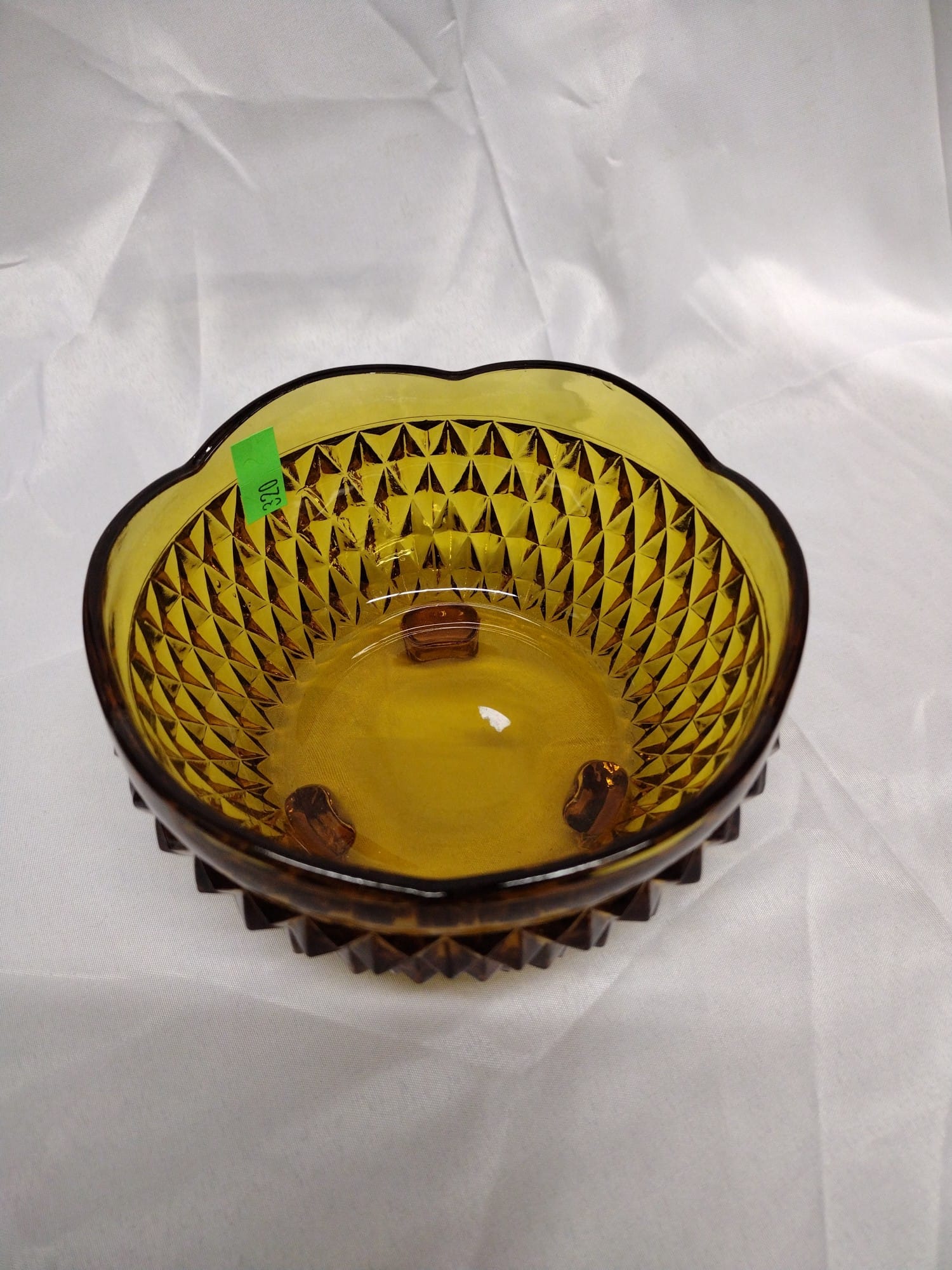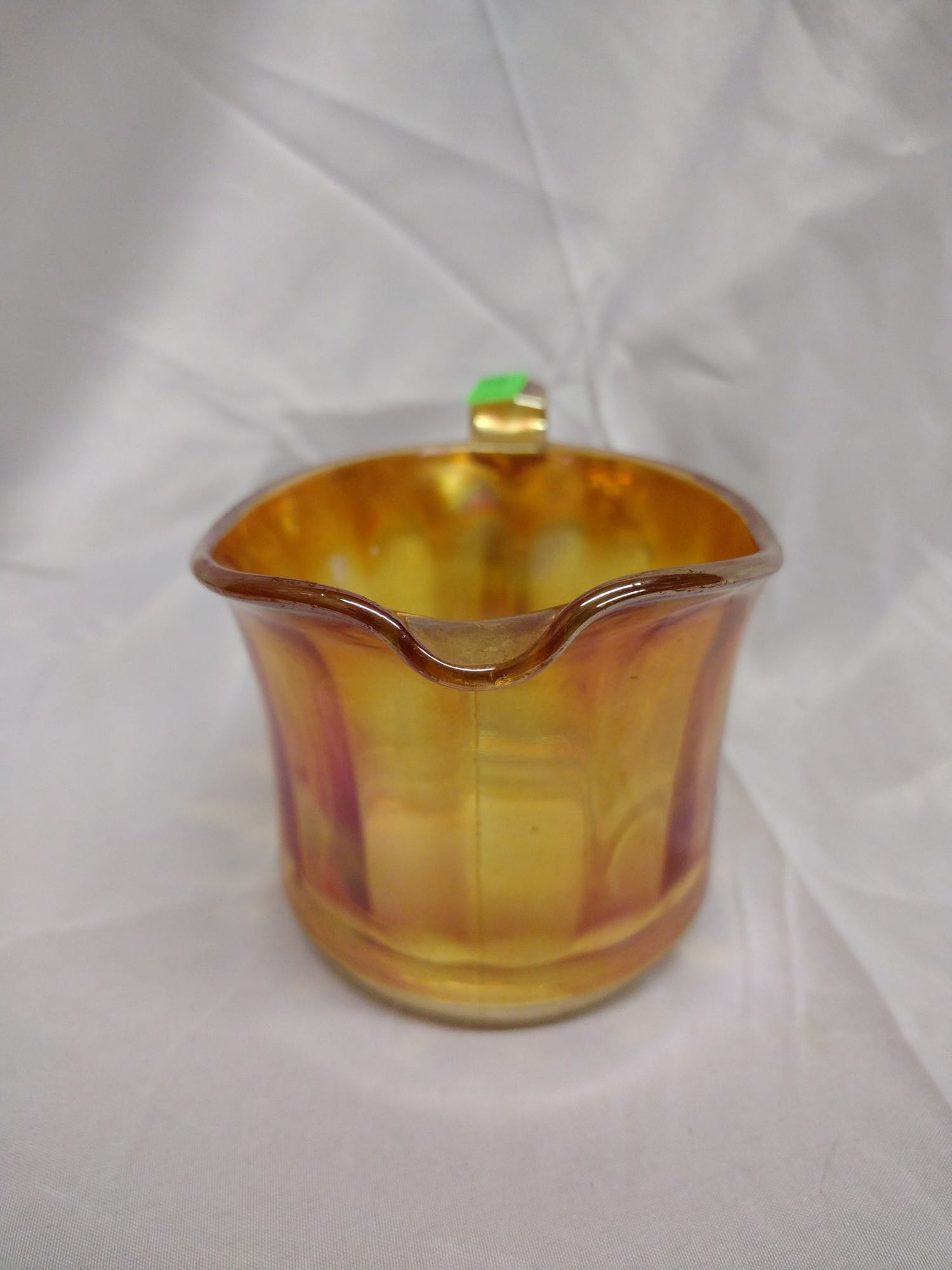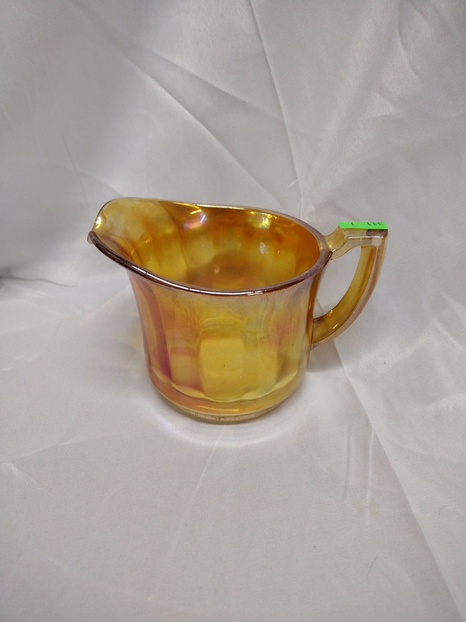 130 Small glass pitcher 4", diamond pattern dish 7"