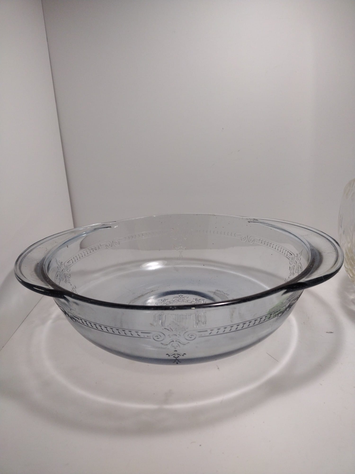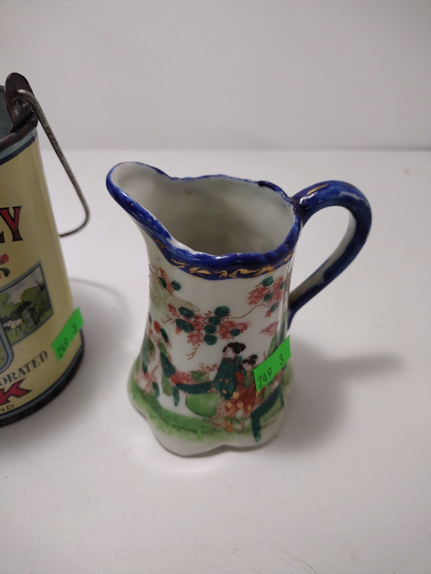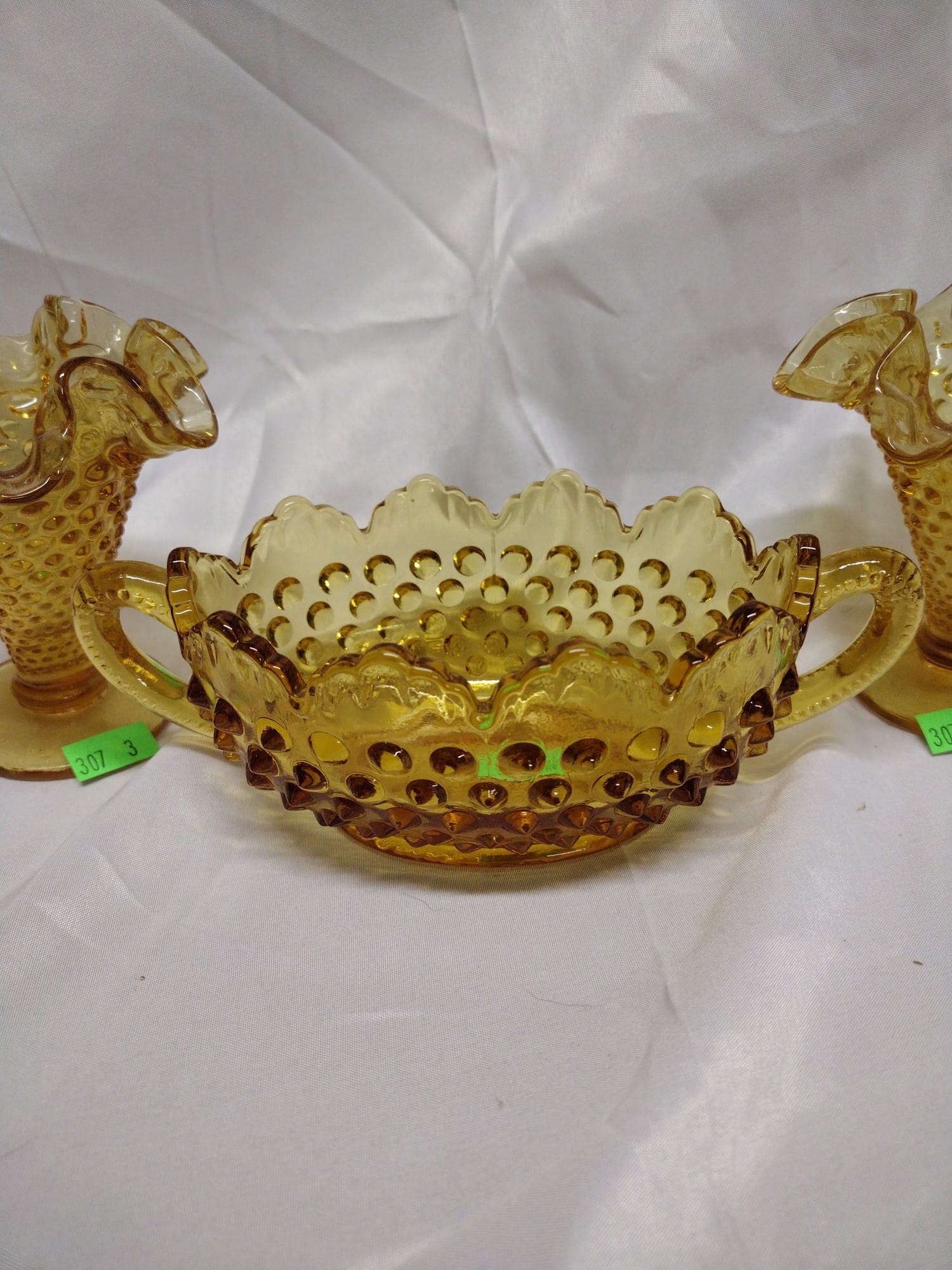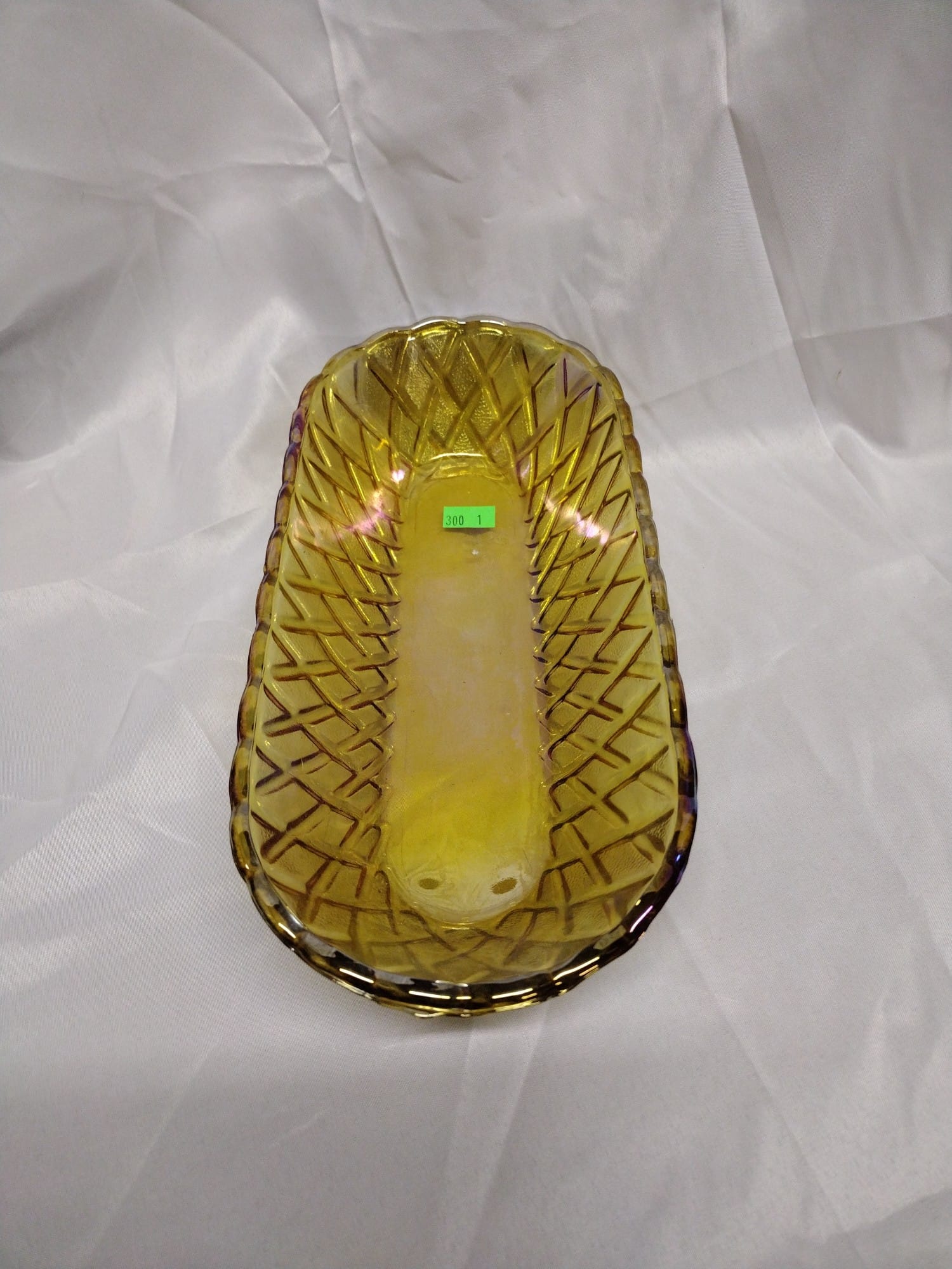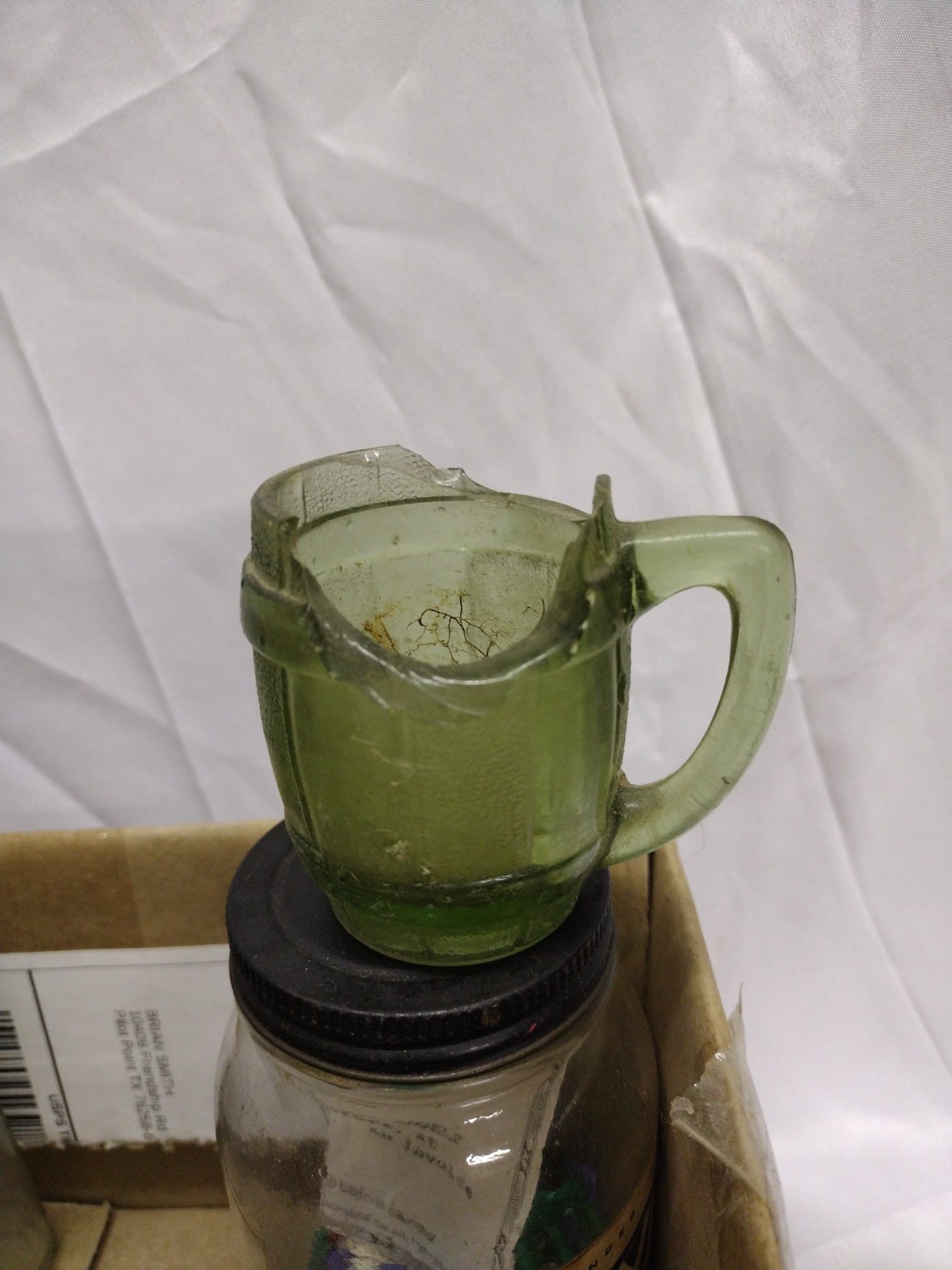 130 Small glass pitcher 4", diamond pattern dish 7"