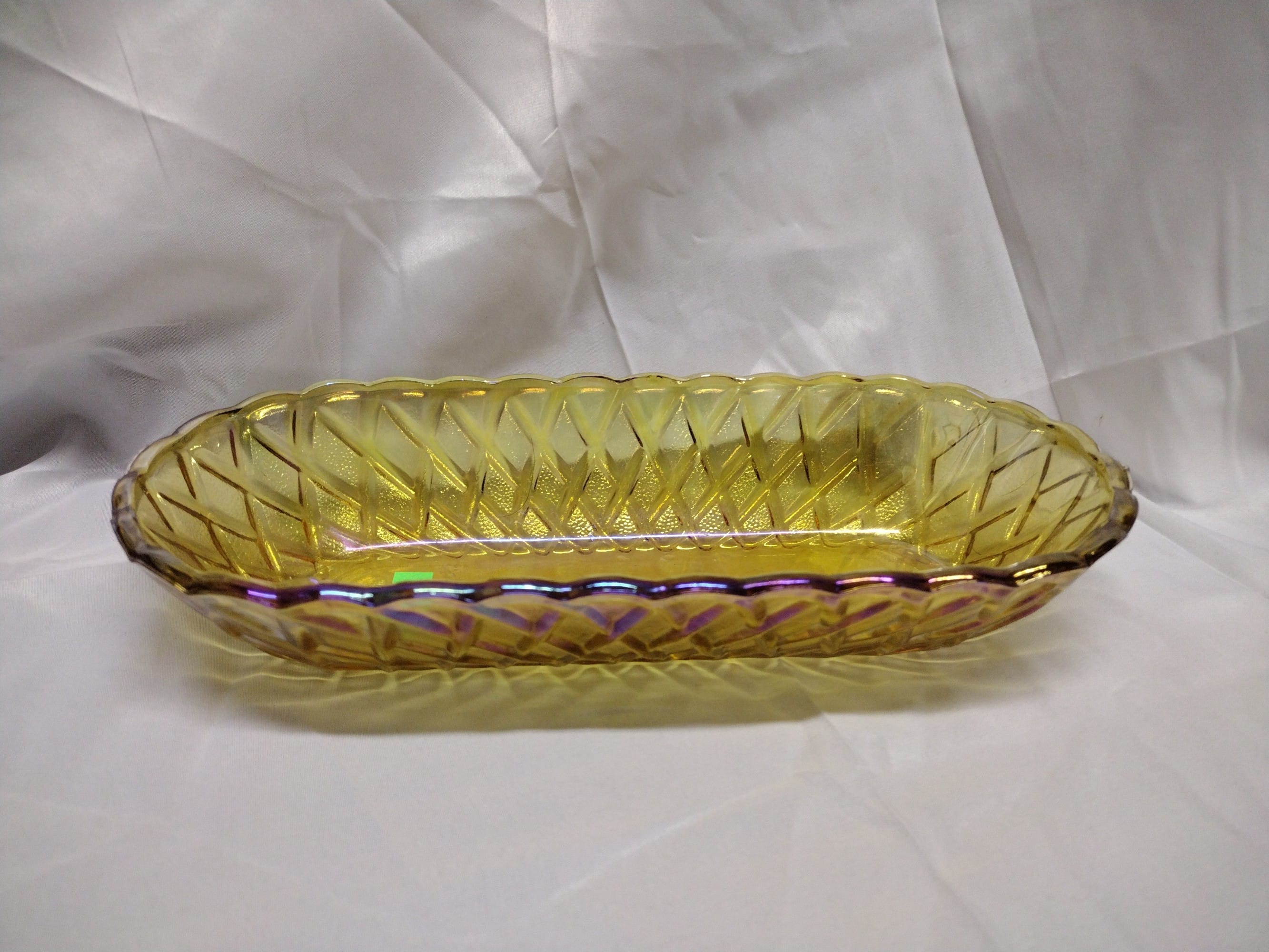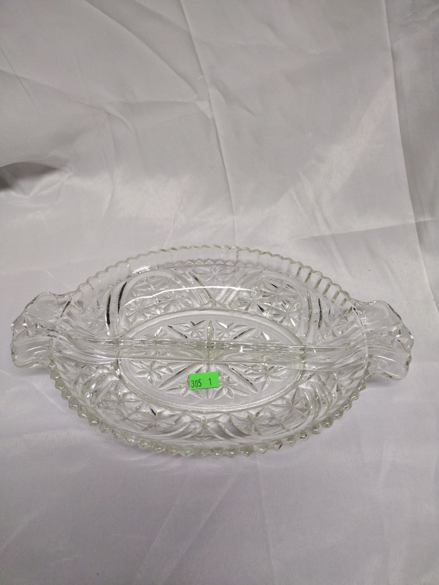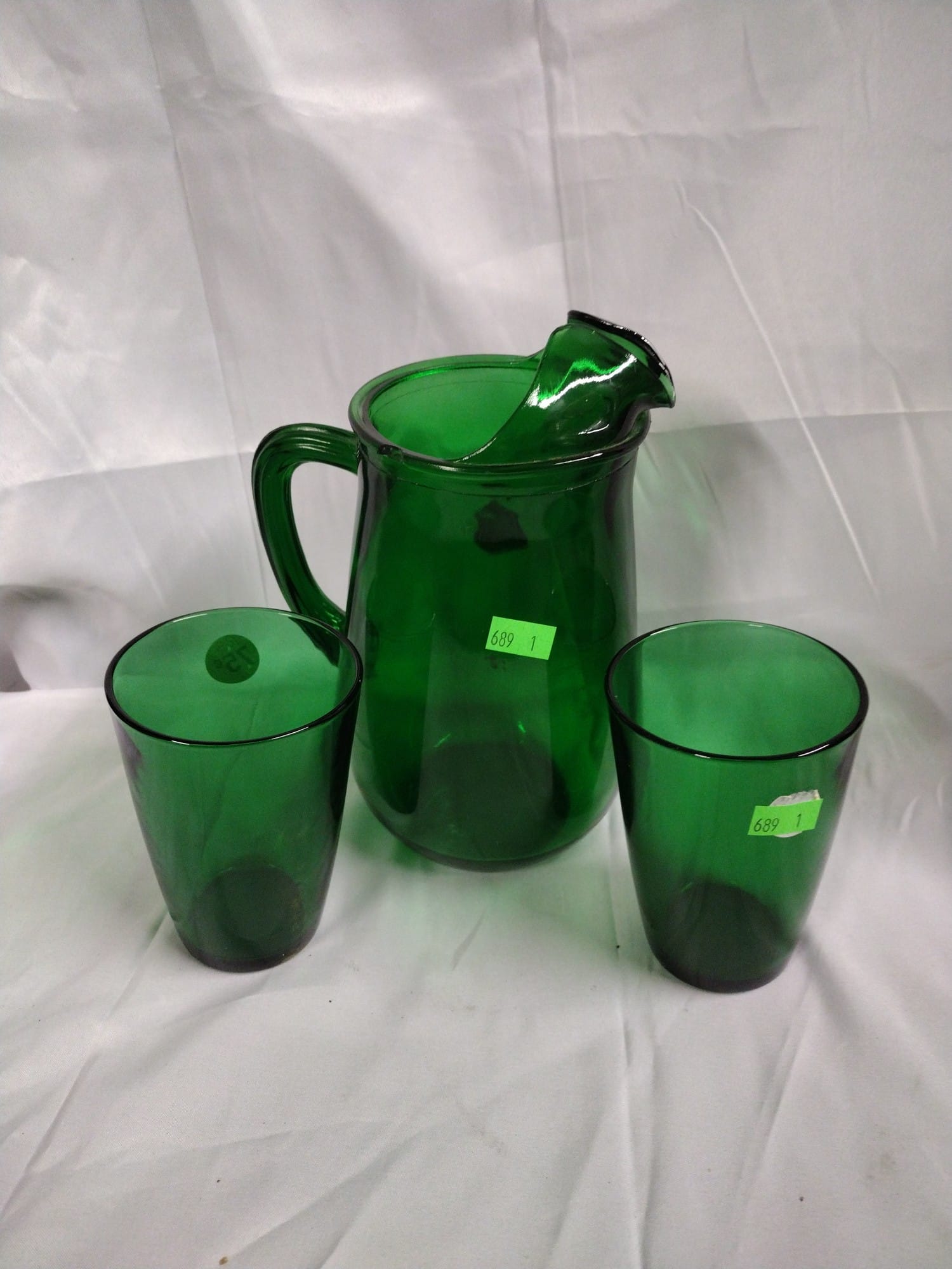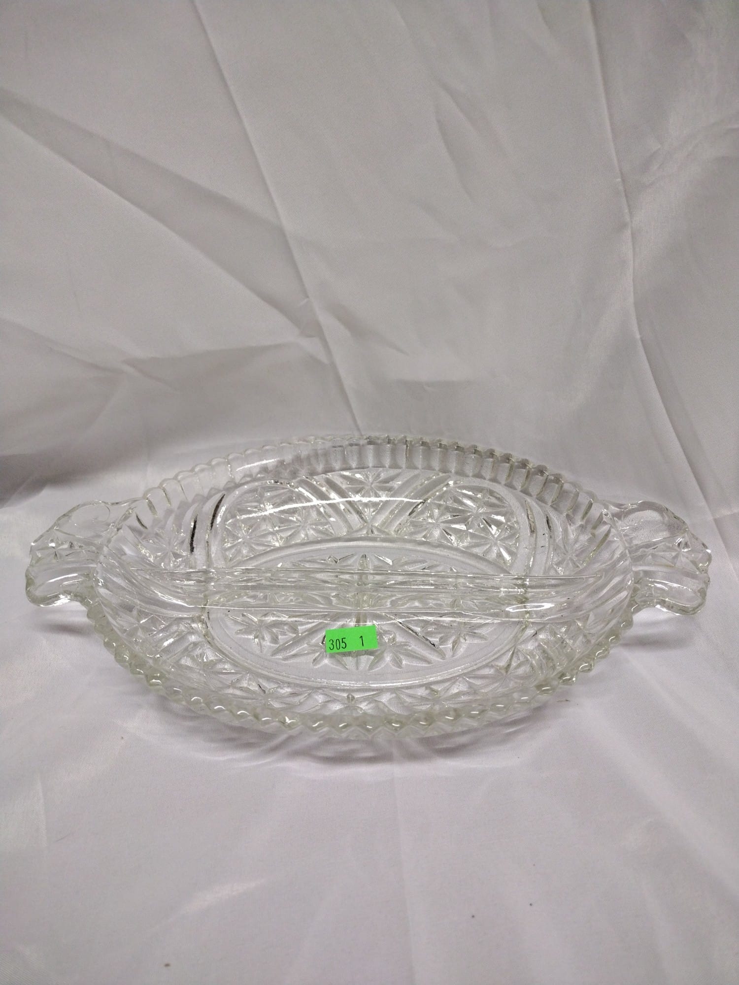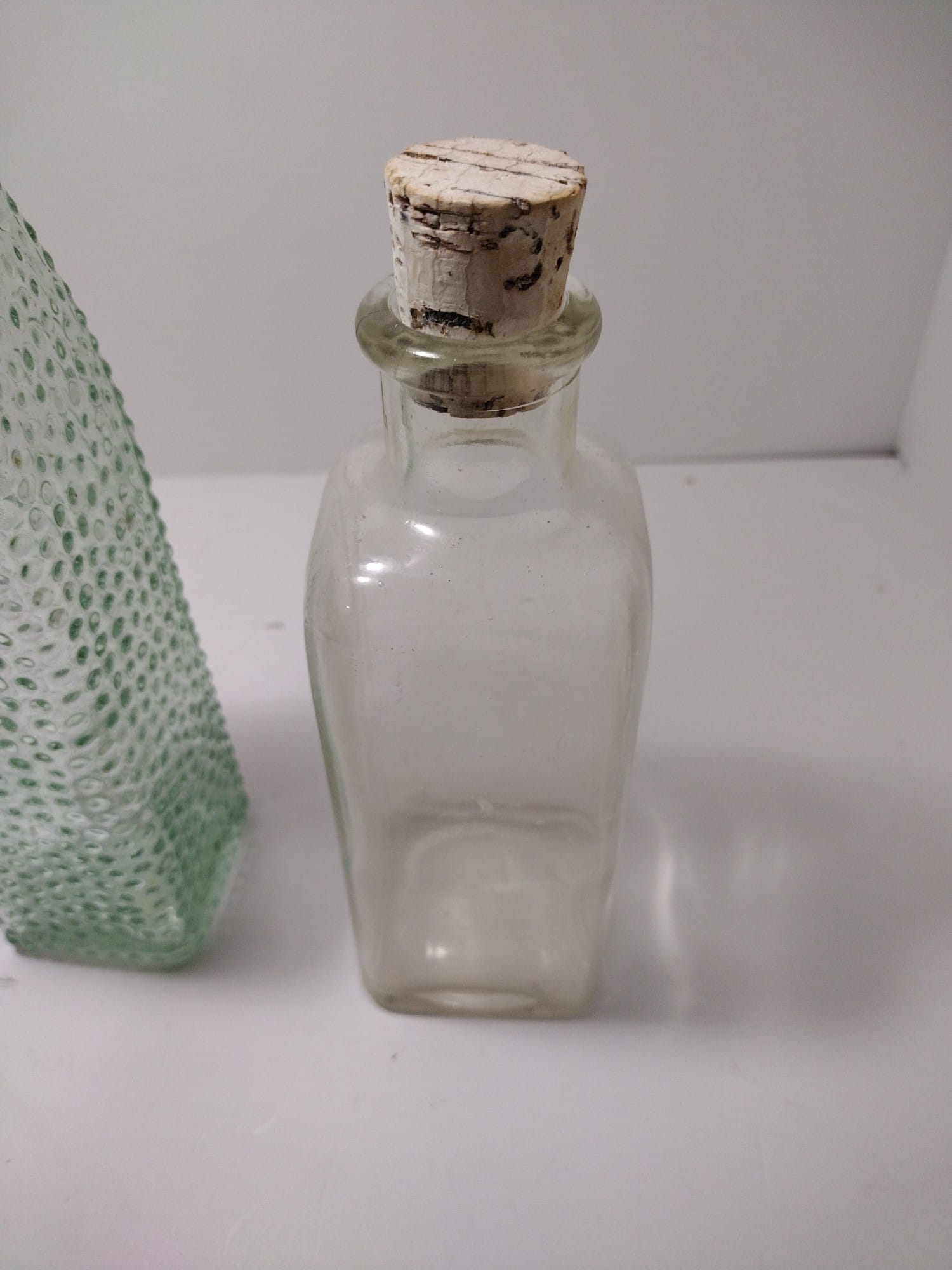 130 Small glass pitcher 4", diamond pattern dish 7"