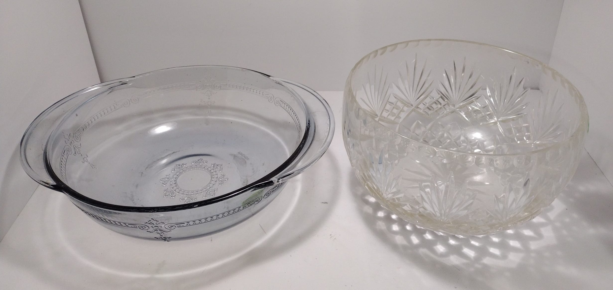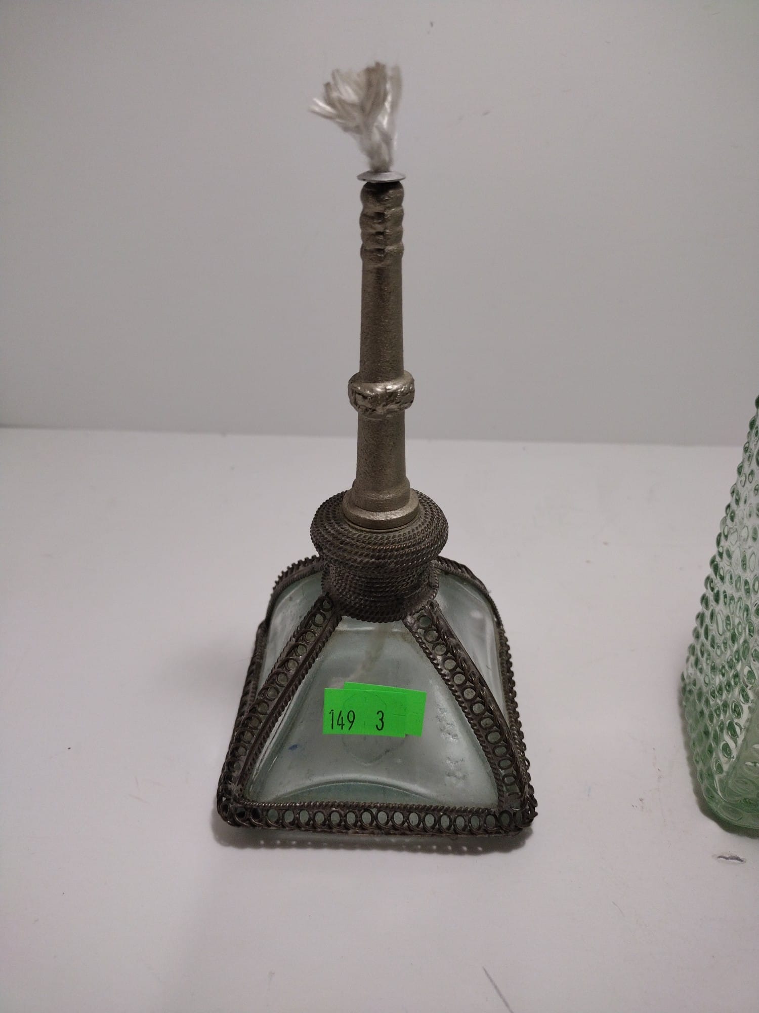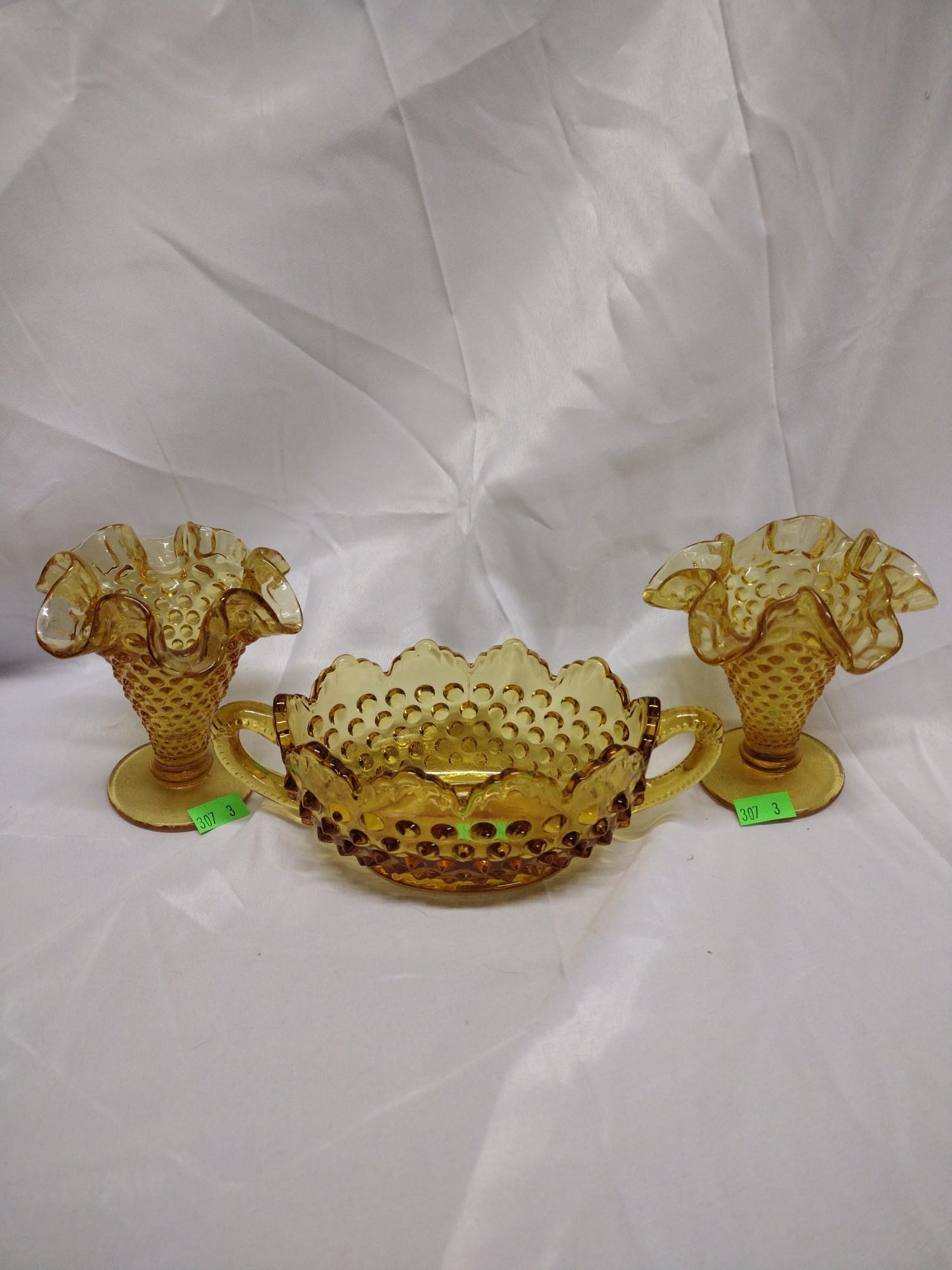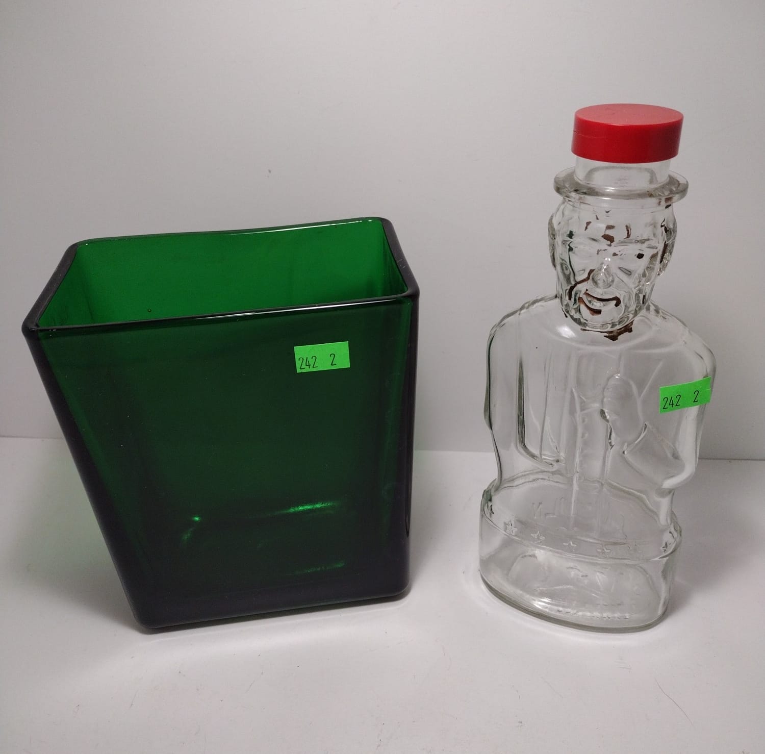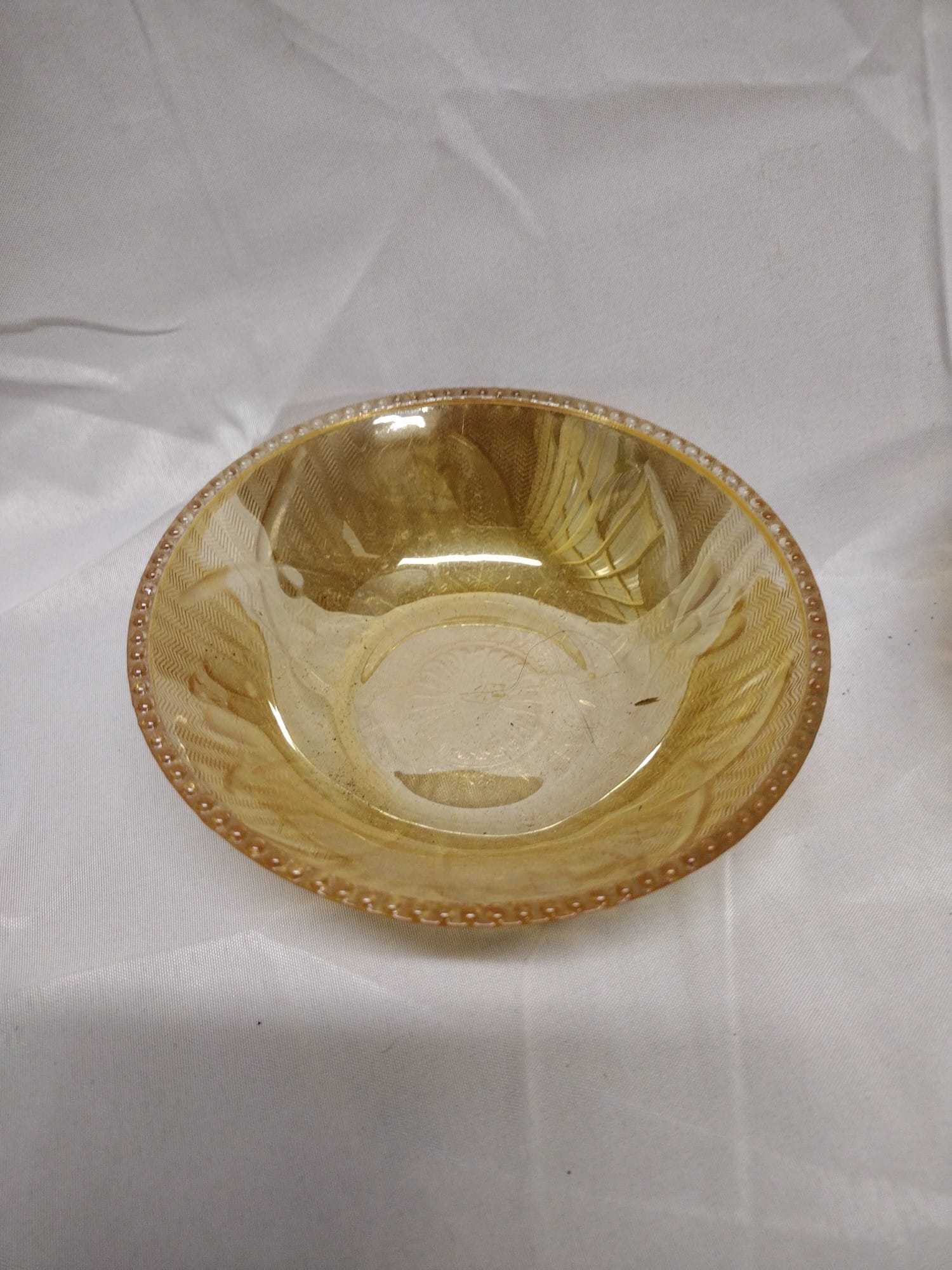 130 Small glass pitcher 4", diamond pattern dish 7"