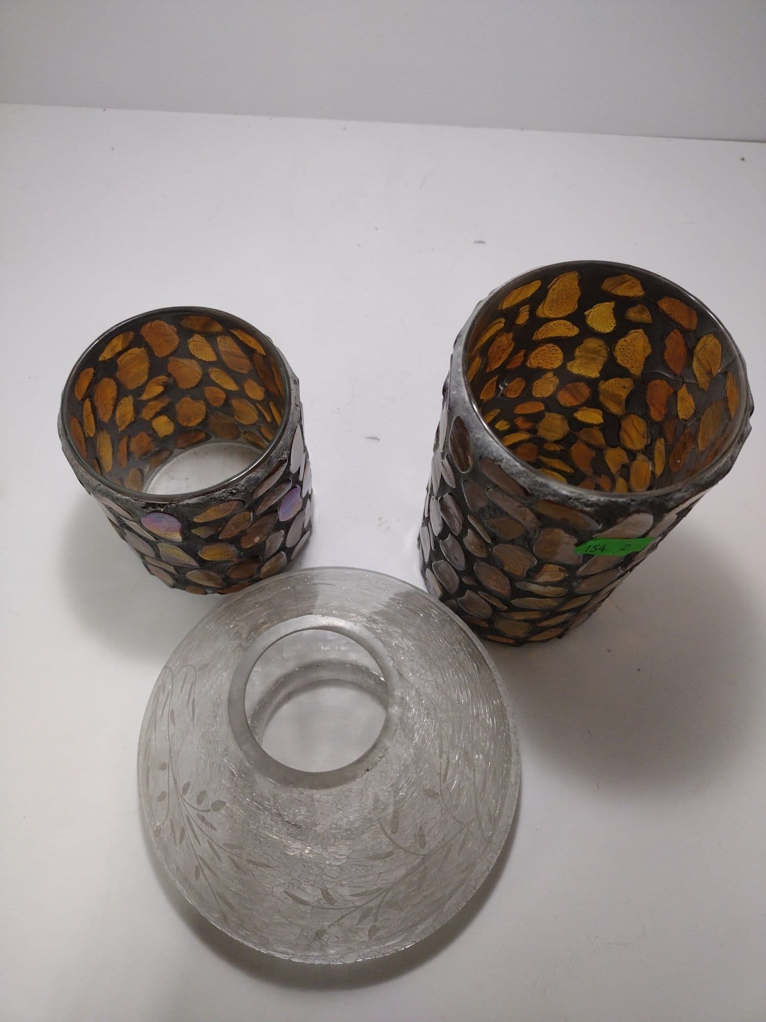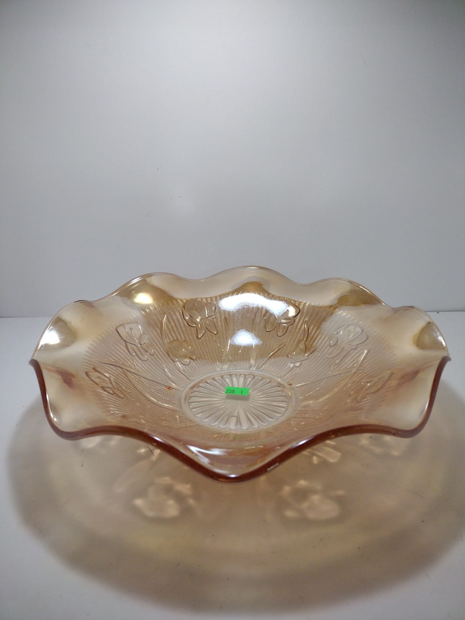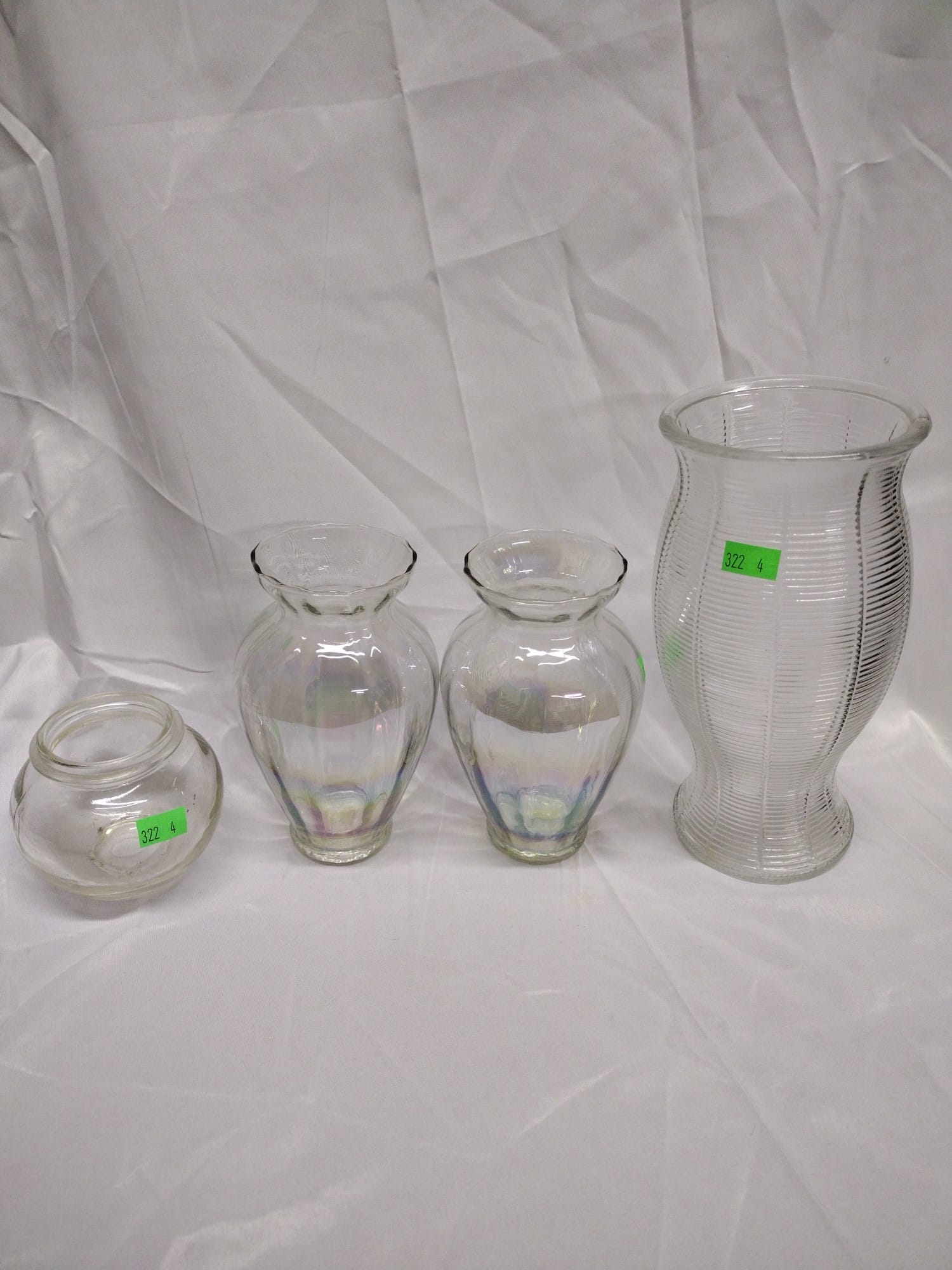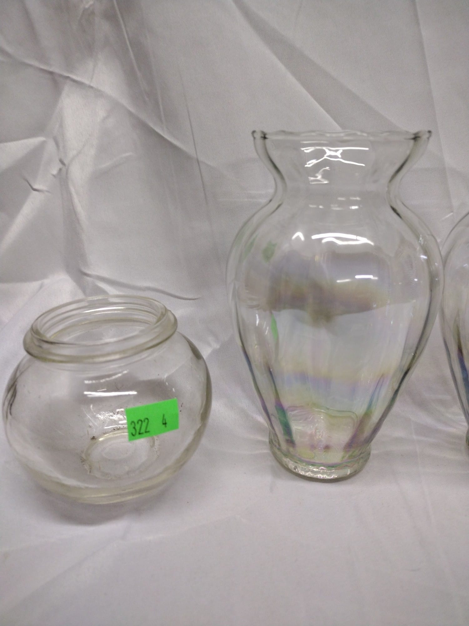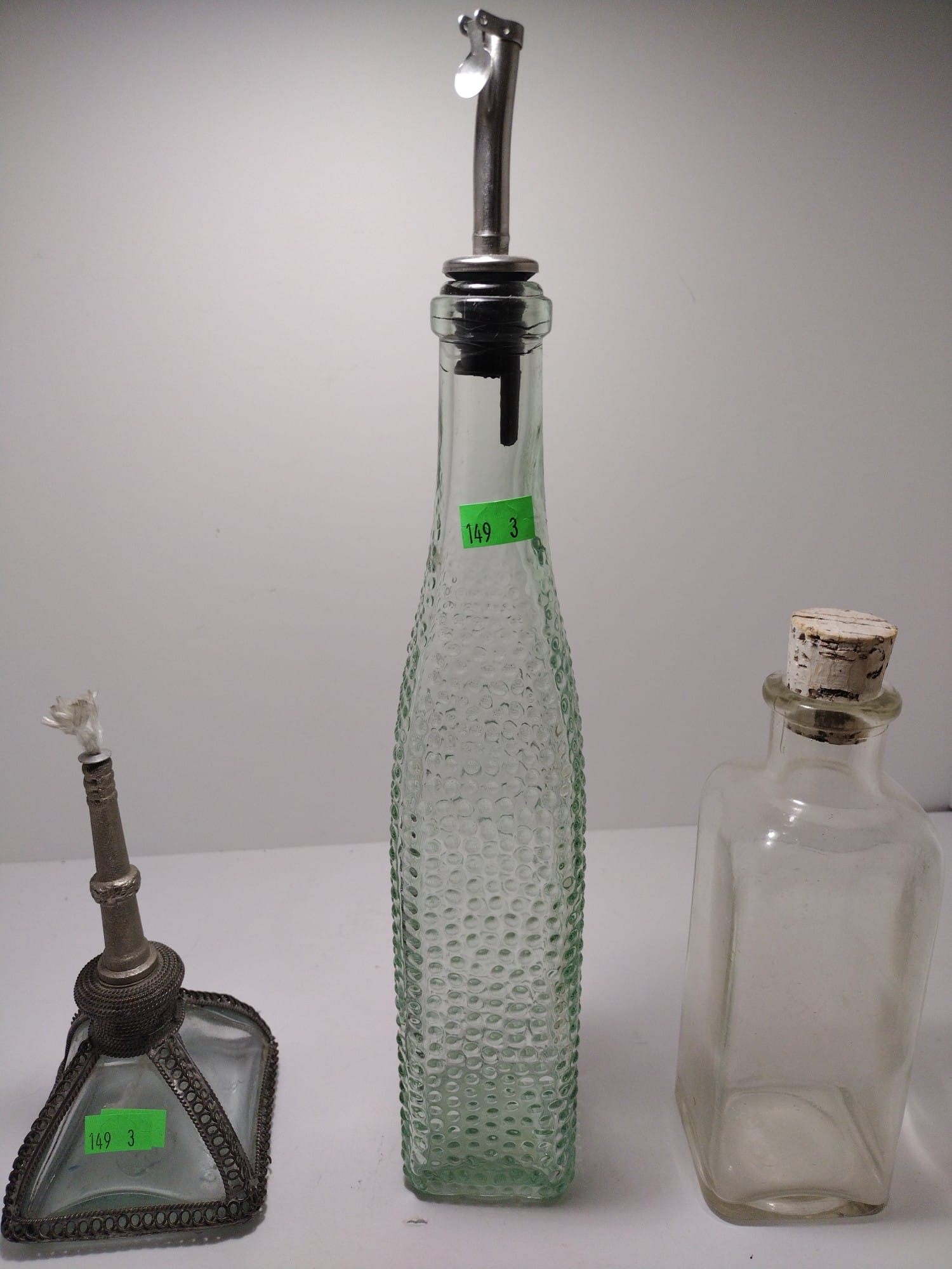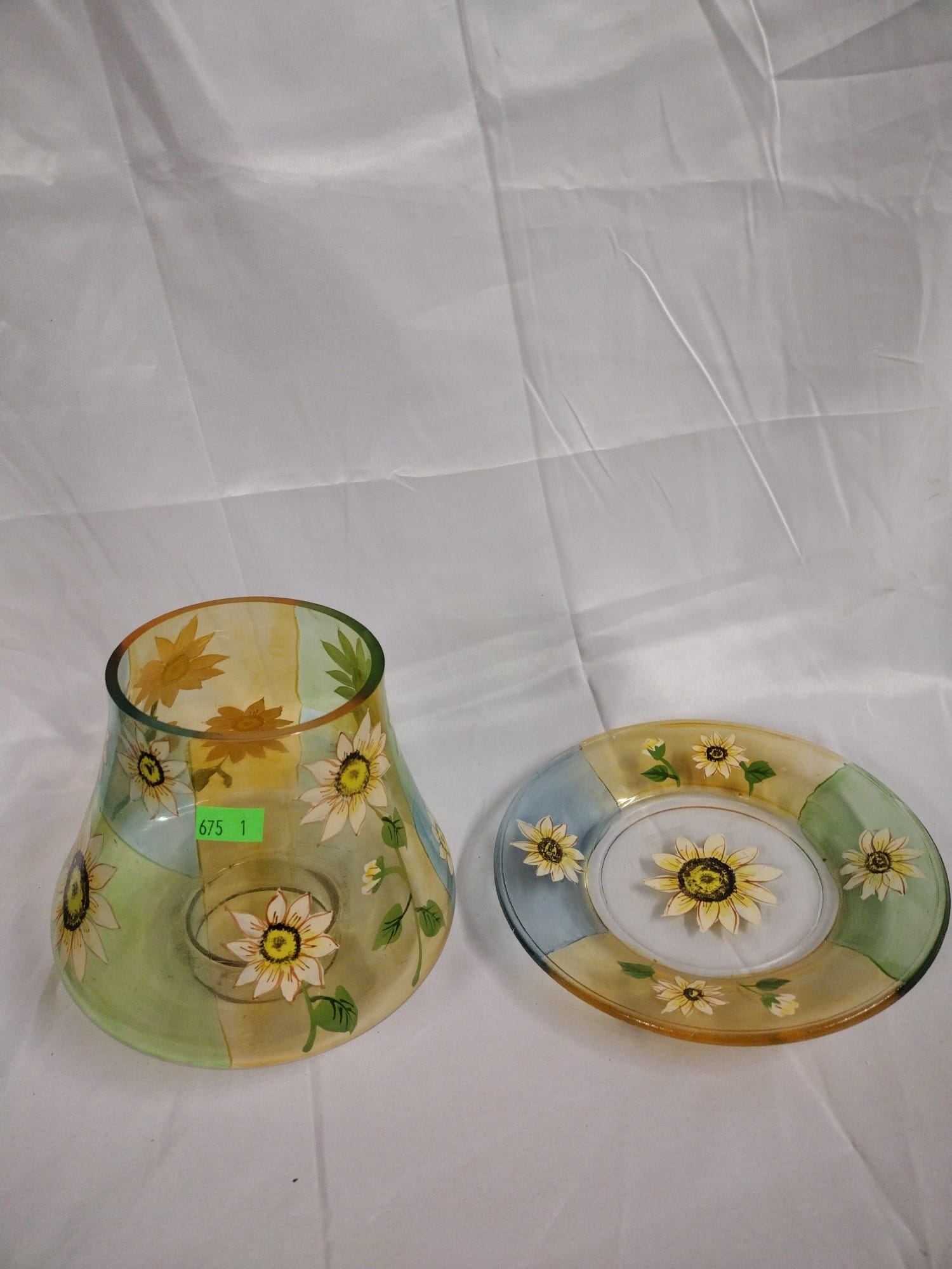 130 Small glass pitcher 4", diamond pattern dish 7"