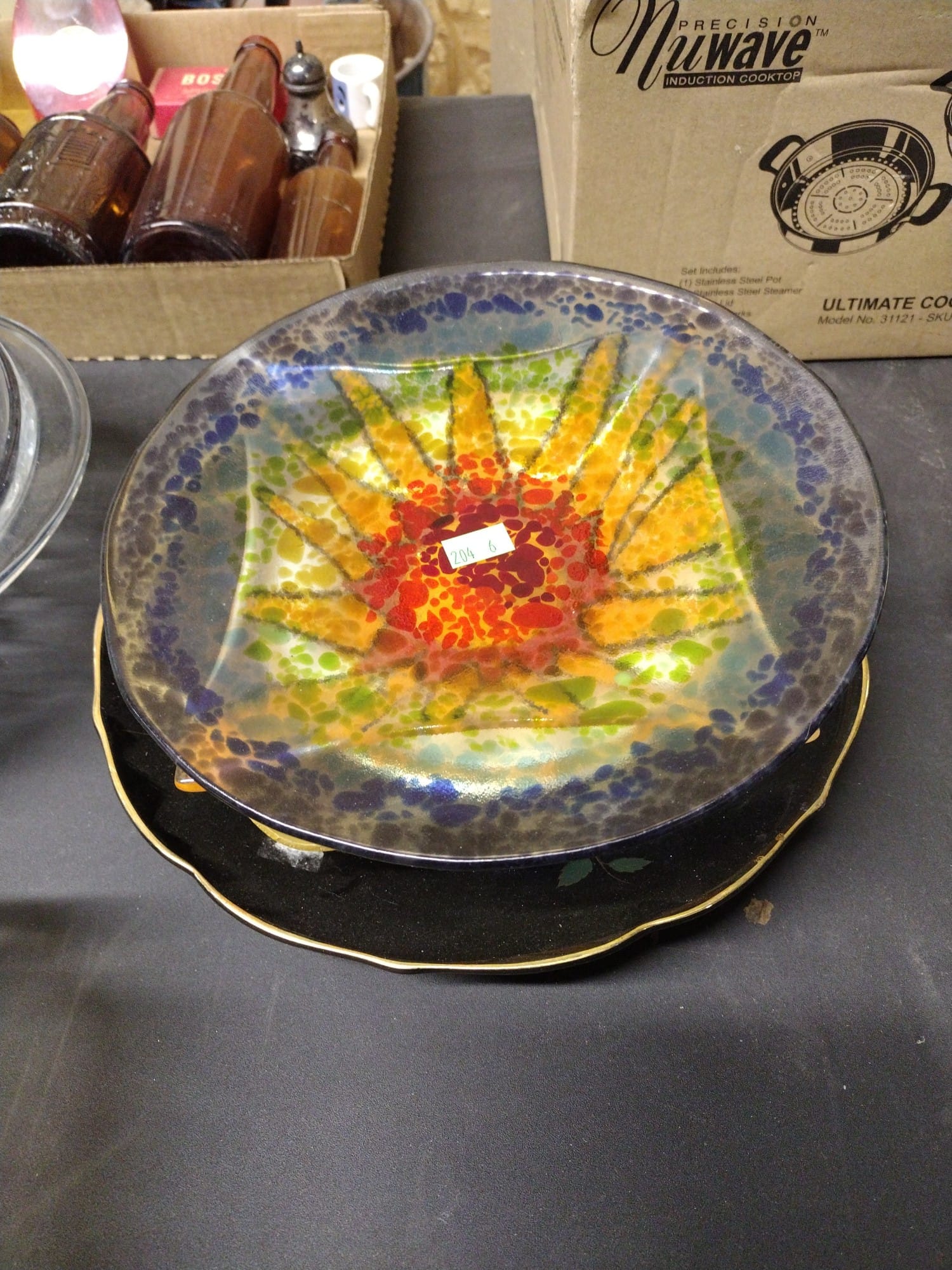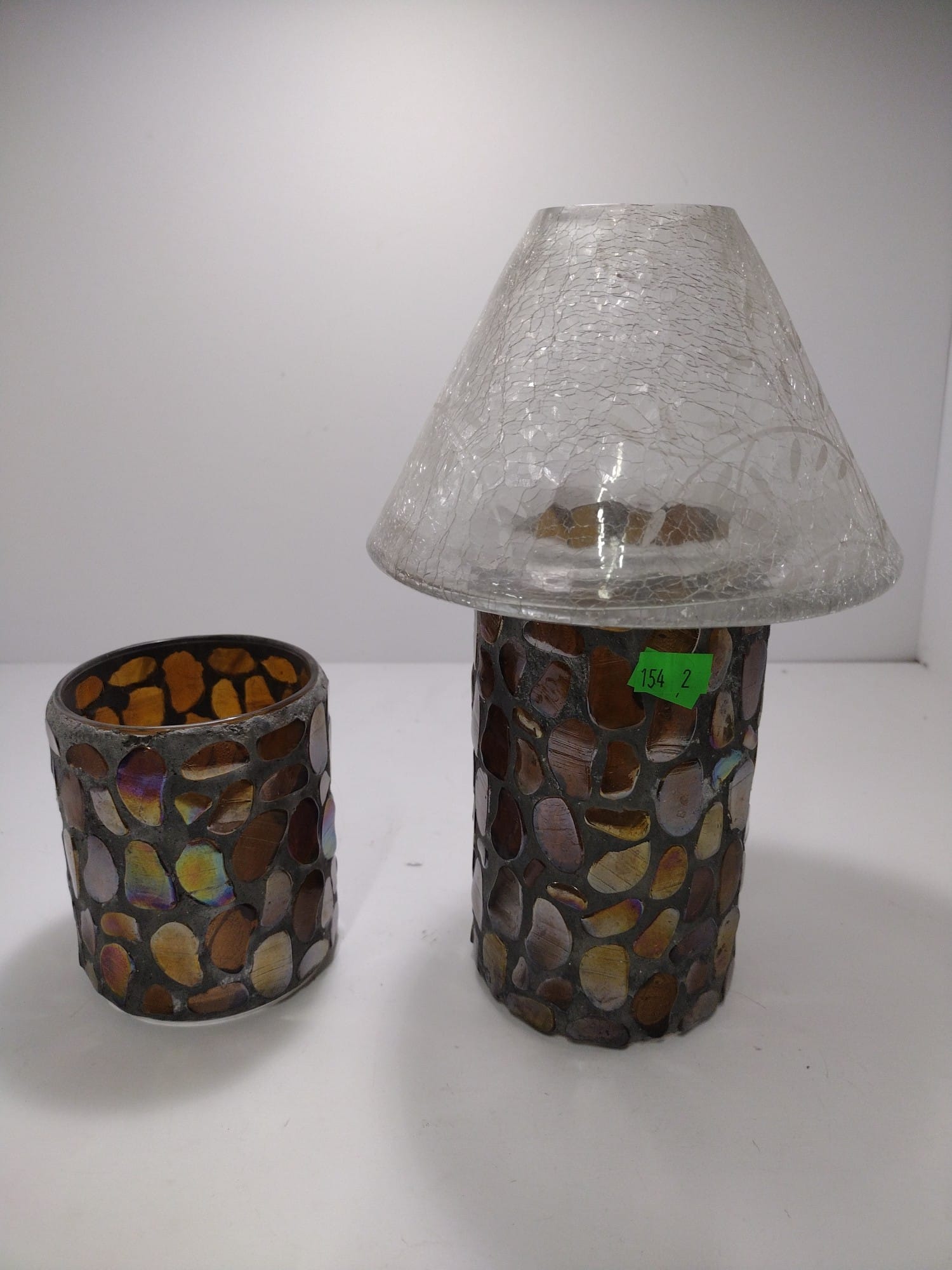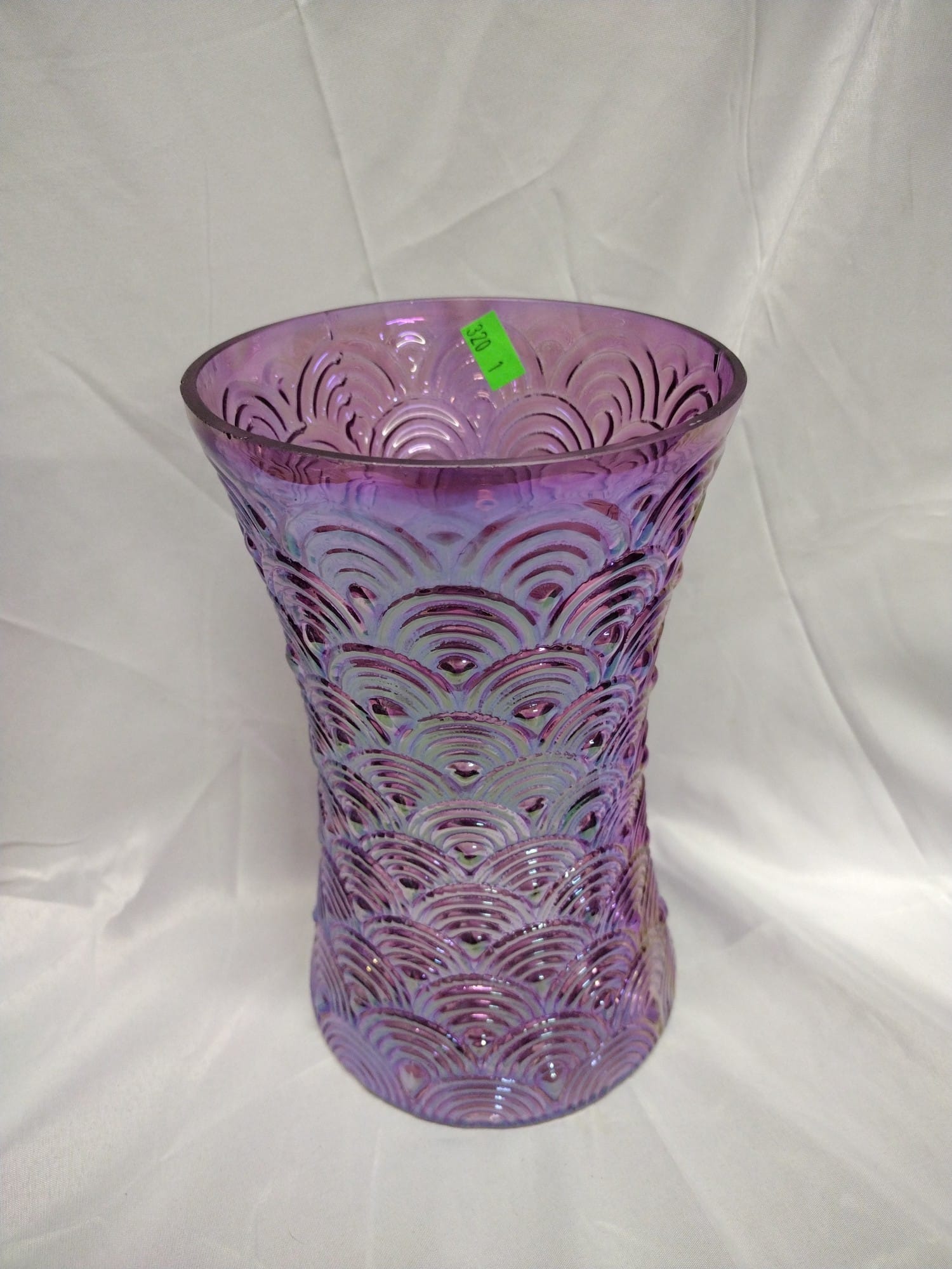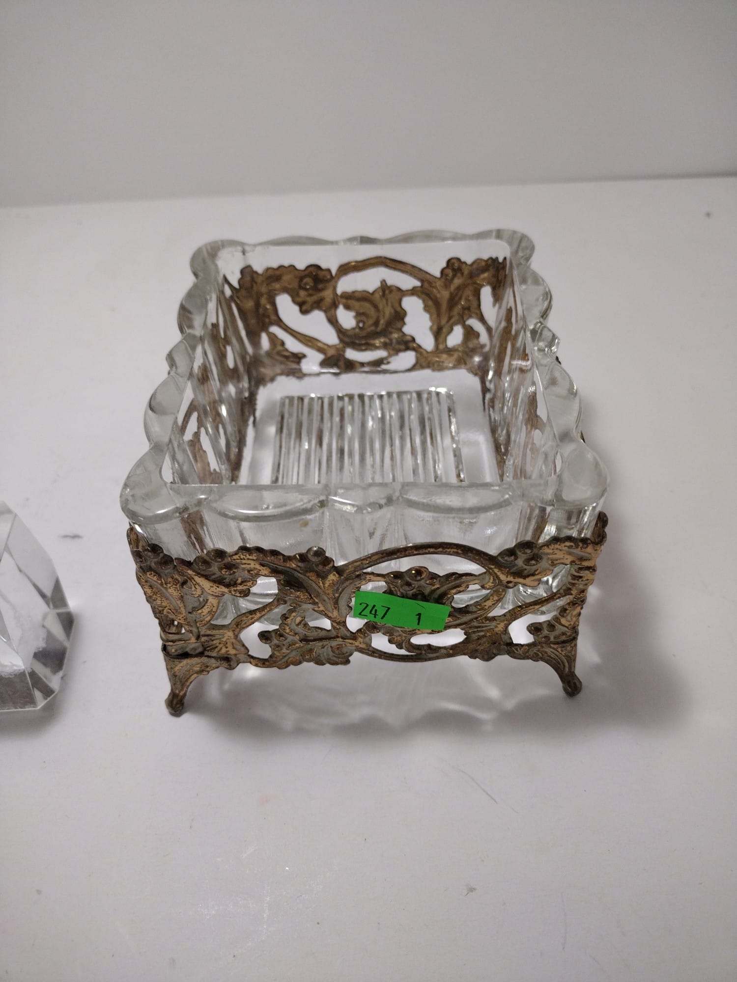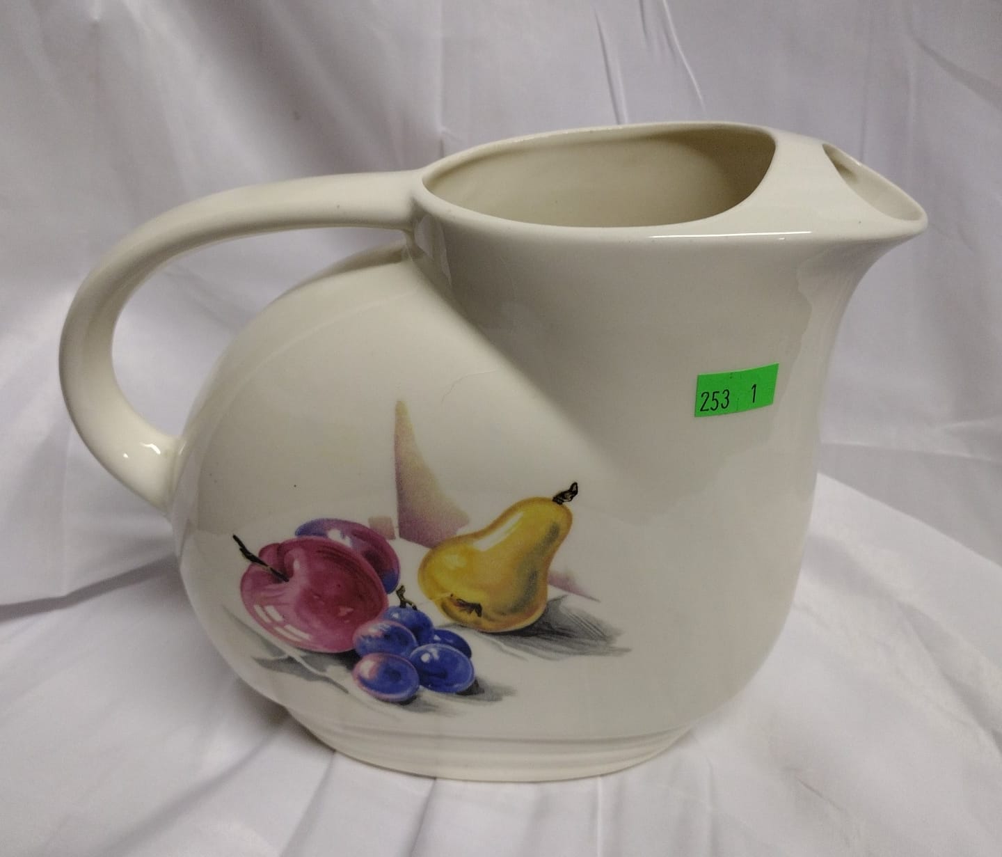 130 Small glass pitcher 4", diamond pattern dish 7"