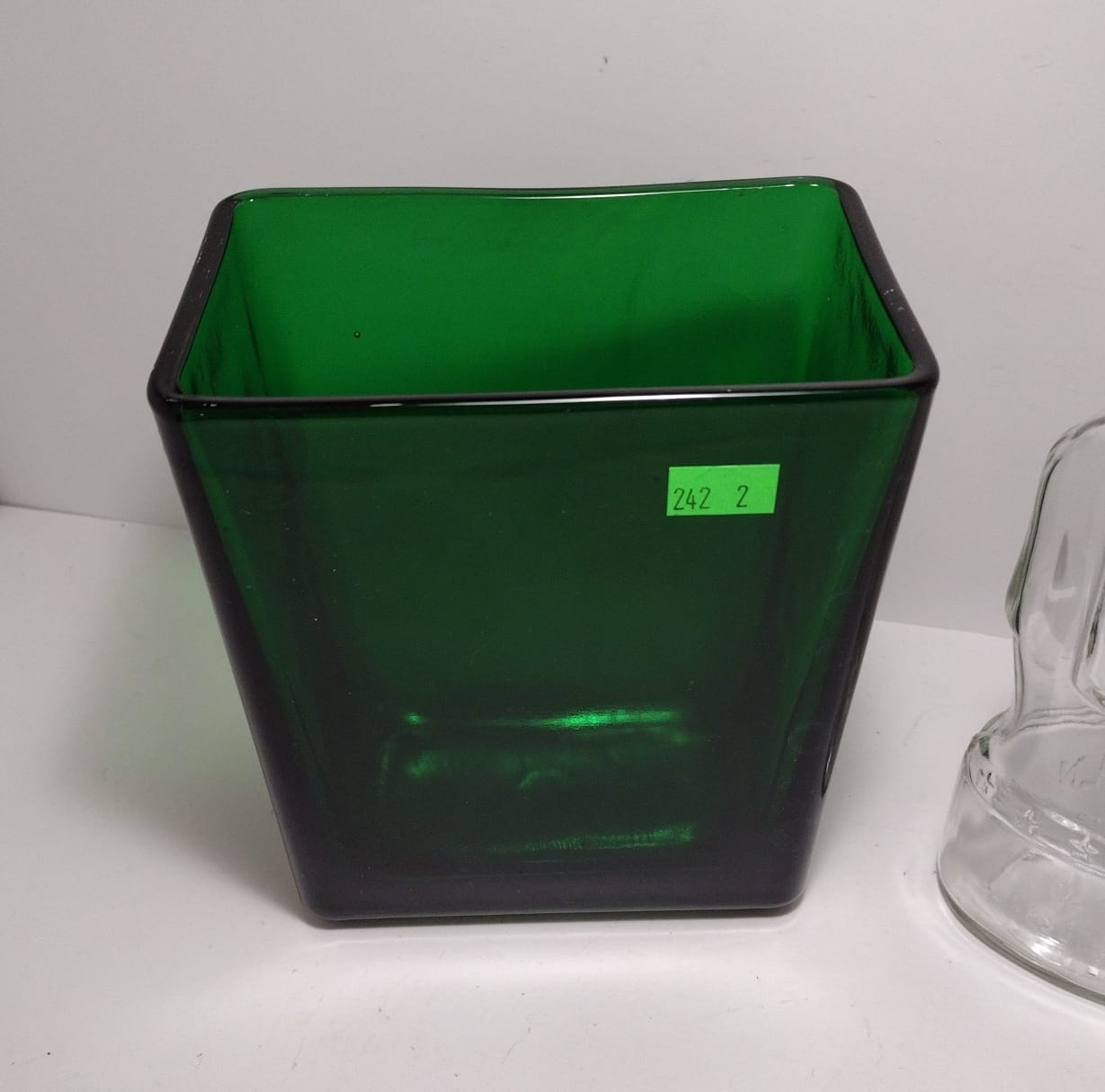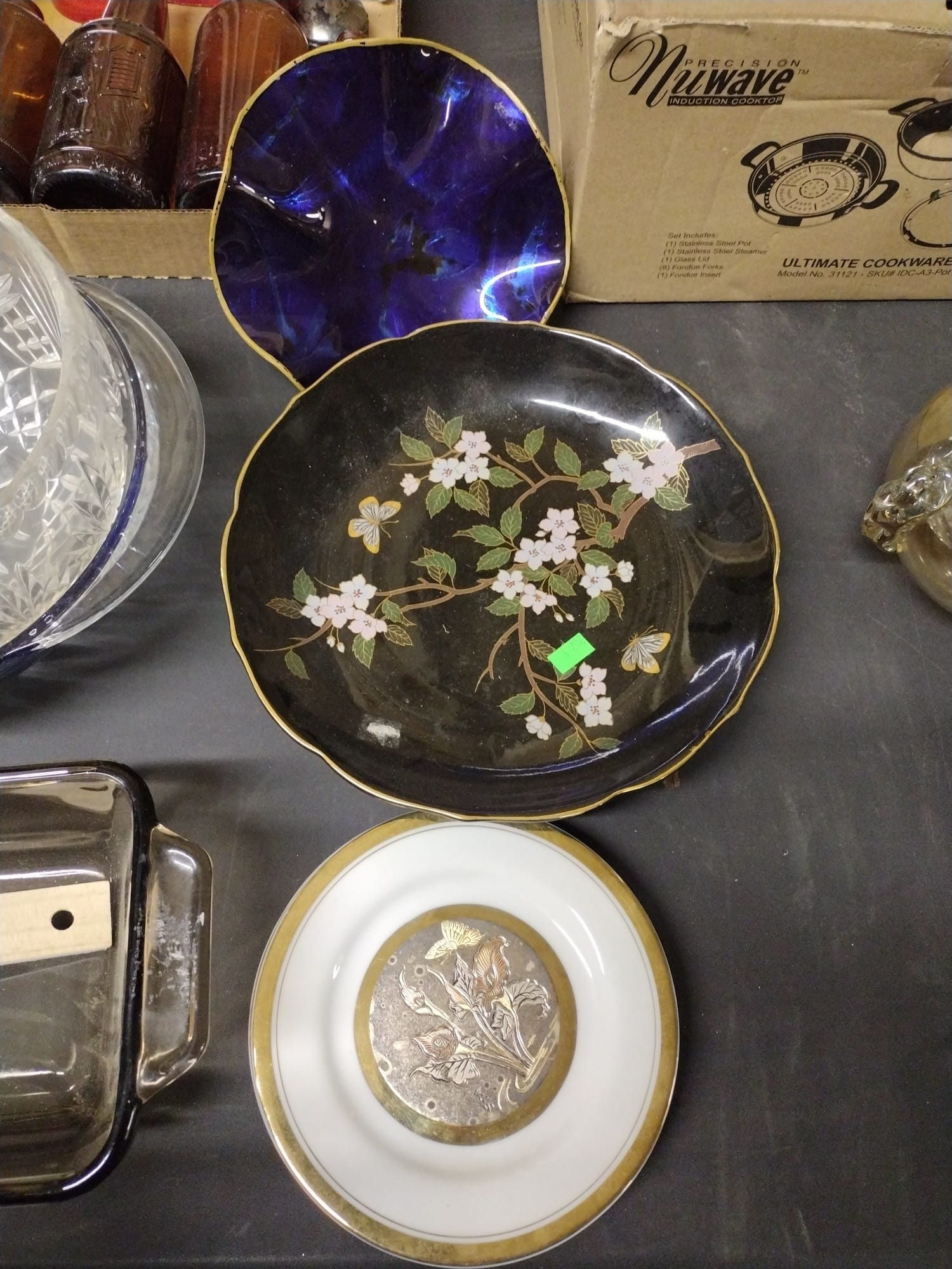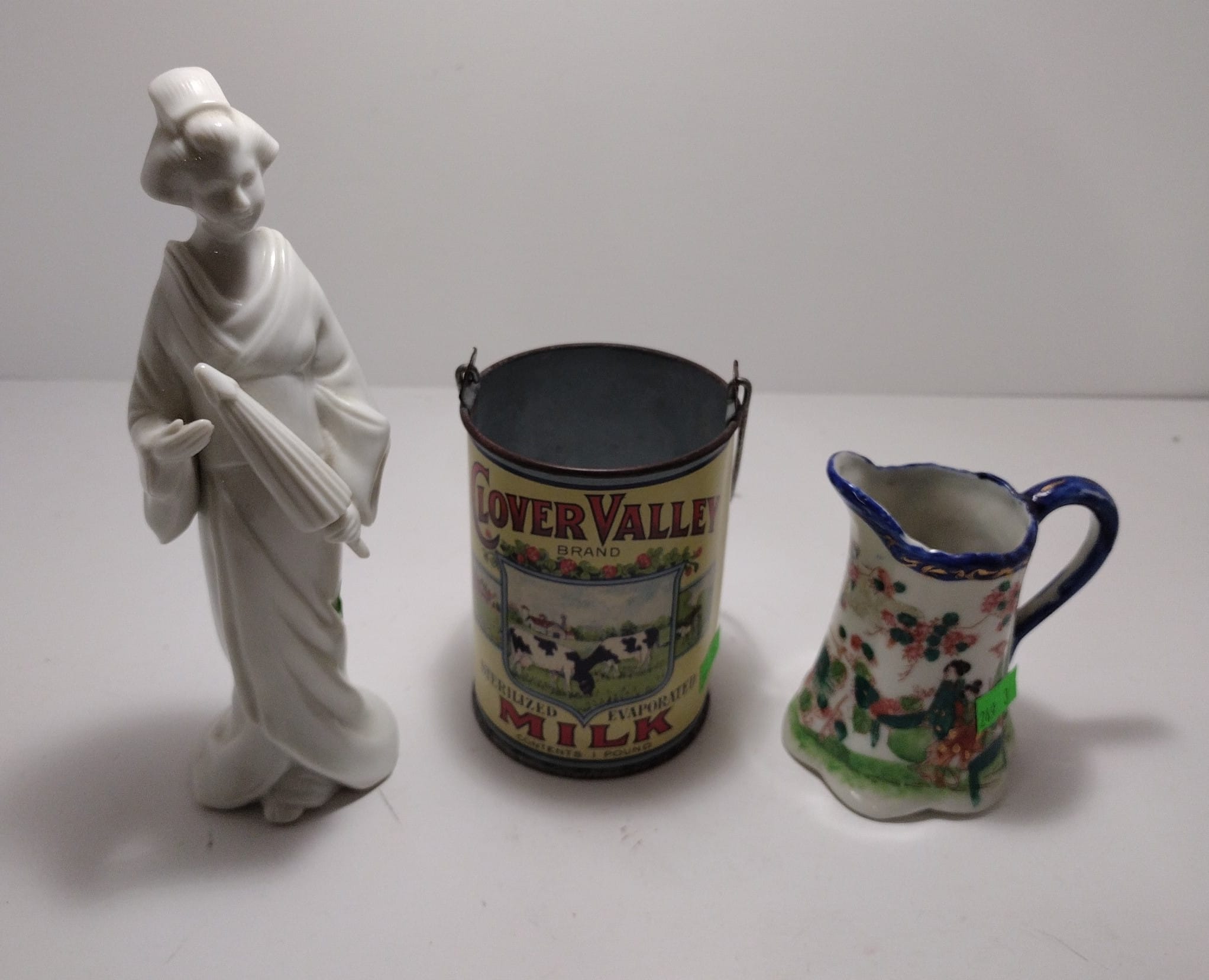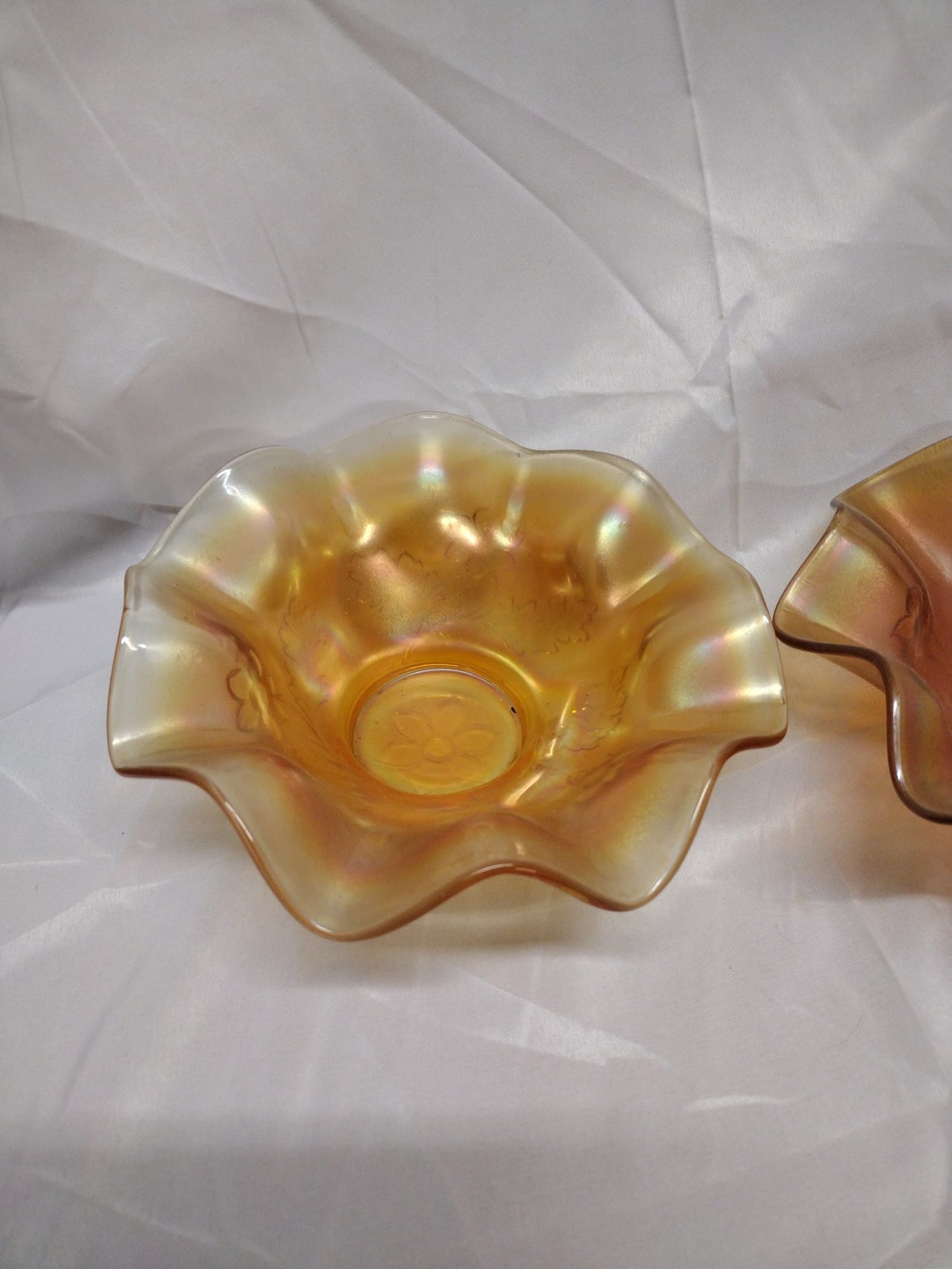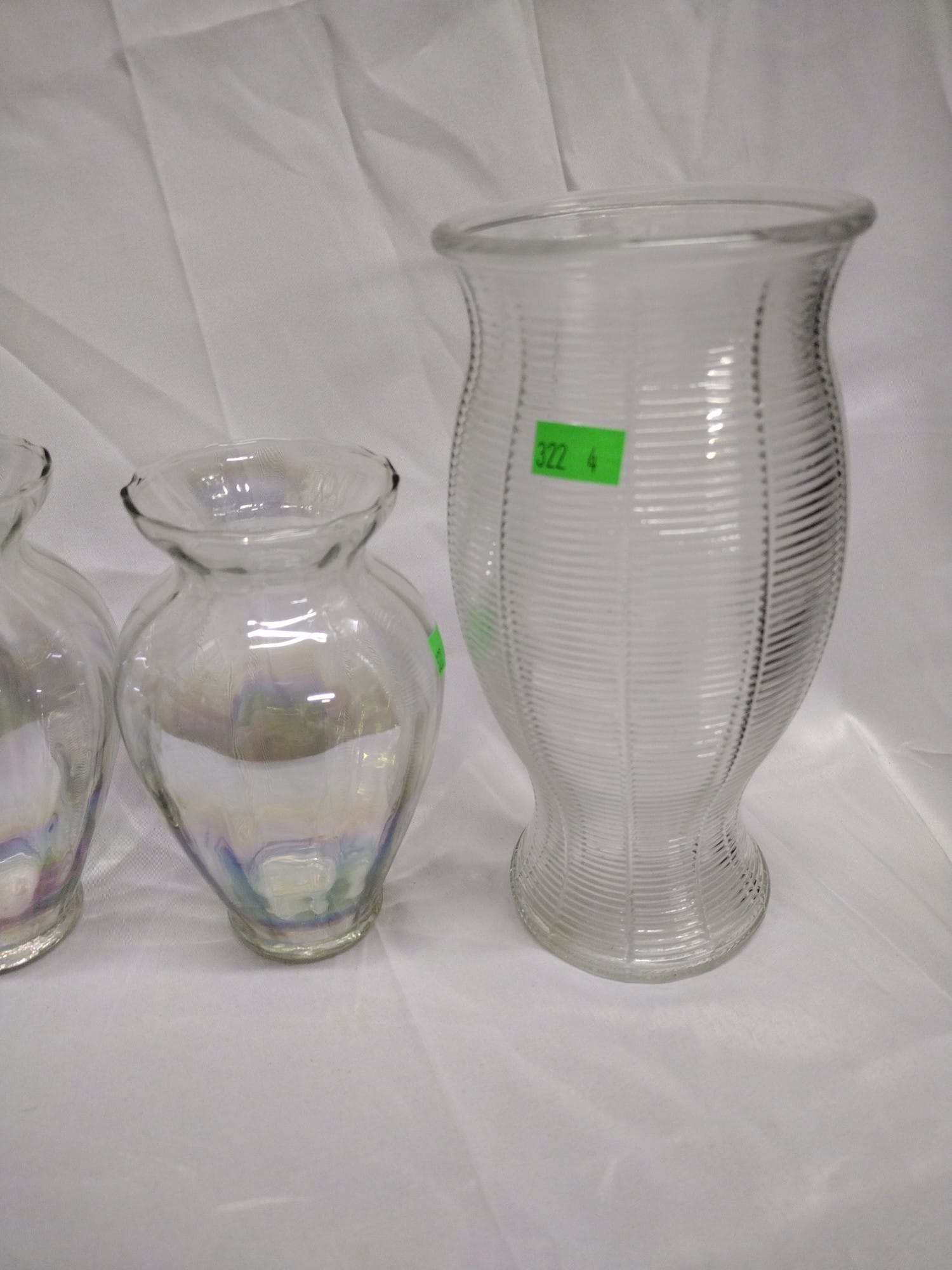130 Small glass pitcher 4", diamond pattern dish 7"