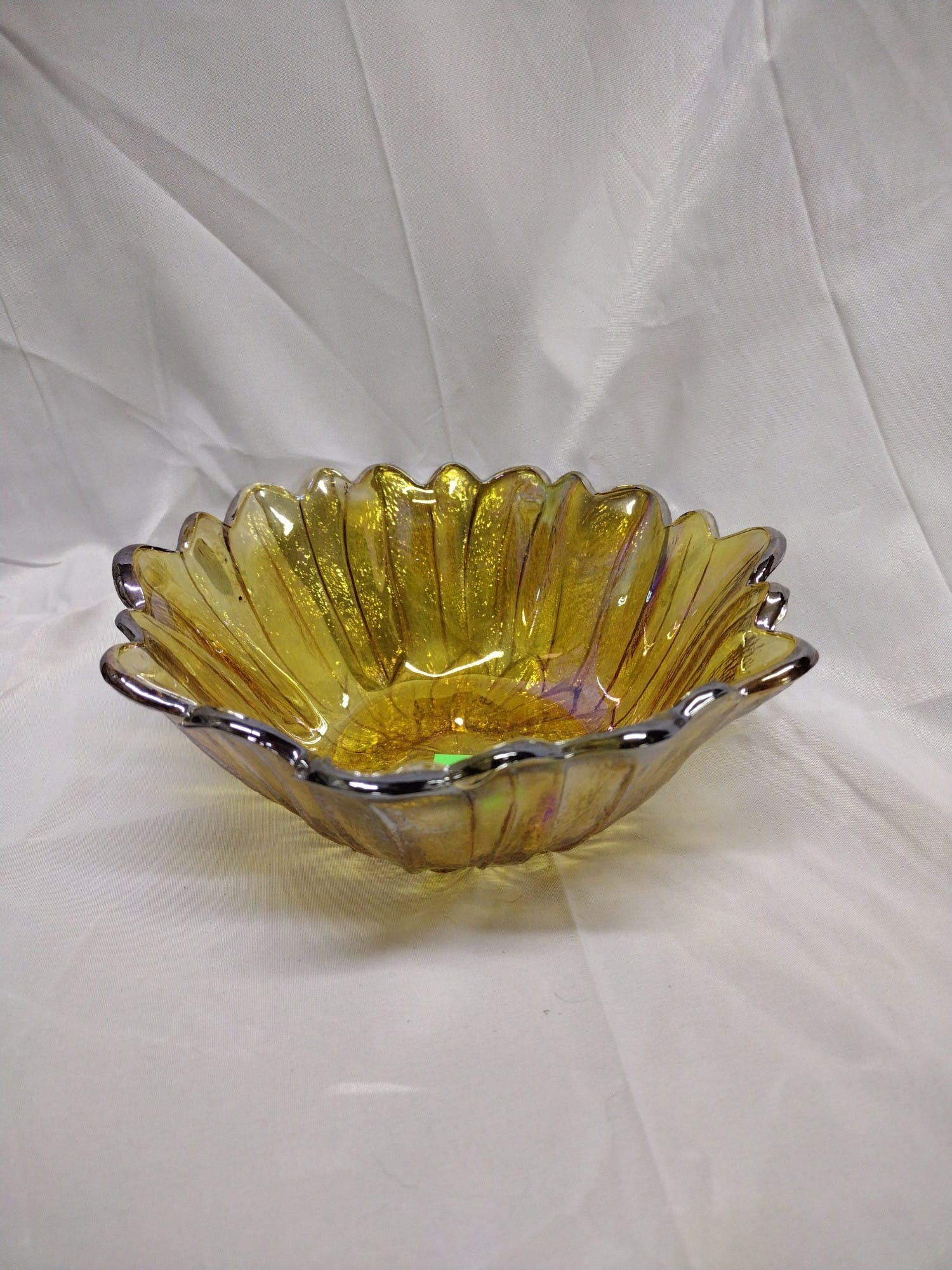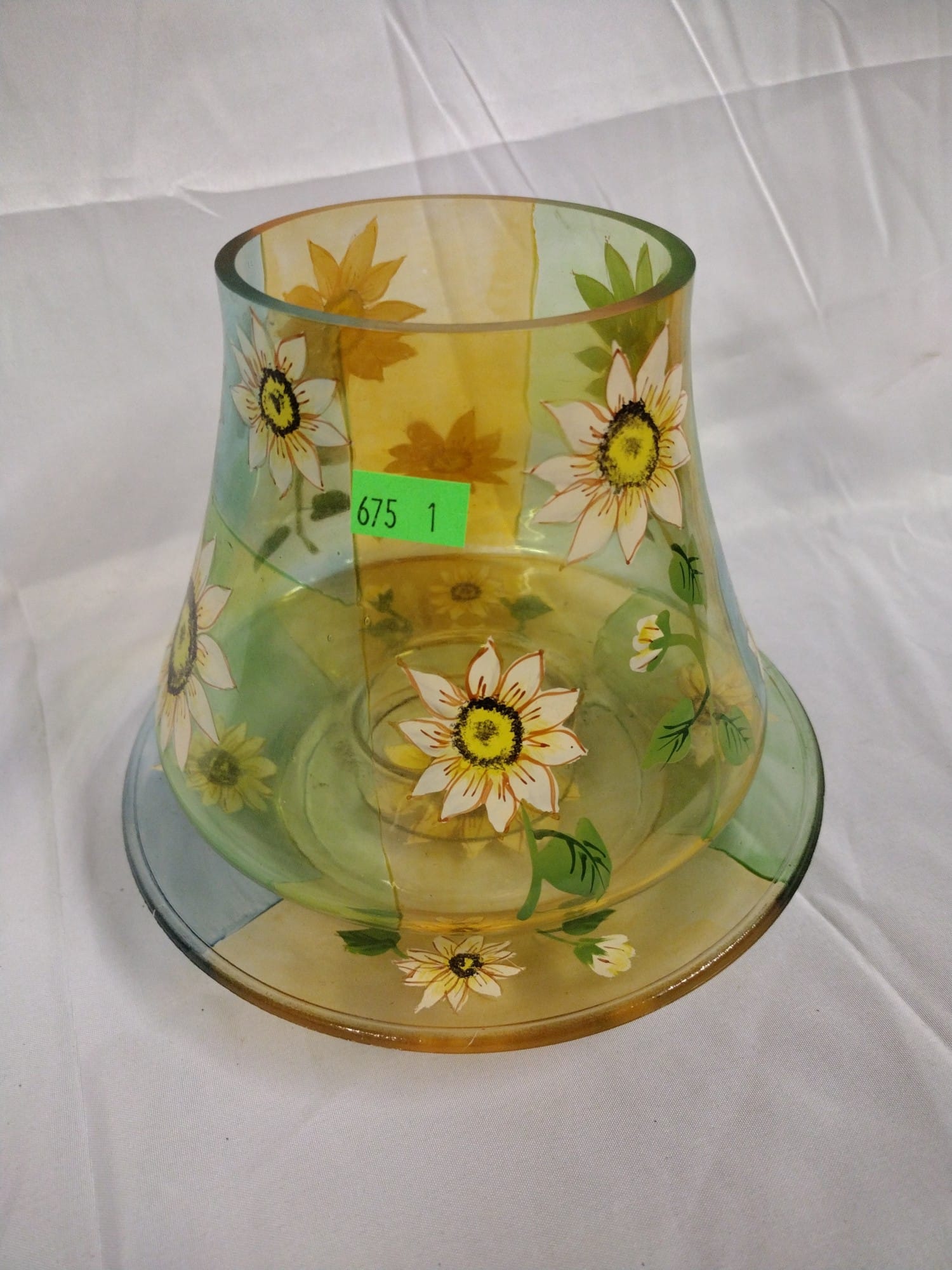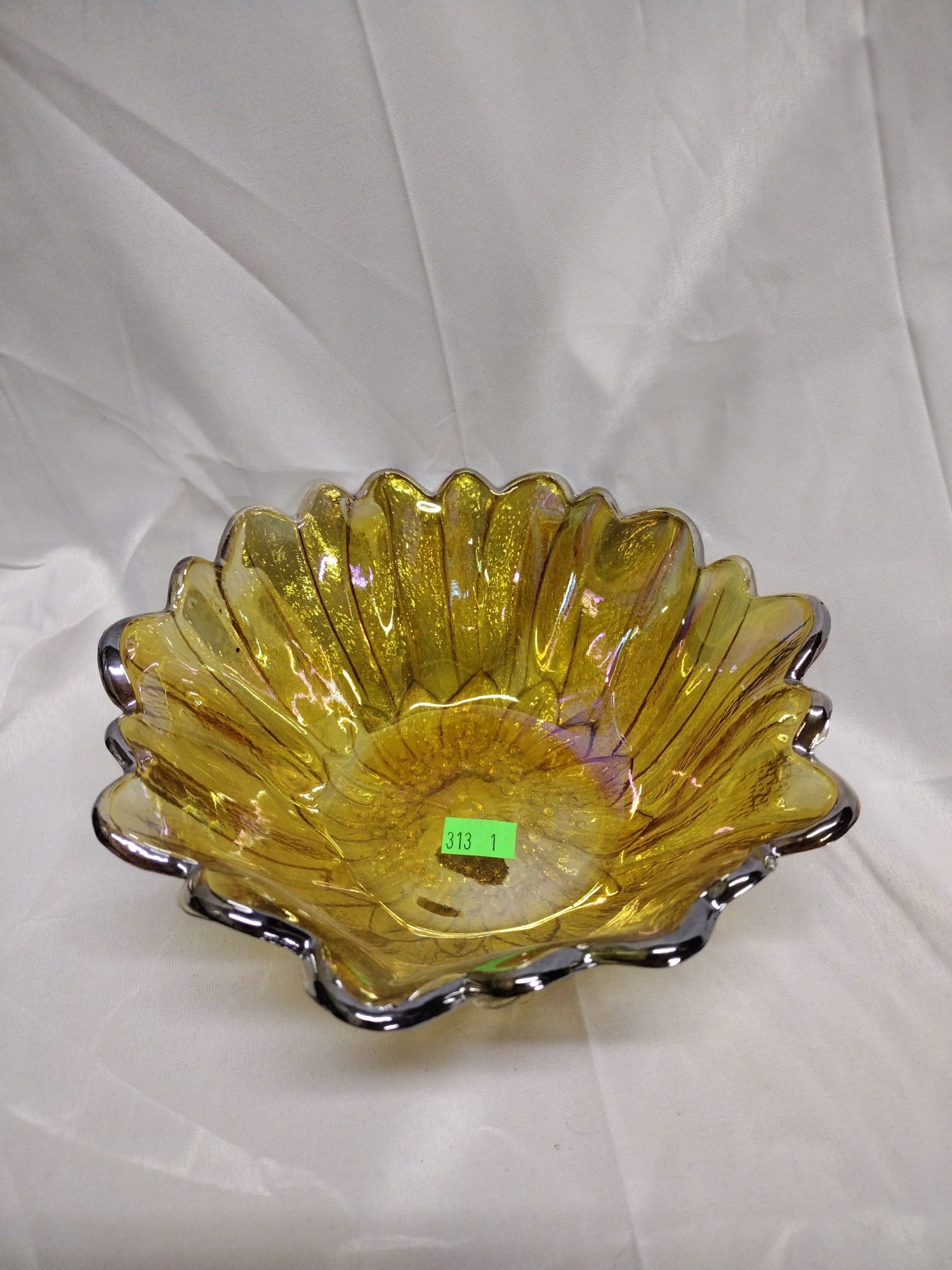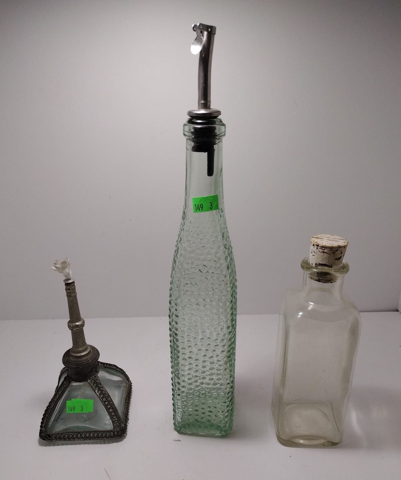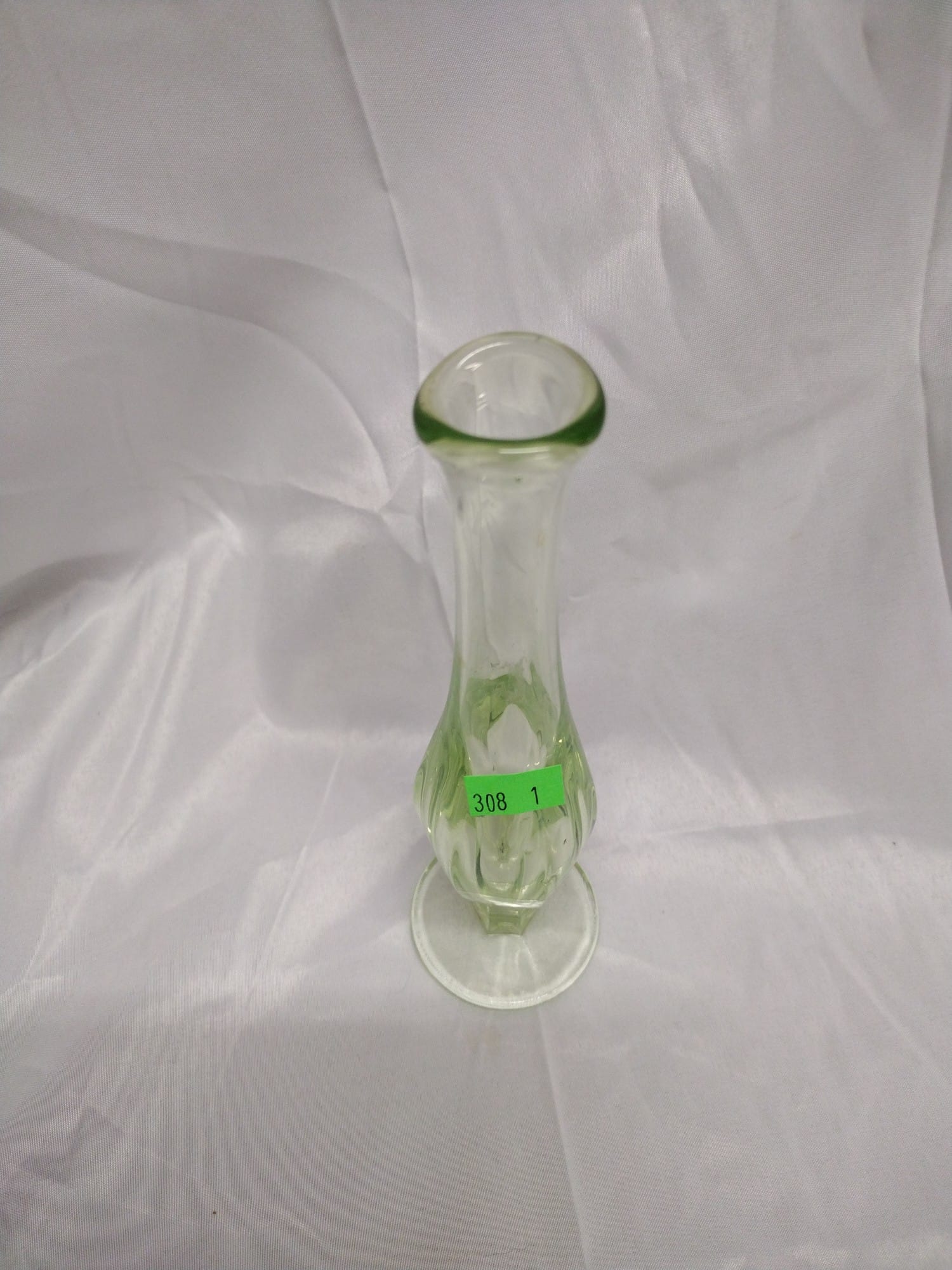 130 Small glass pitcher 4", diamond pattern dish 7"