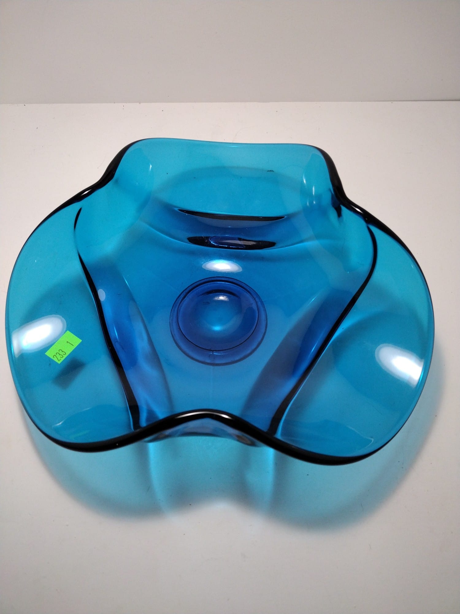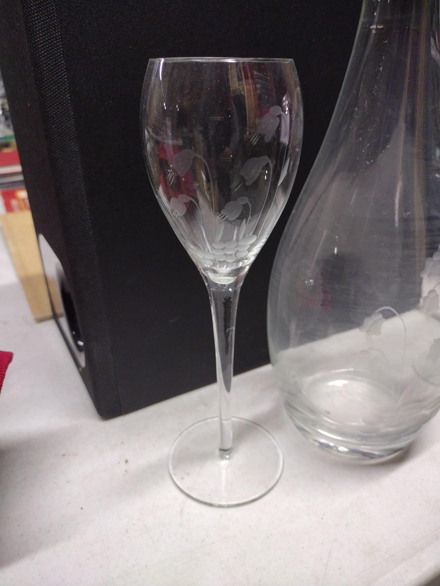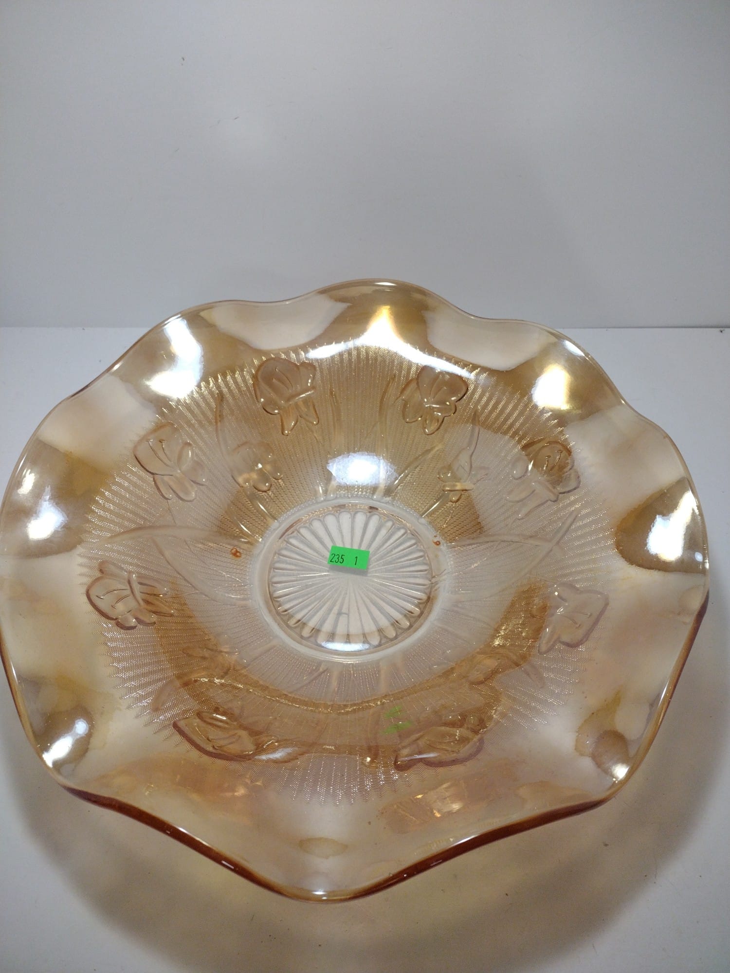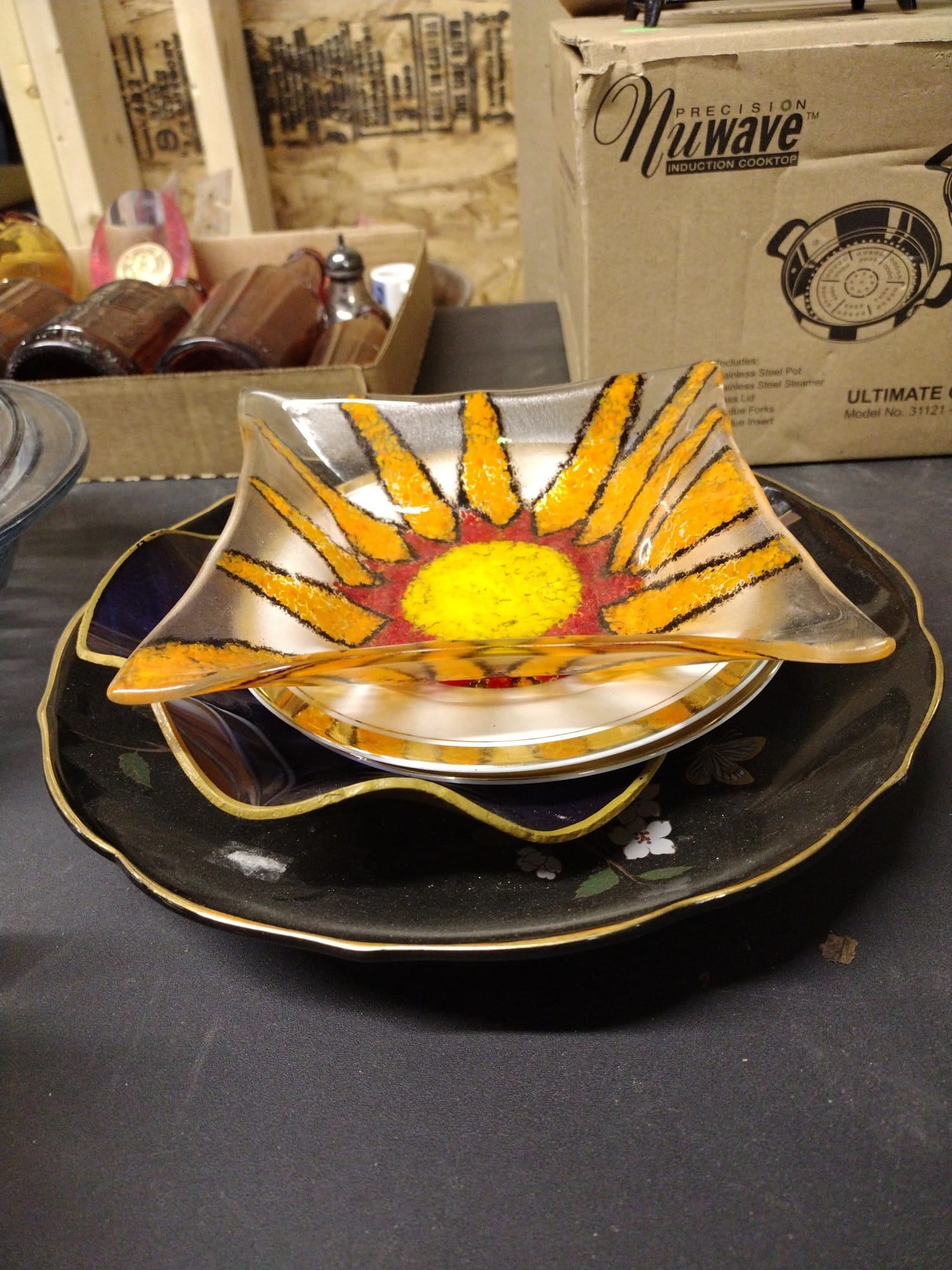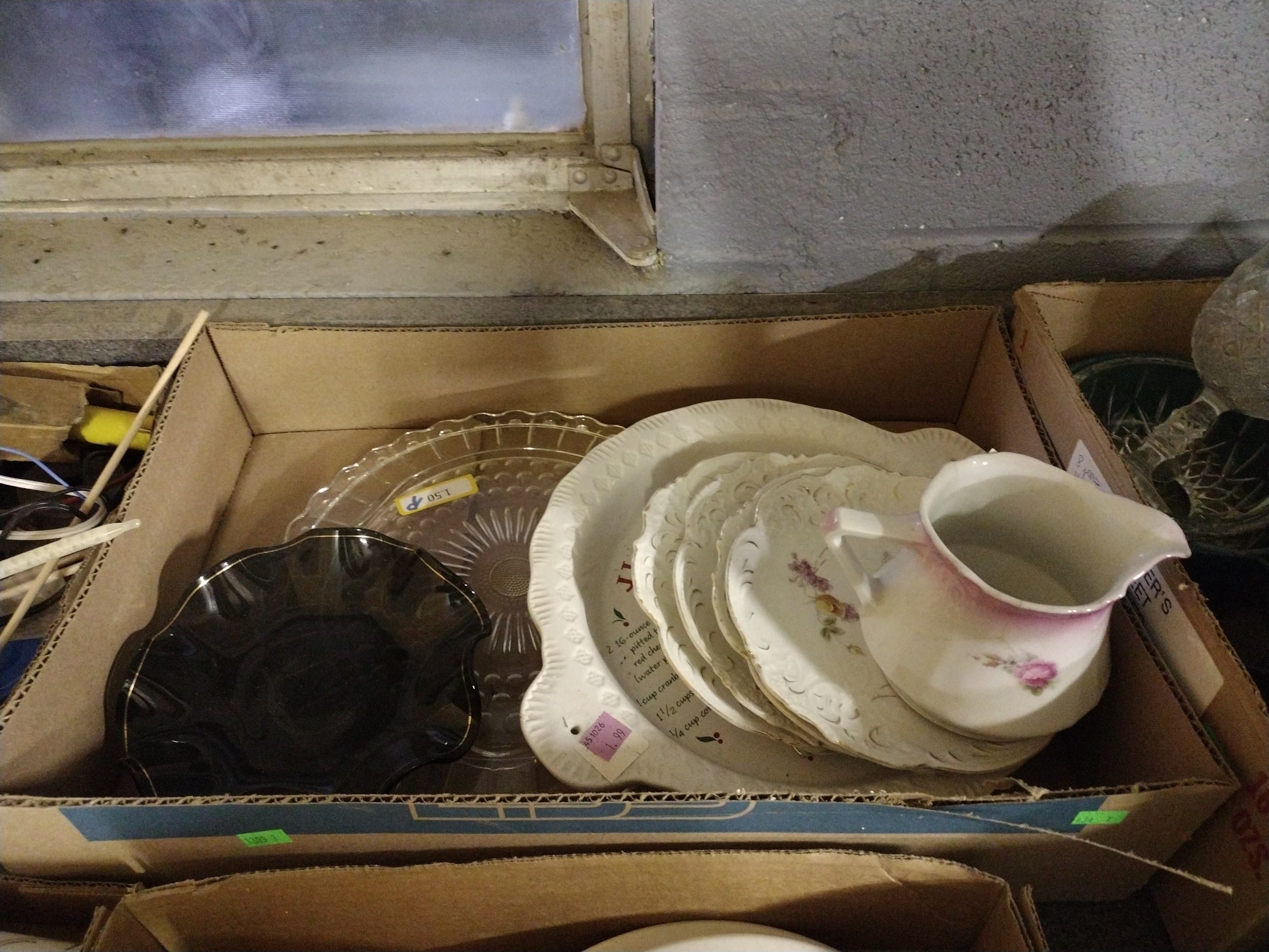 130 Small glass pitcher 4", diamond pattern dish 7"