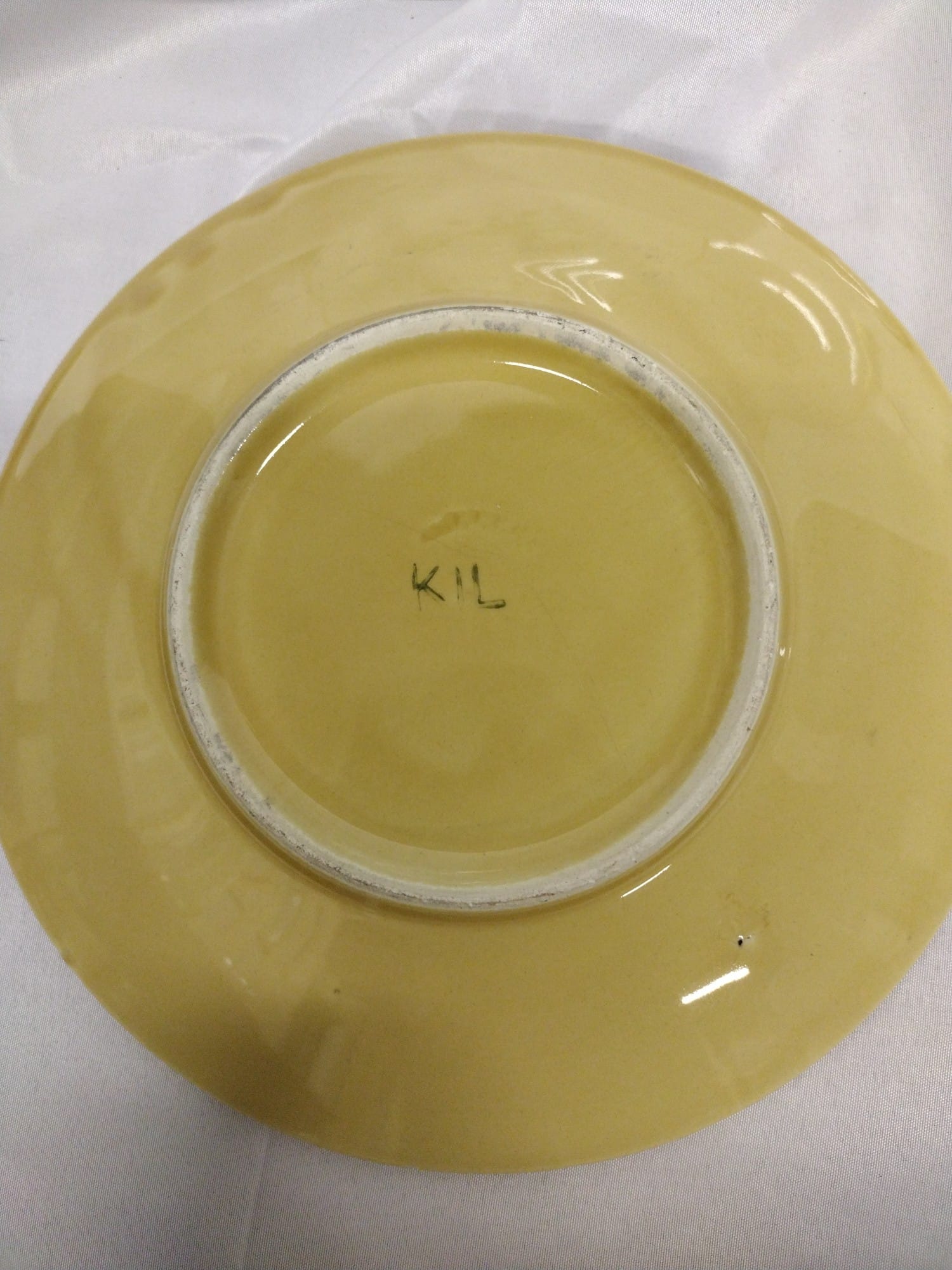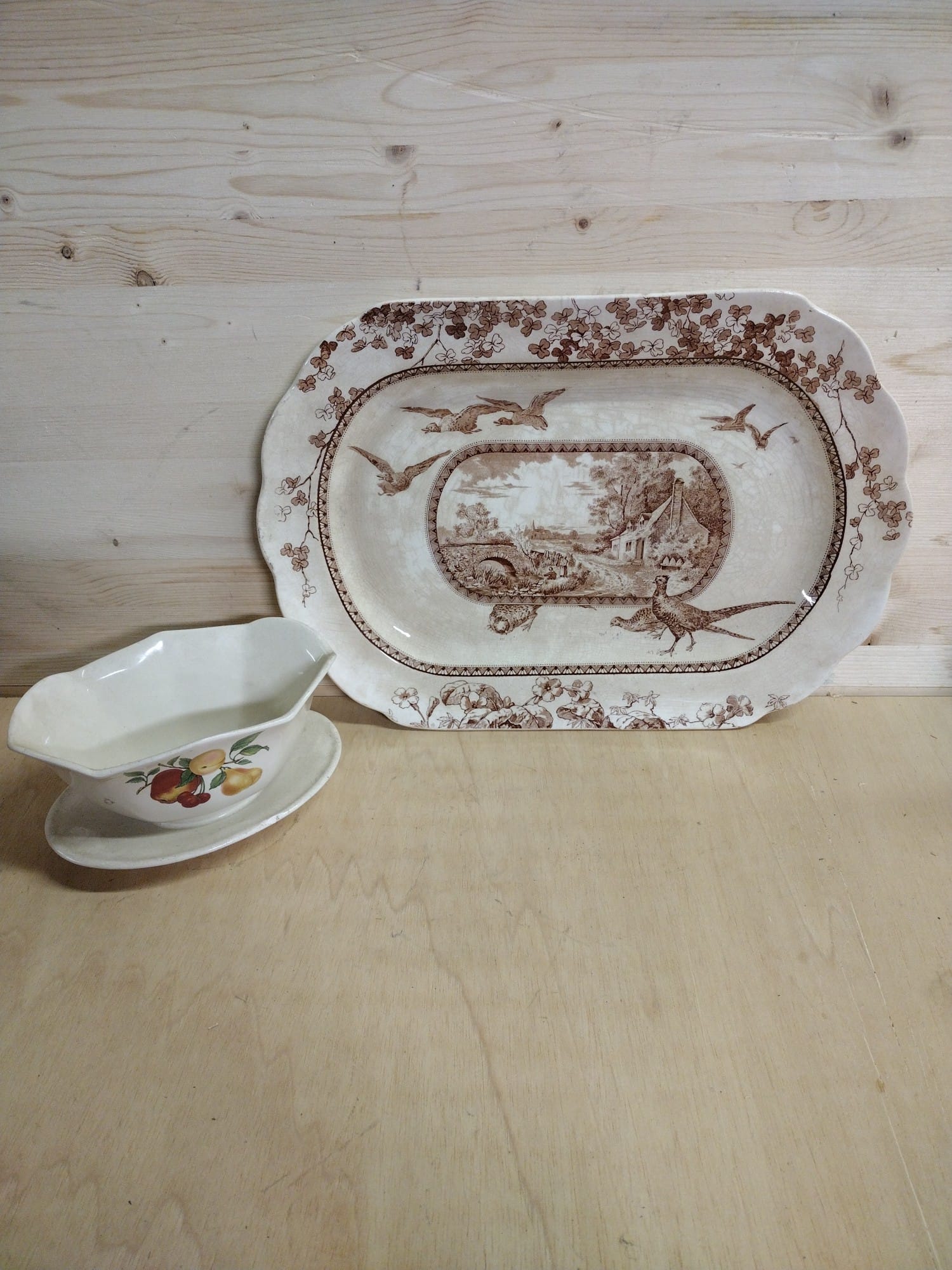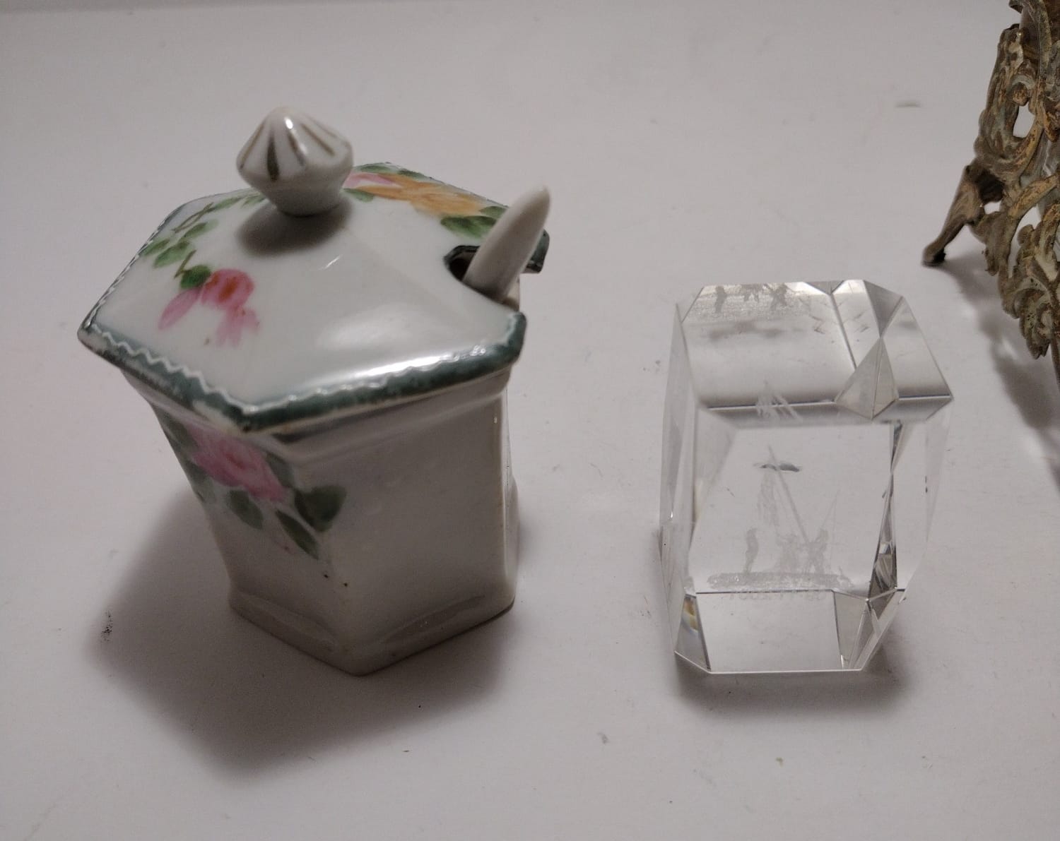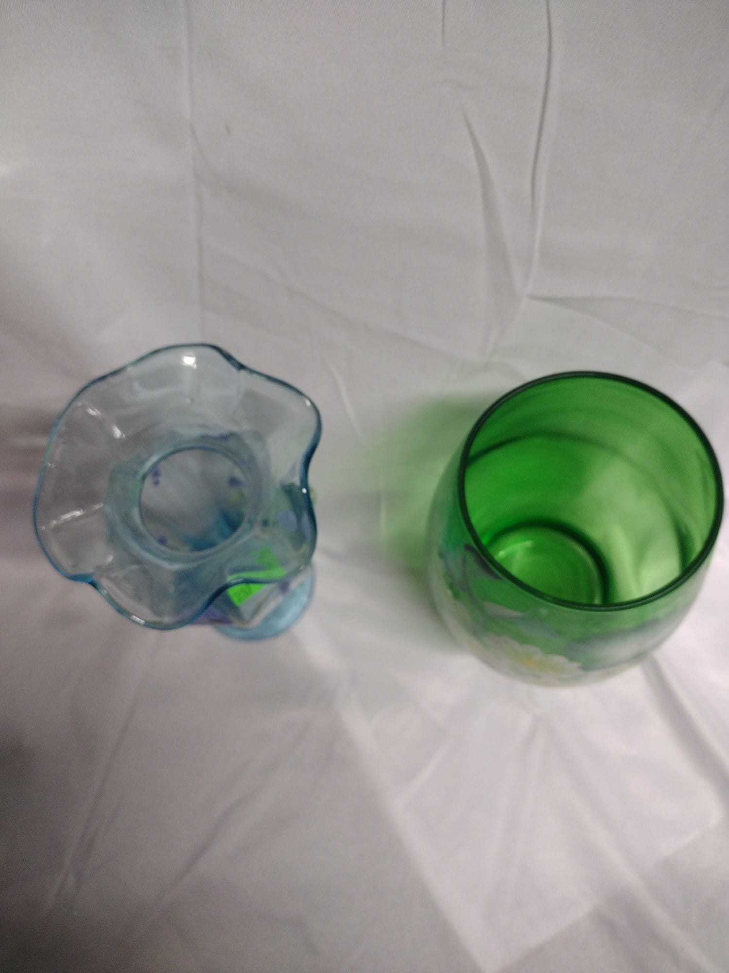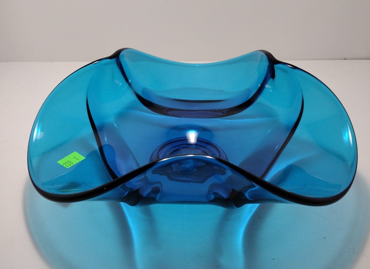 130 Small glass pitcher 4", diamond pattern dish 7"