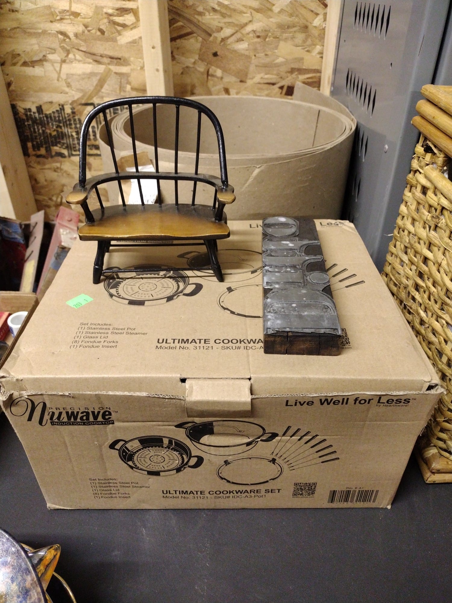 203 Nuwave oven, ditto stamp, doll bench 6"