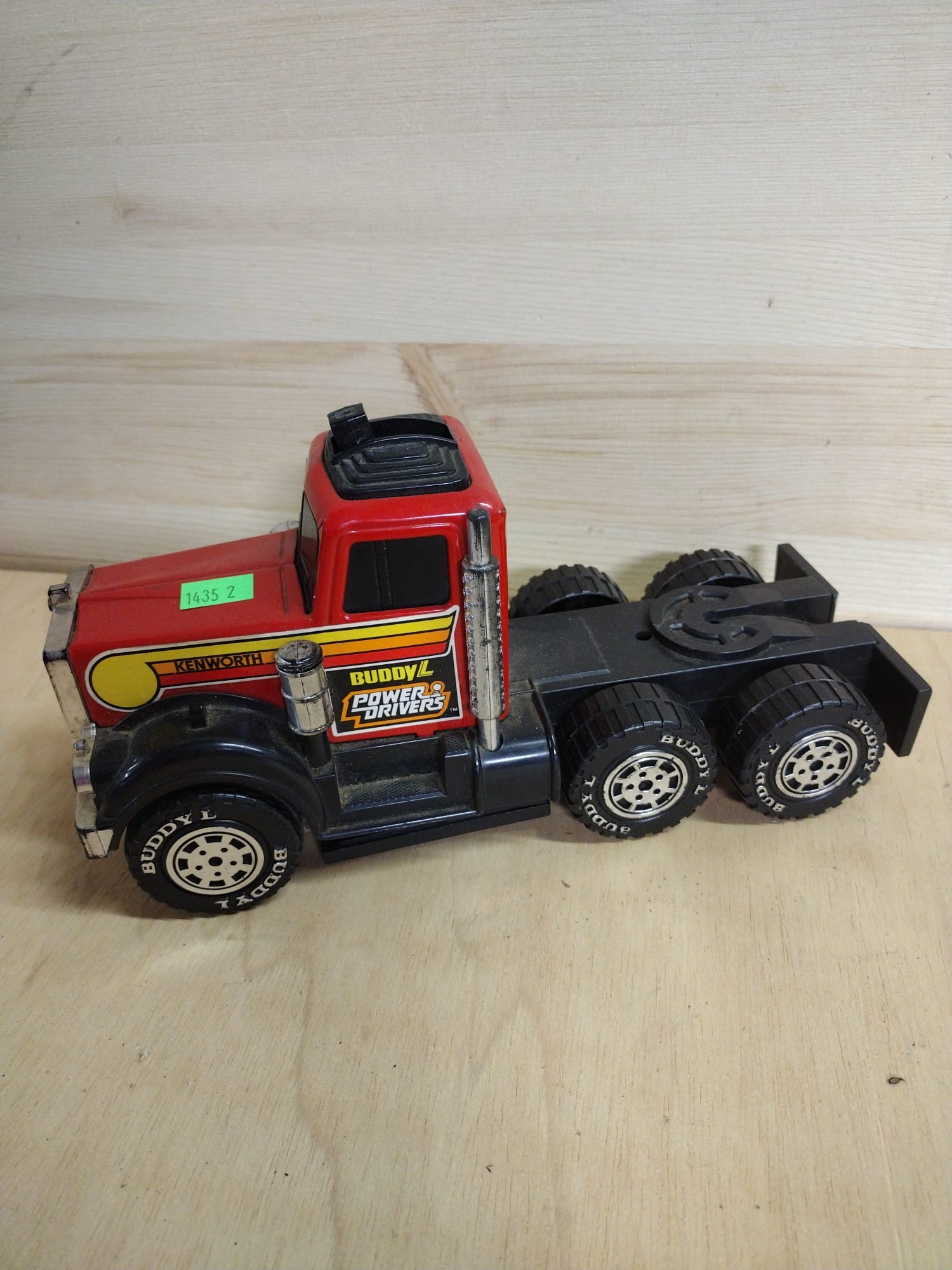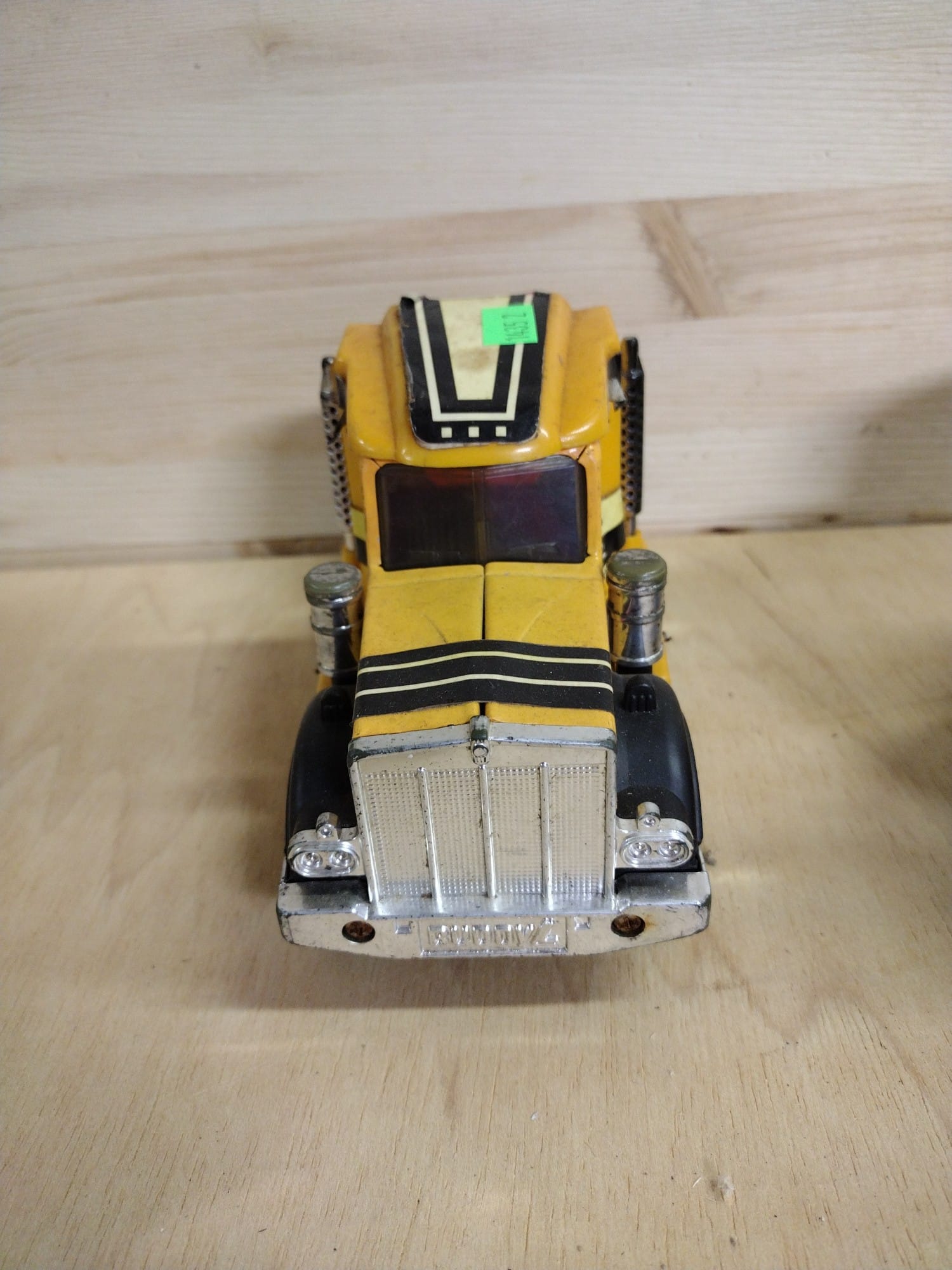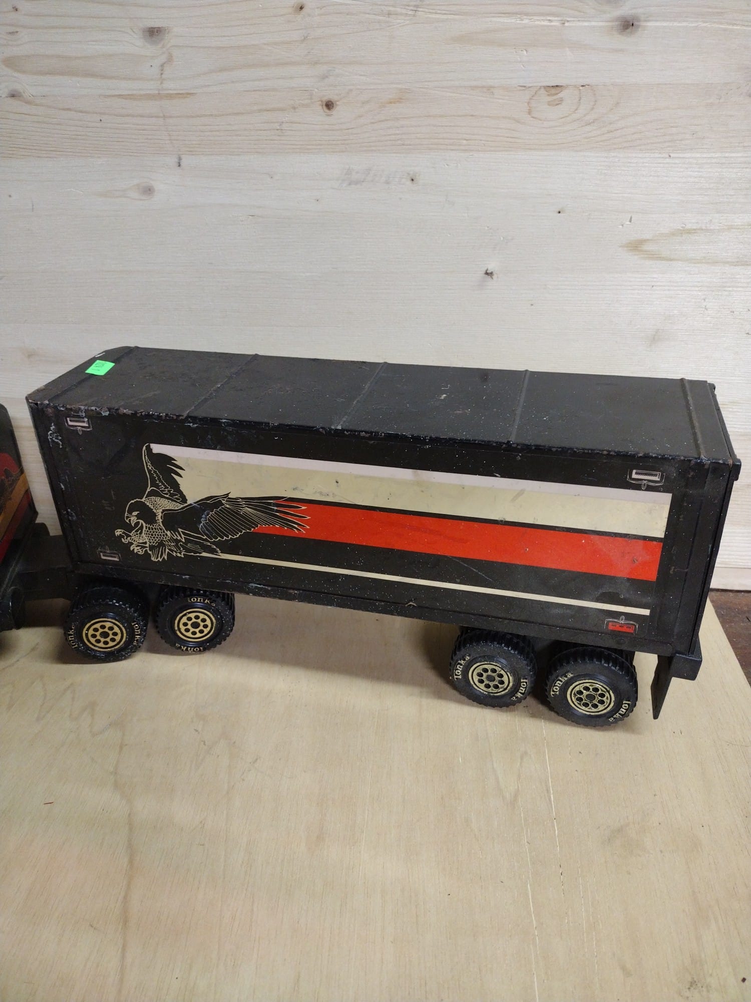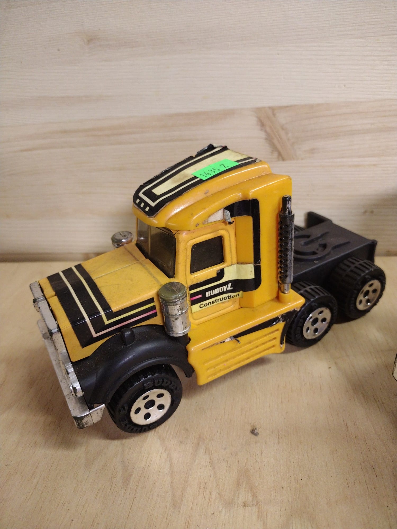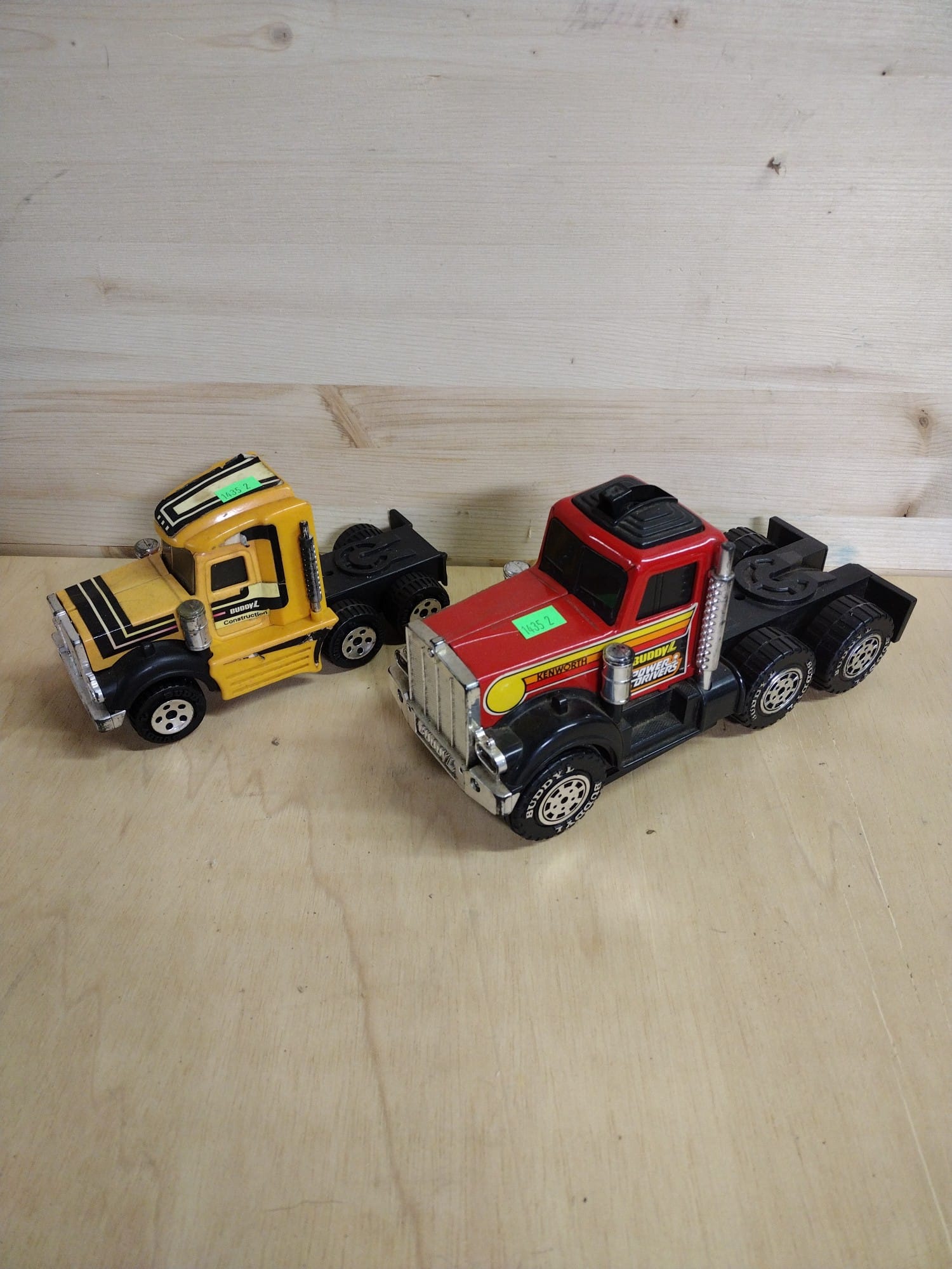 1435 Buddy L toy semis, yellow is plastic red is metal