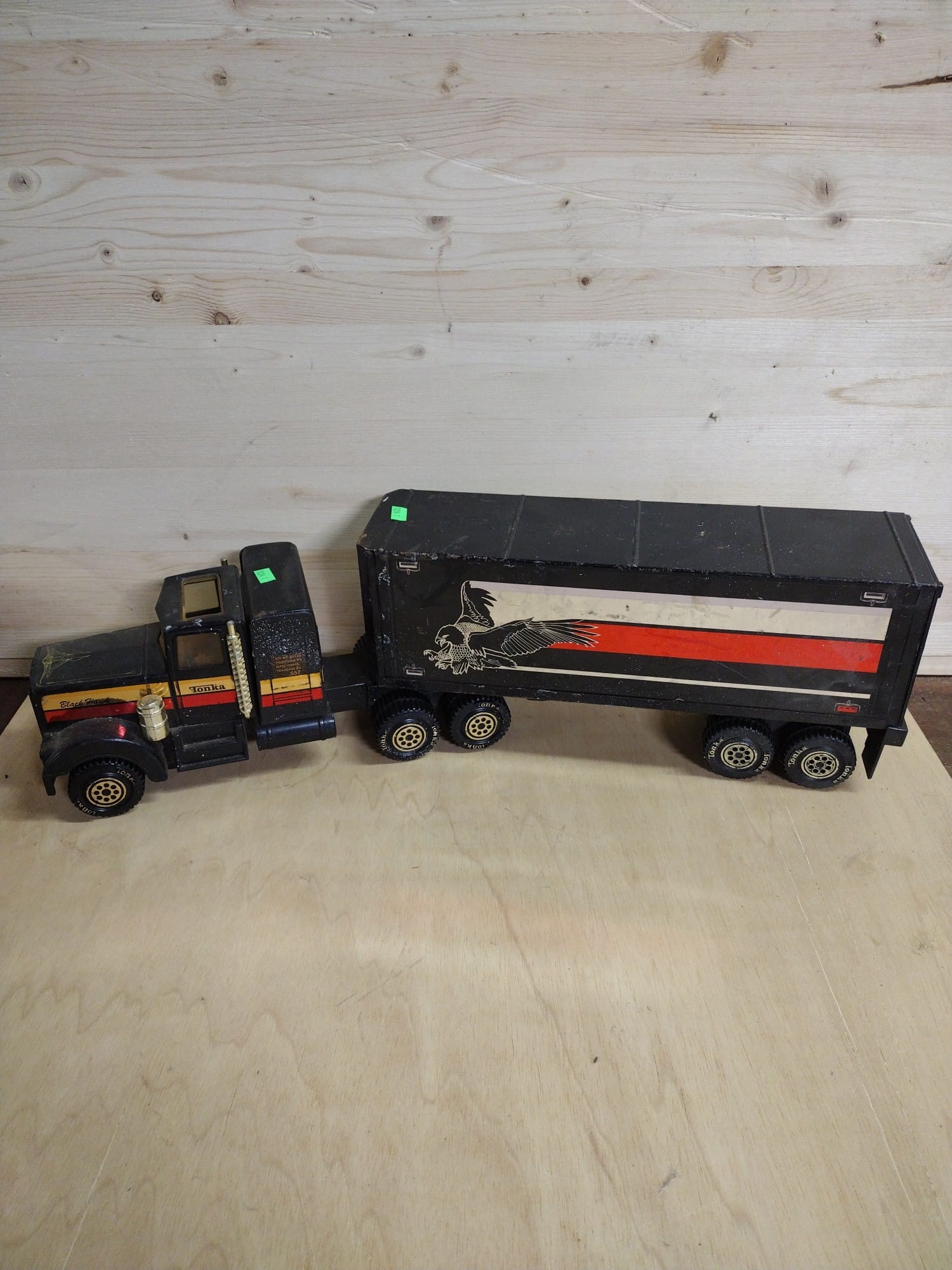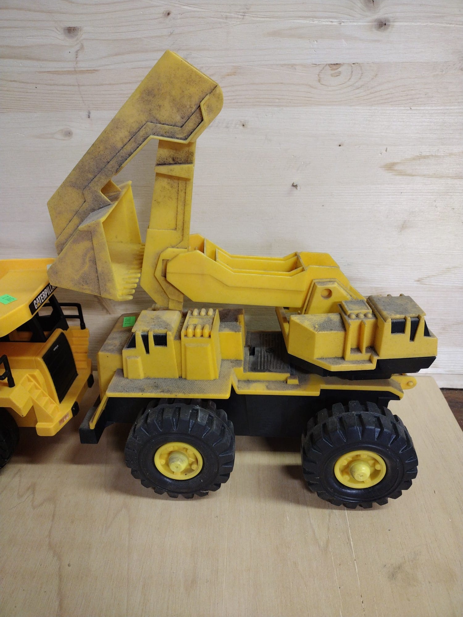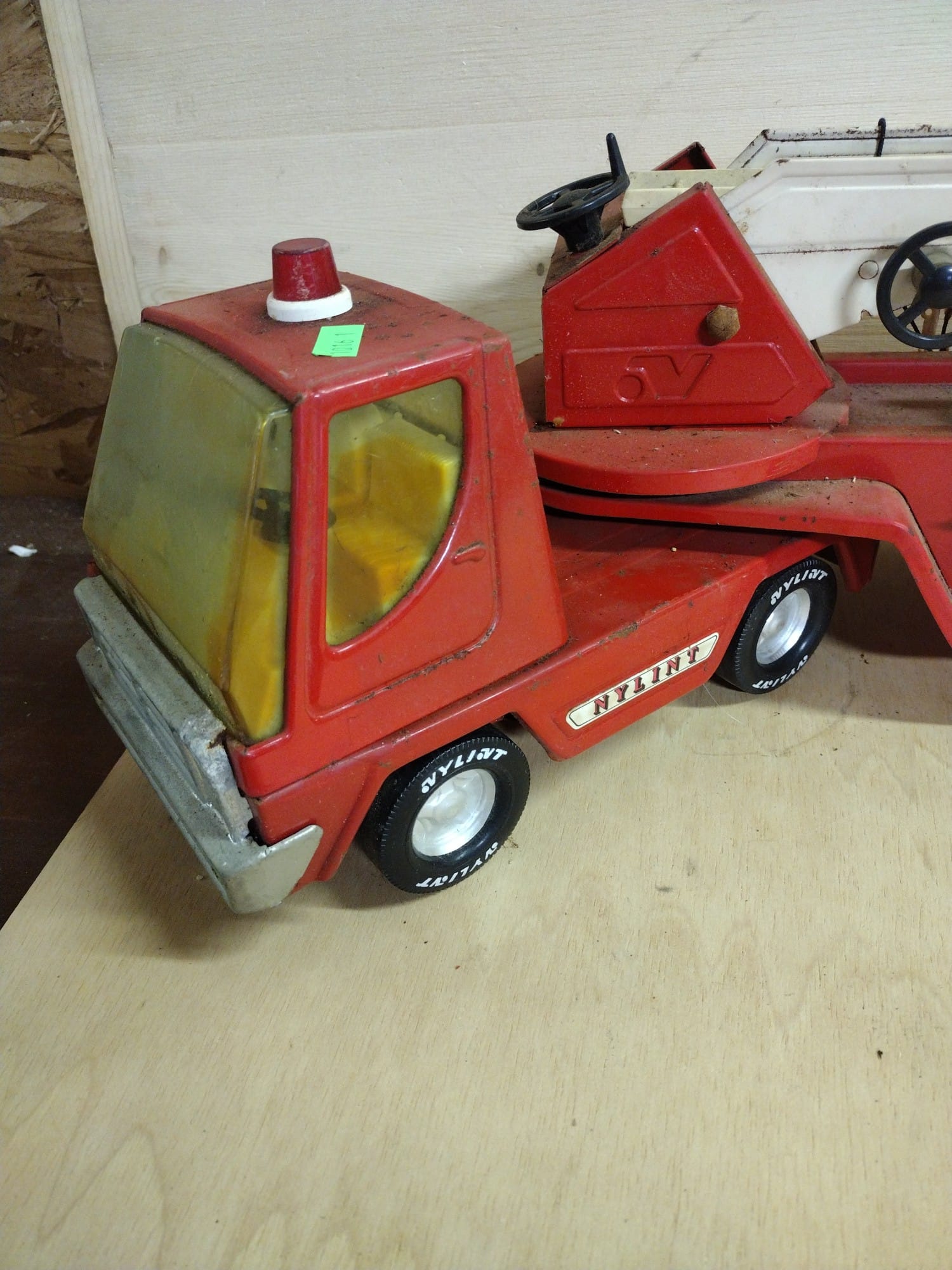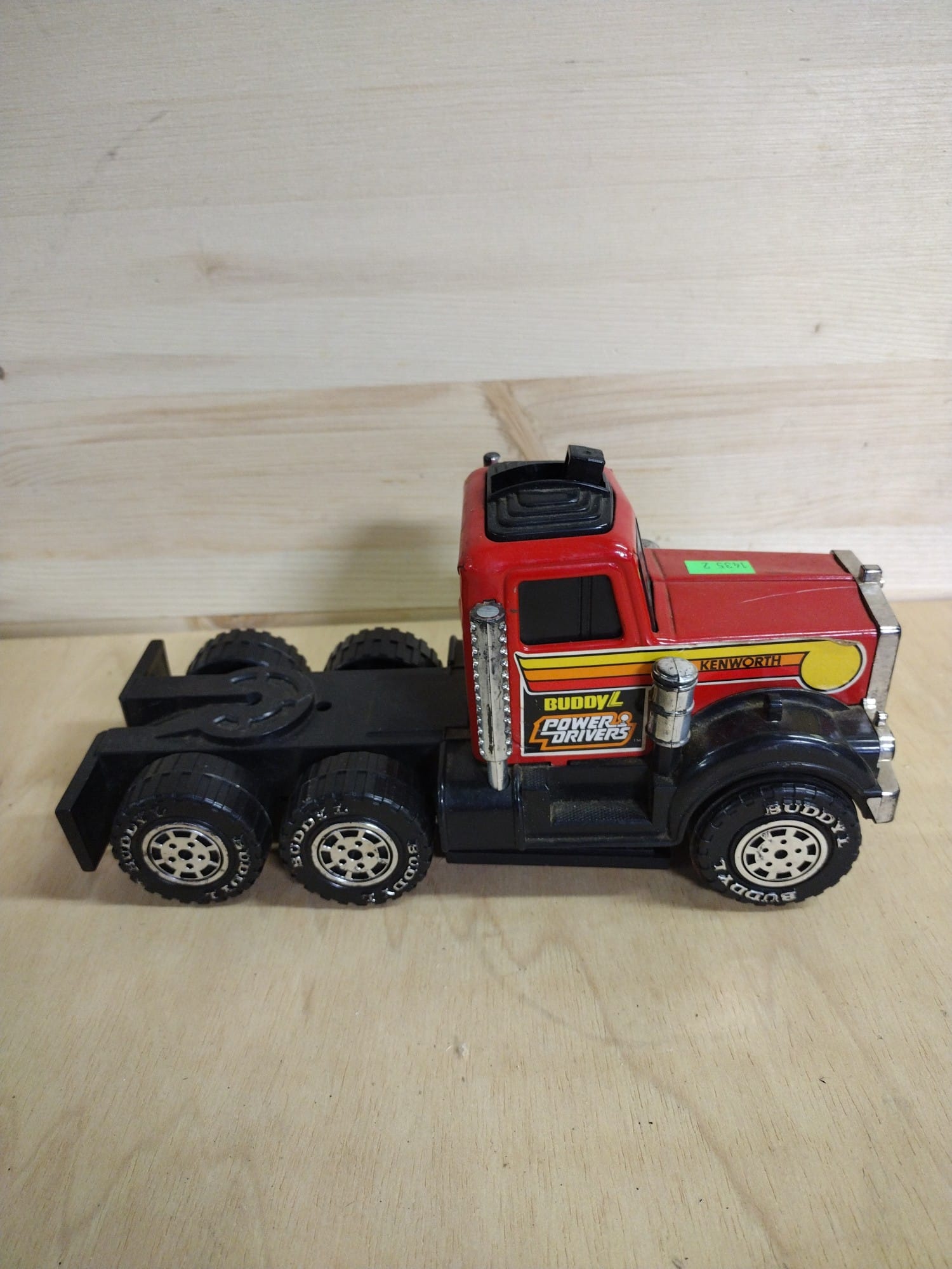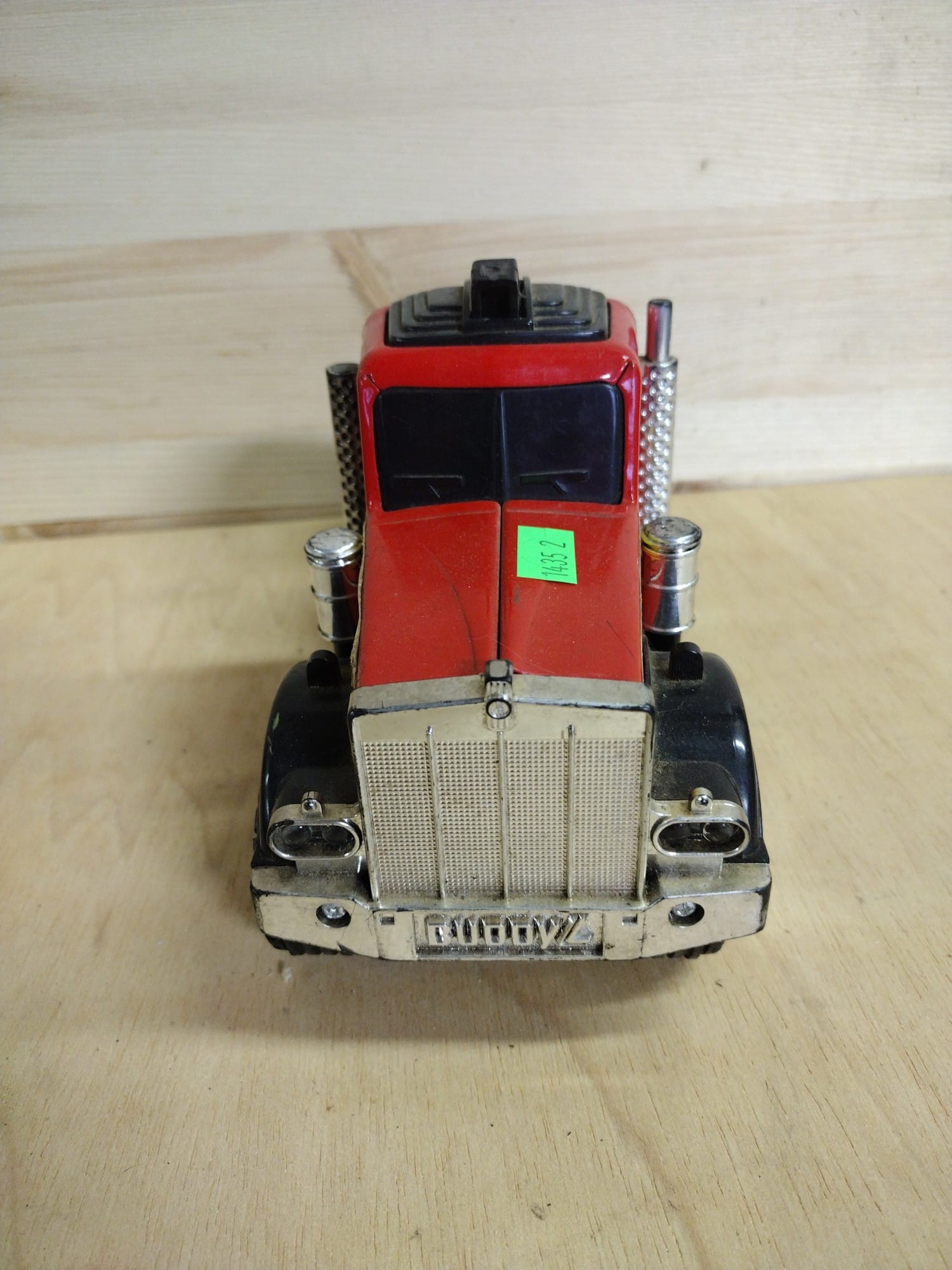 1435 Buddy L toy semis, yellow is plastic red is metal