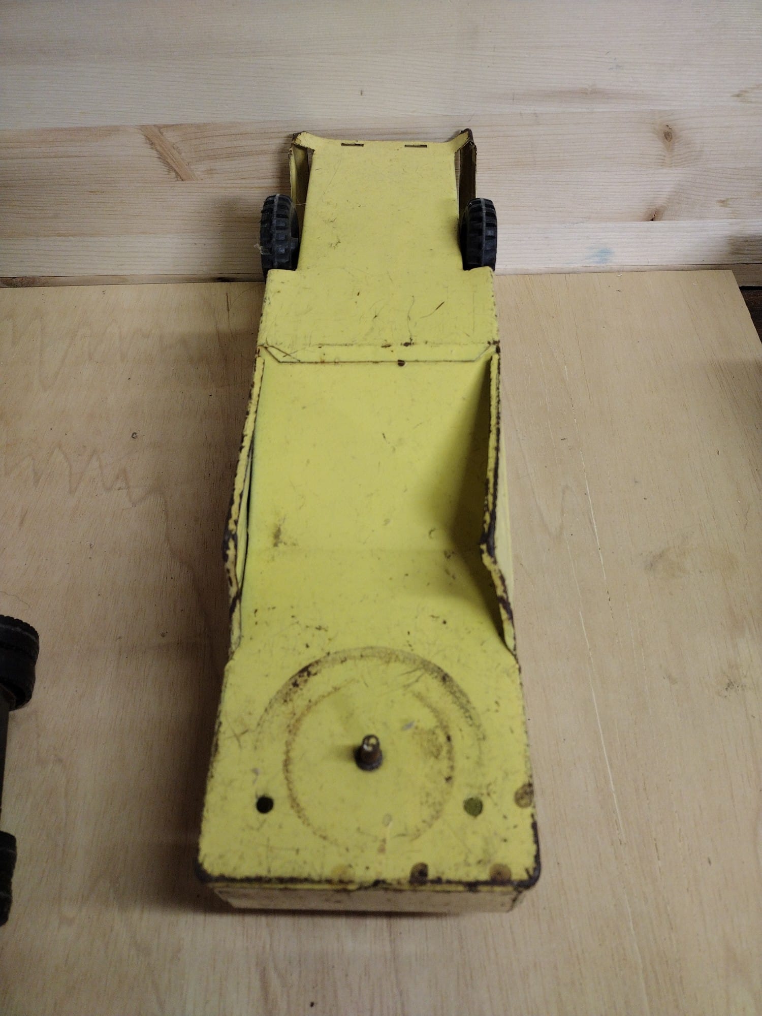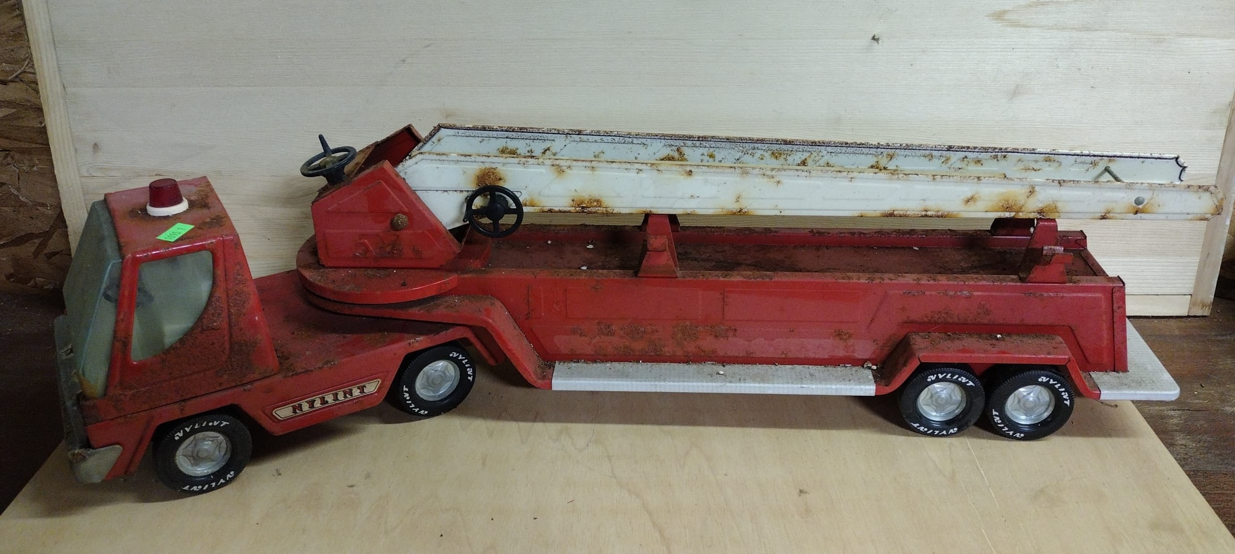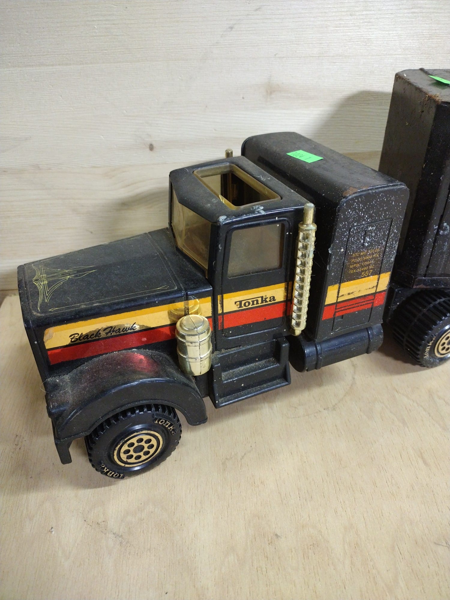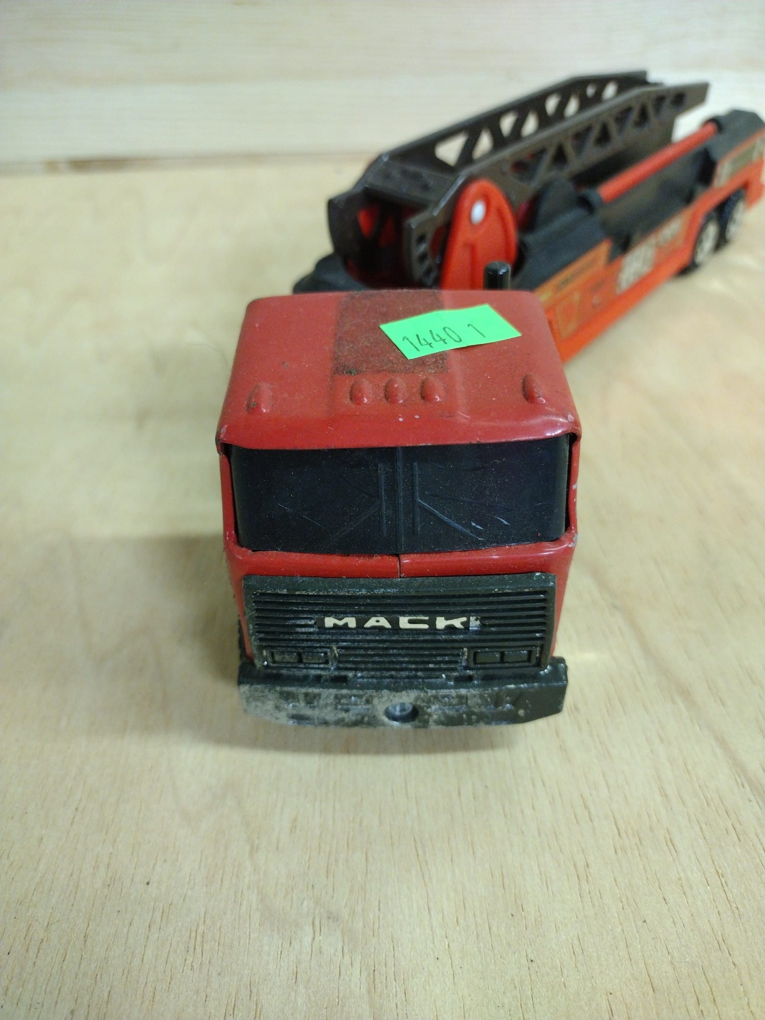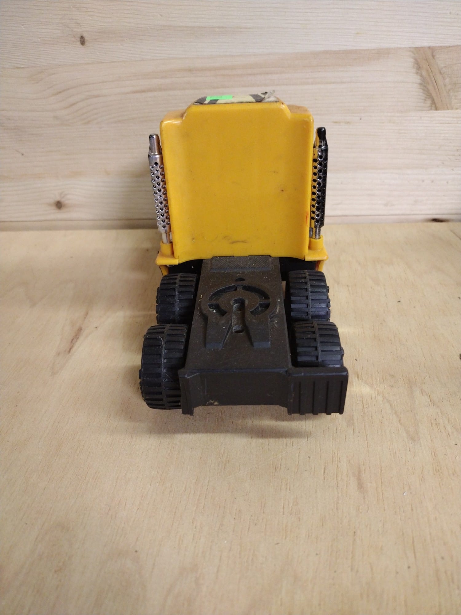 1435 Buddy L toy semis, yellow is plastic red is metal