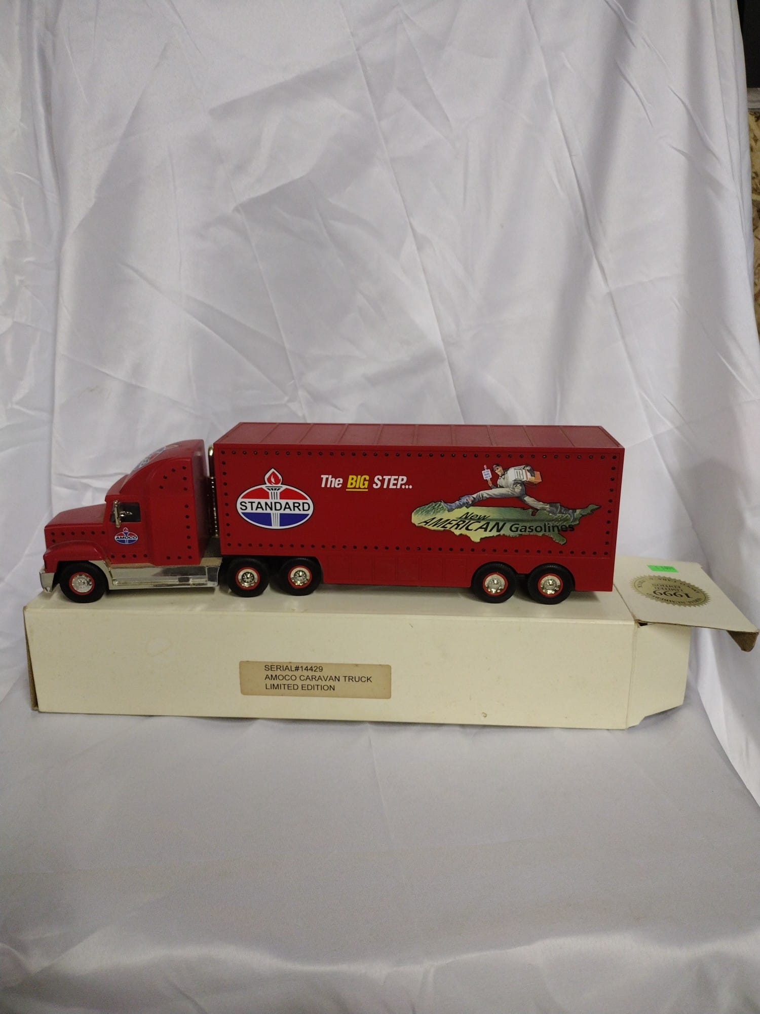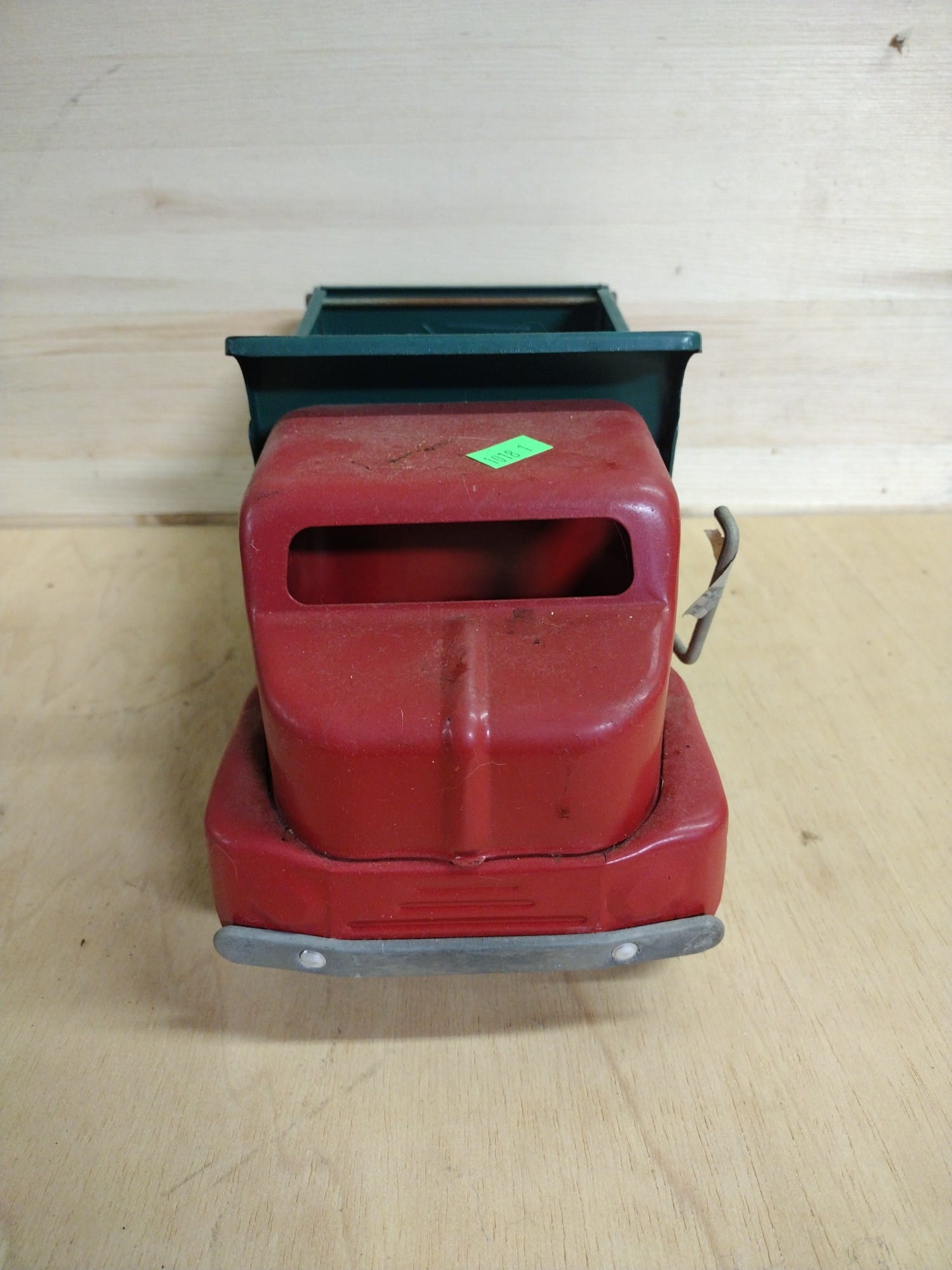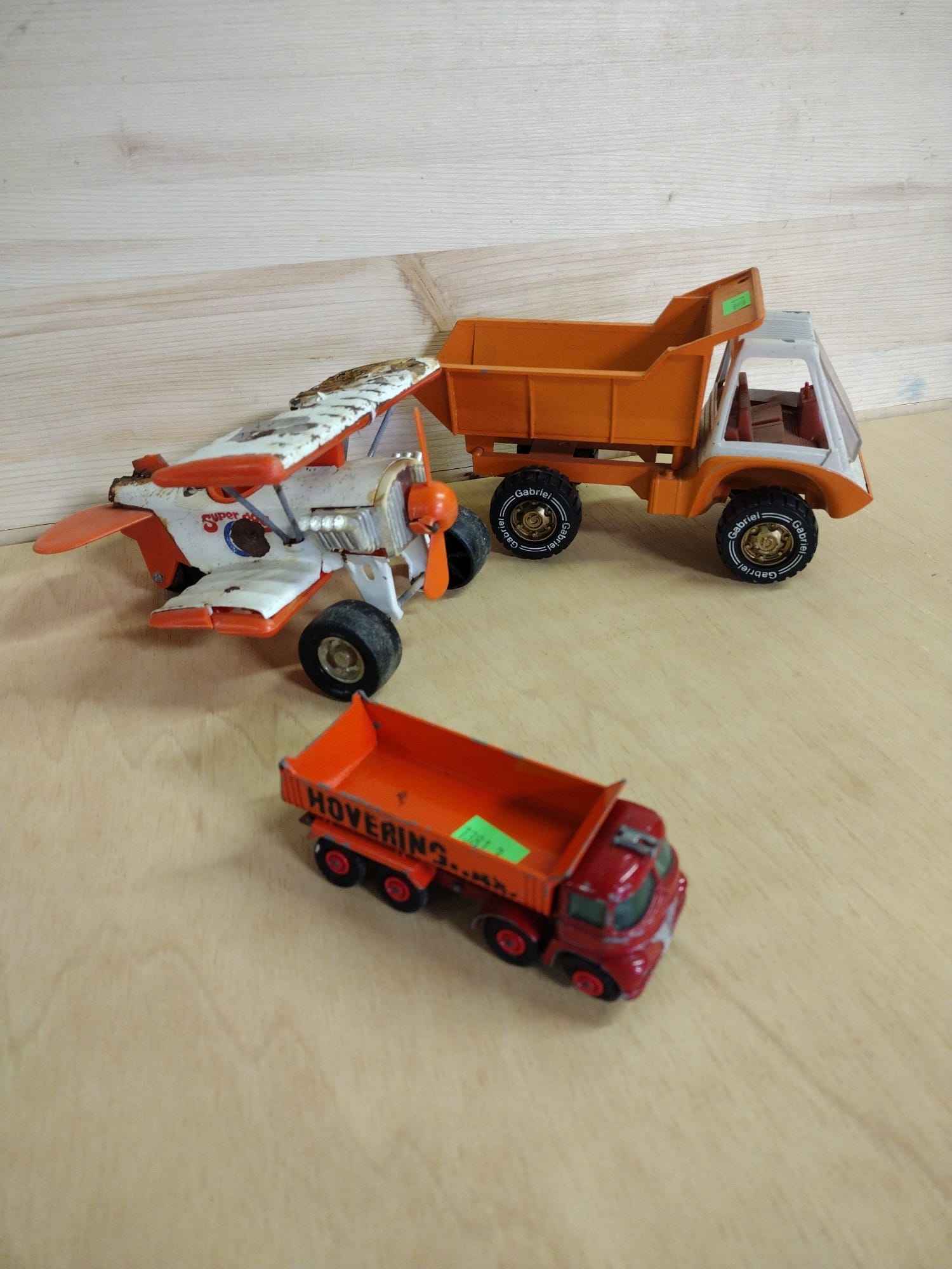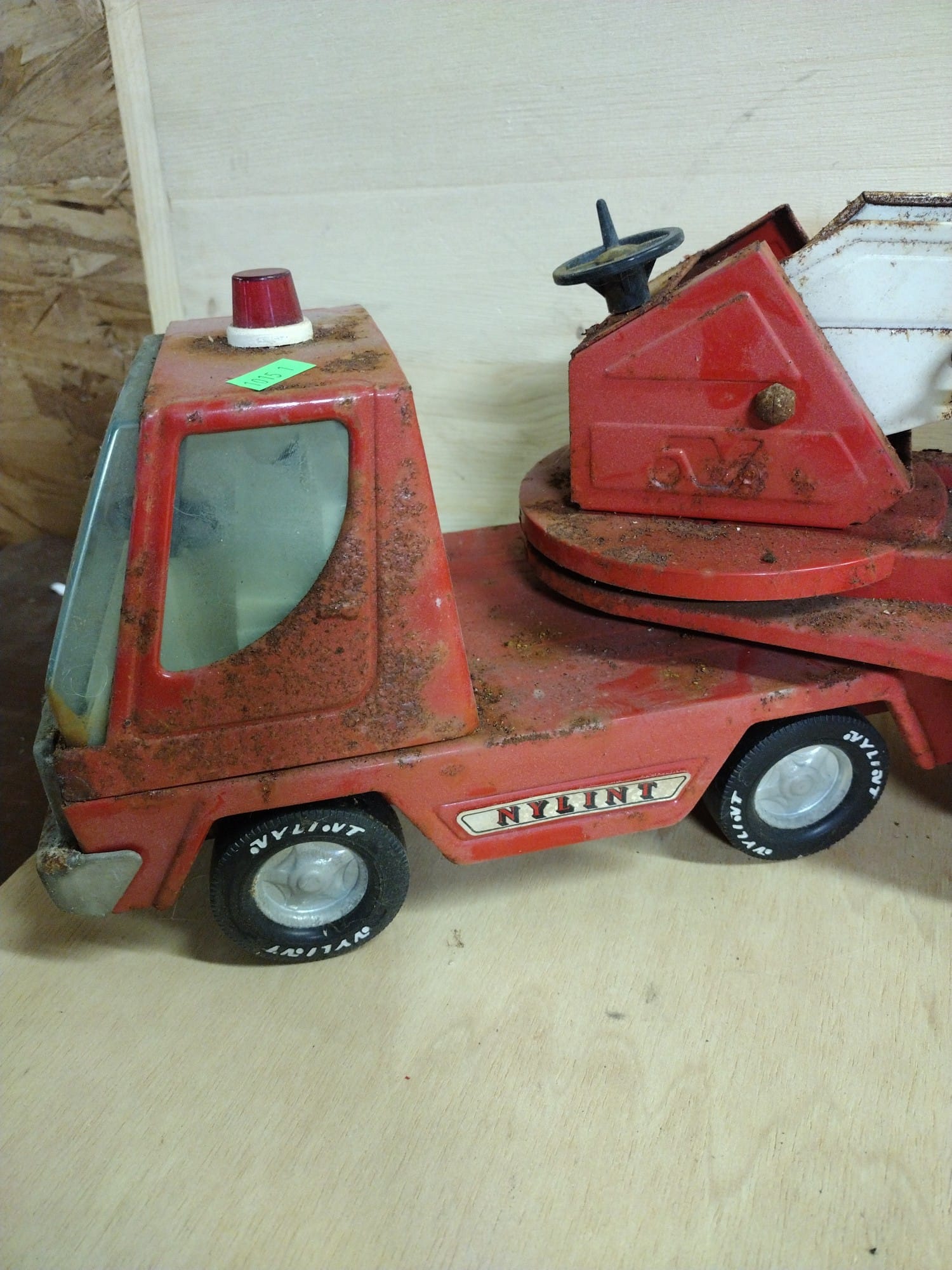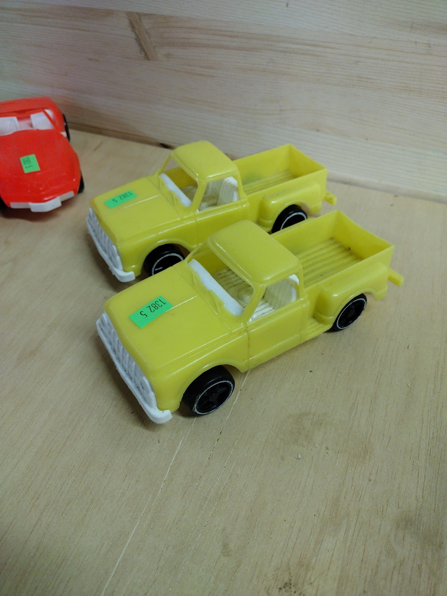 1435 Buddy L toy semis, yellow is plastic red is metal